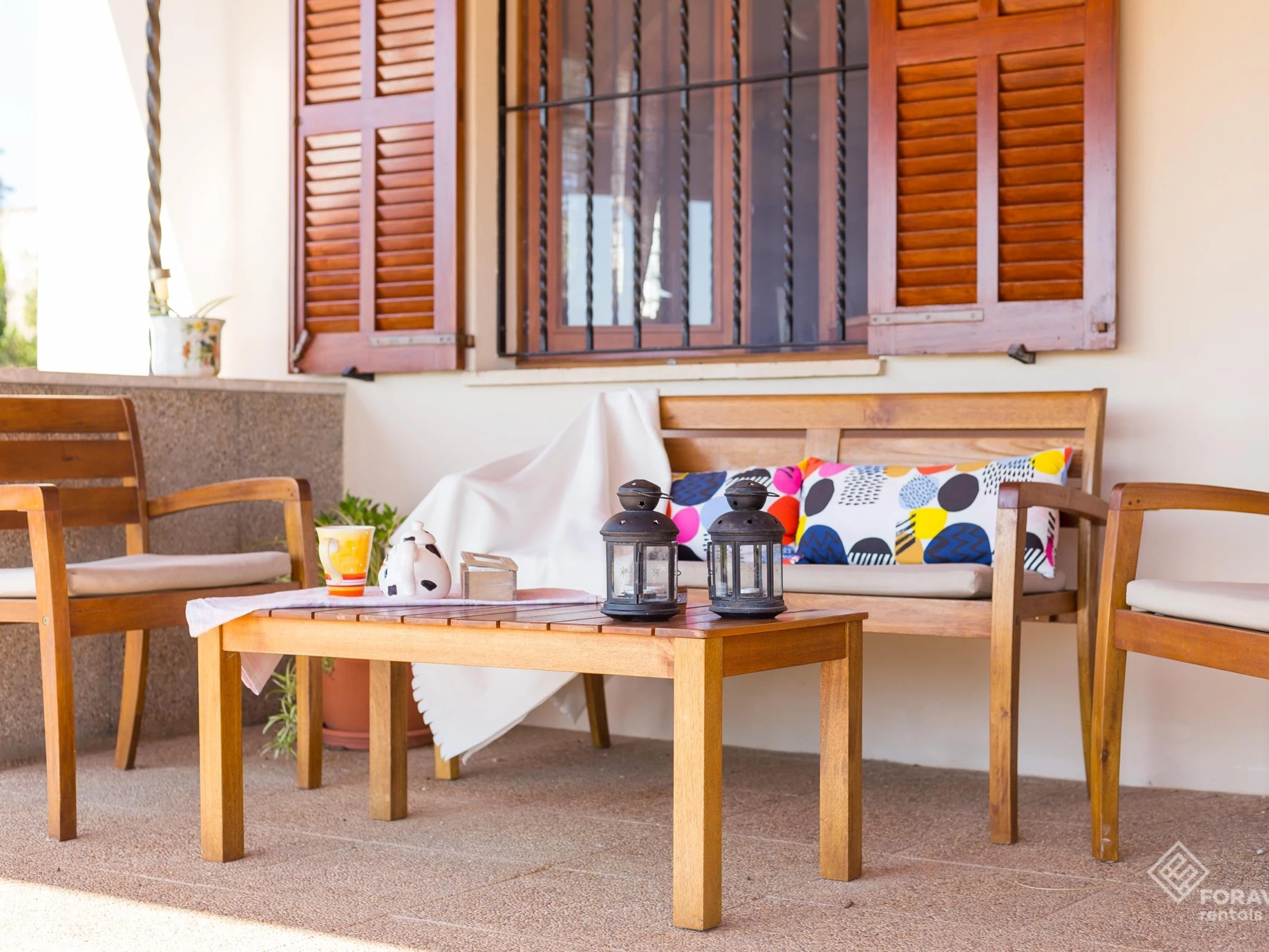 Die Terrasse verfügt über einen großen privaten Pool, einen Solariumbereich mit zwei Hängematten und eine fantastisch möblierte Veranda mit direktem Zugang zum Wohnzimmer. In diesem Bereich können Sie in Ruhe entspannen und das gute Klima der Insel genießen.