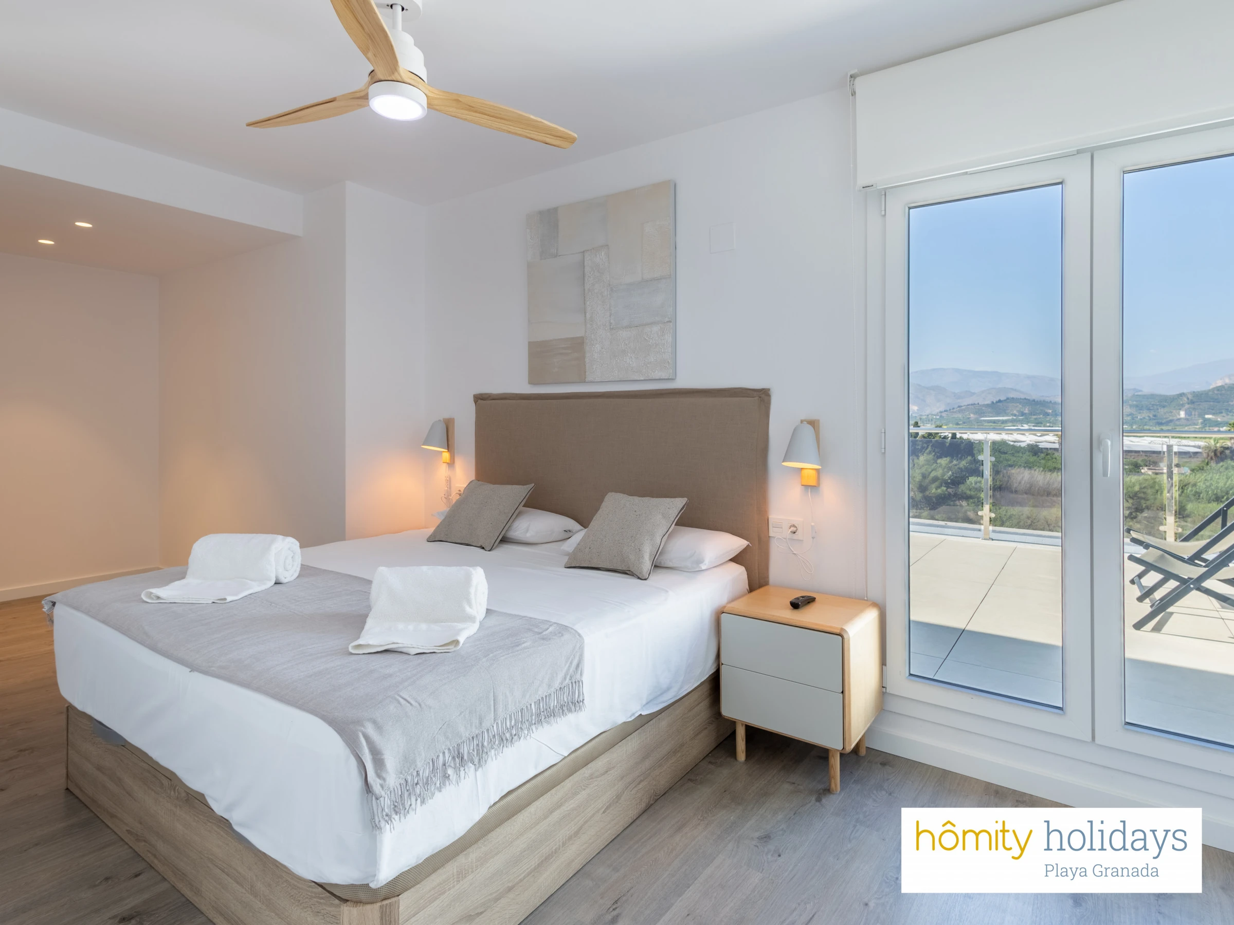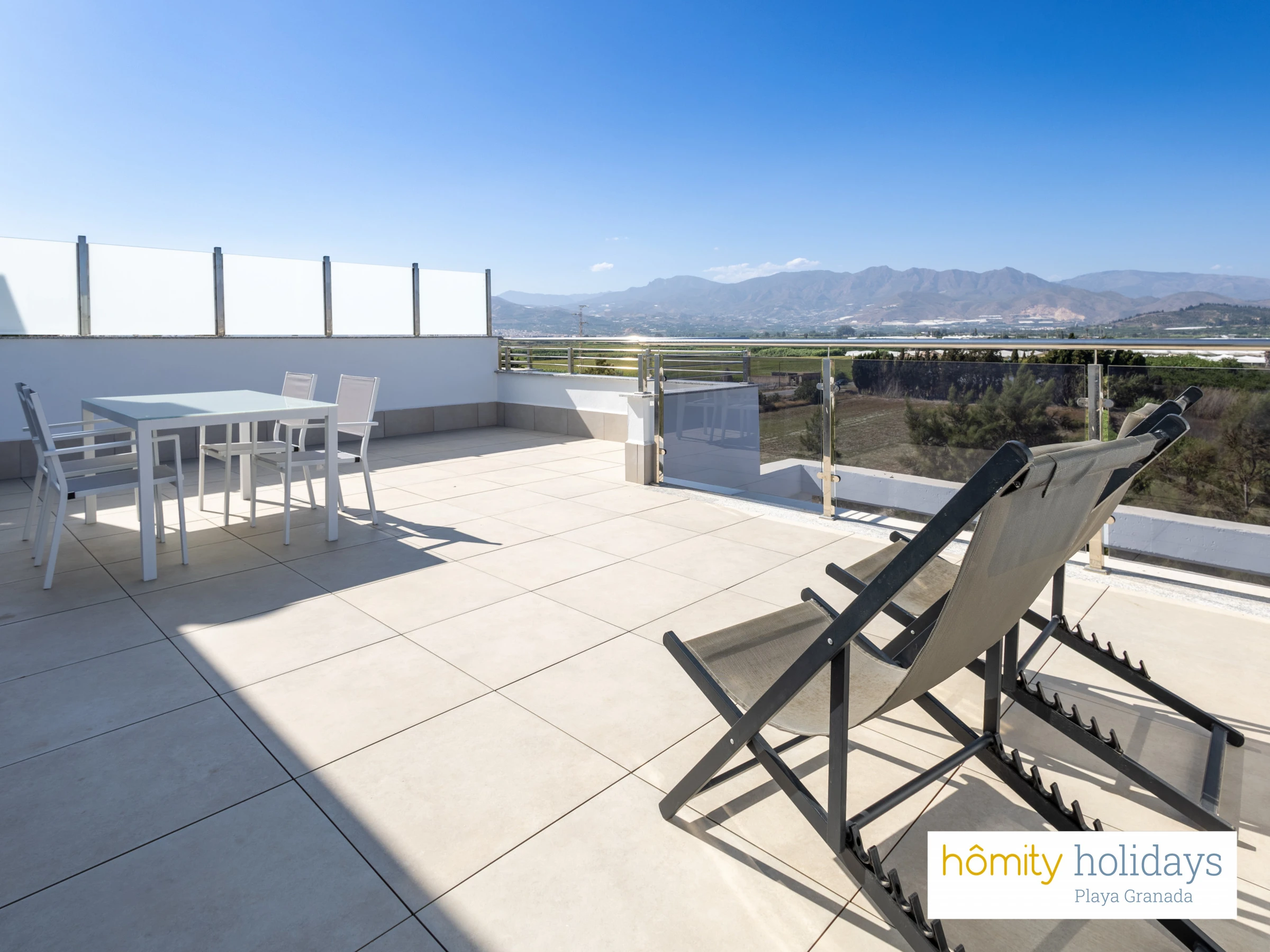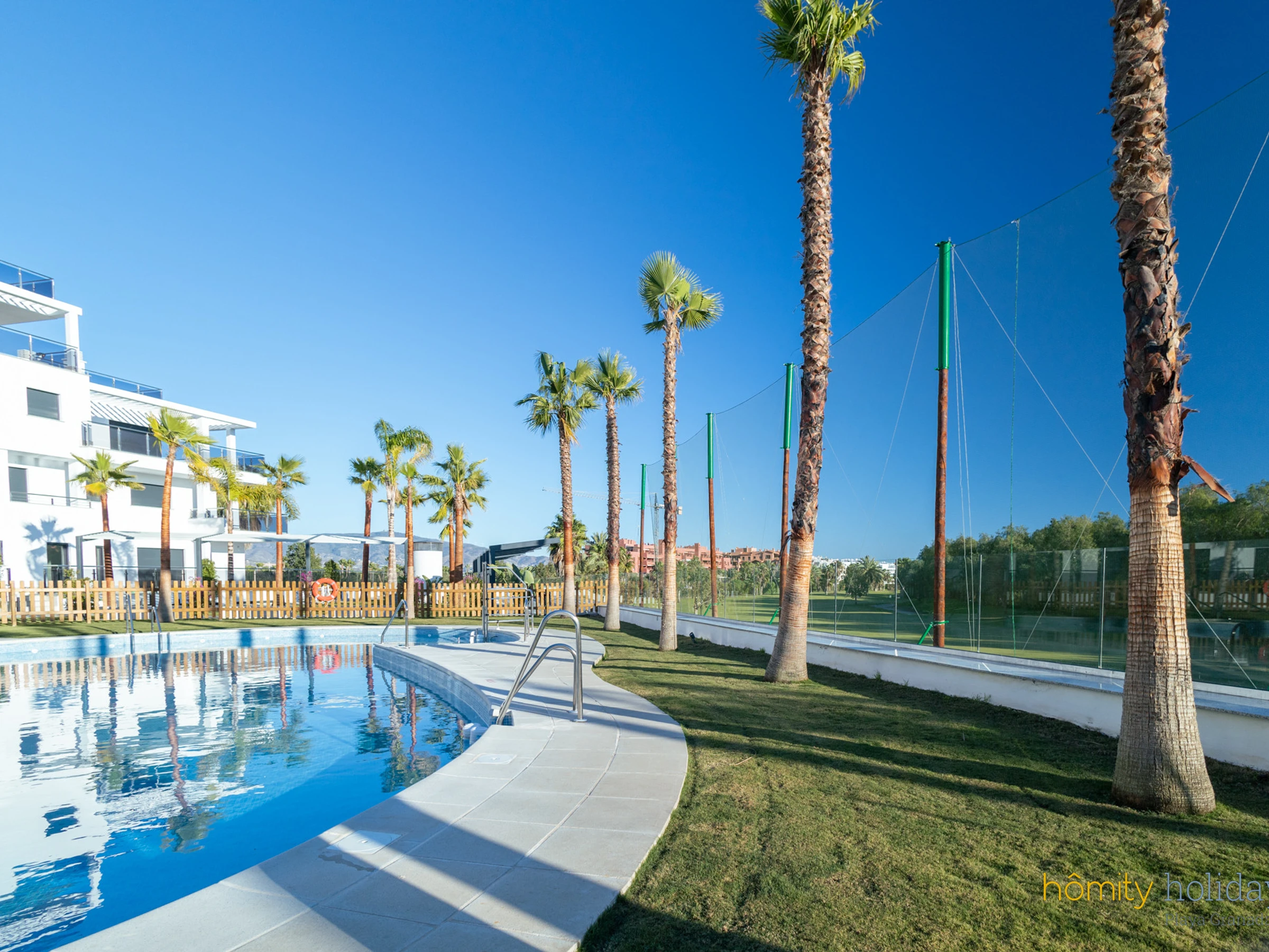 Unterkunft Unterkunft hat 102 m², mit Blick auf die Berge und den Golfplatz.