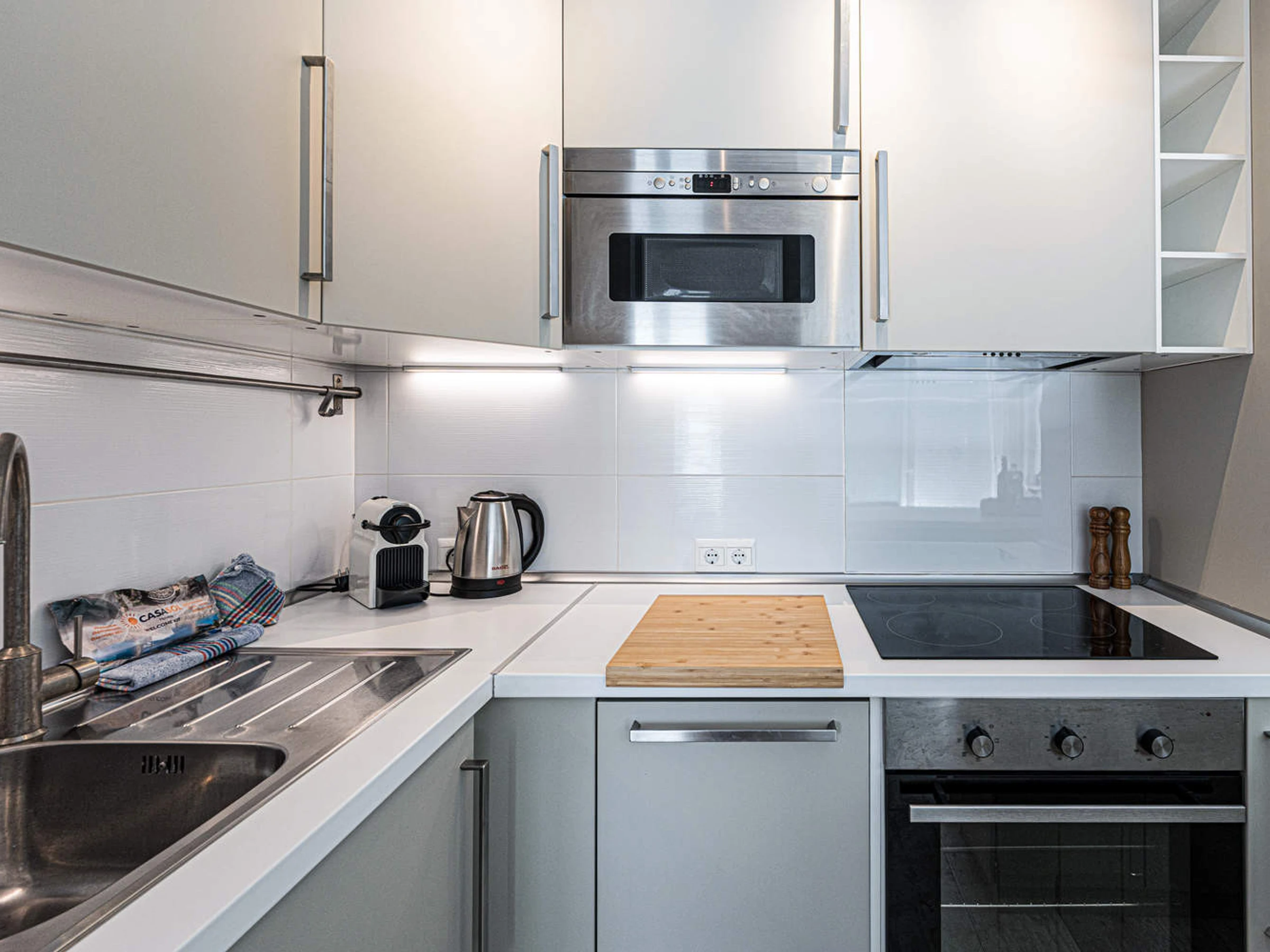 Ausstattung: Das Apartment verfügt über Highspeed-WLAN, Klimaanlage, eine offene, voll ausgestattete Küche mit hochwertigen Geräten, eine Nespresso-Kaffeemaschine, einen Wasserkocher, einen Toaster und komplettes Kochgeschirr. Für einen noch komfortableren Aufenthalt stehen ein Dyson-Staubsauger und ein Haartrockner zur Verfügung.
