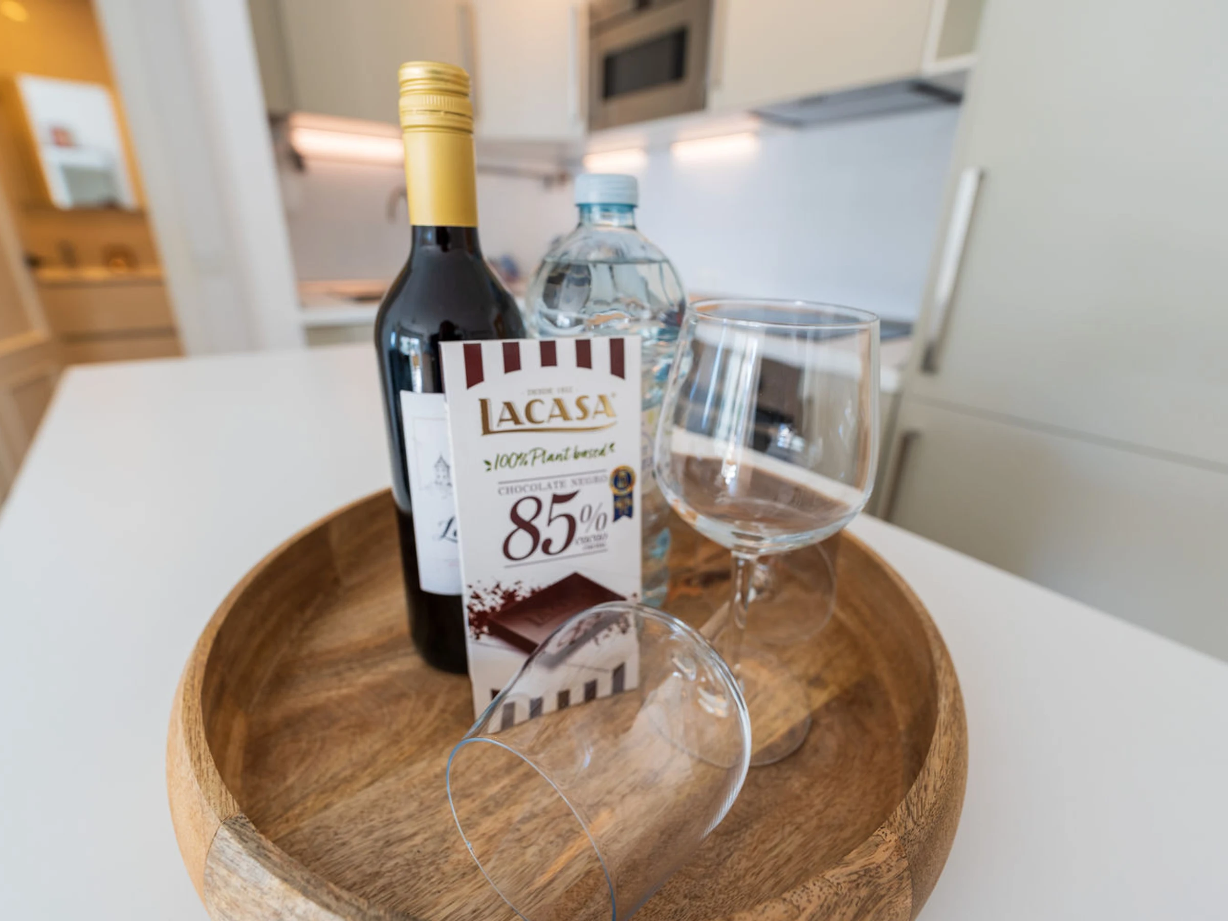 Liebe zum Detail: Wir können Ihre Abholung vom Flughafen organisieren und bei verspäteter Ankunft ein Willkommenspaket mit kalten Getränken und Snacks vorbereiten.