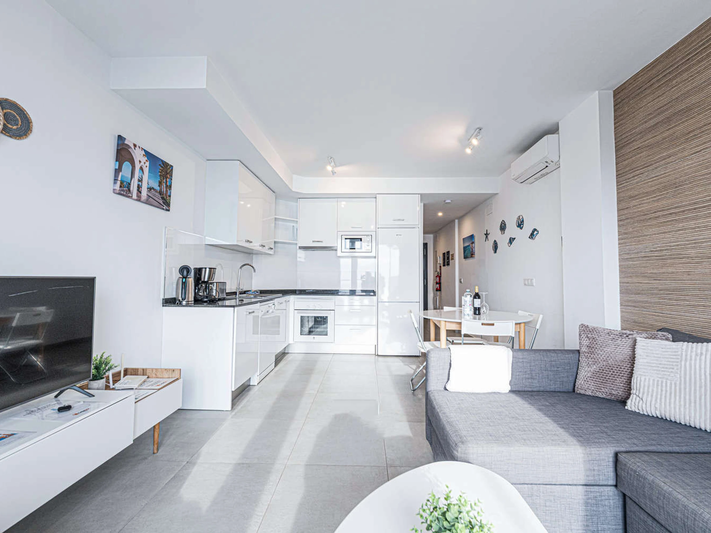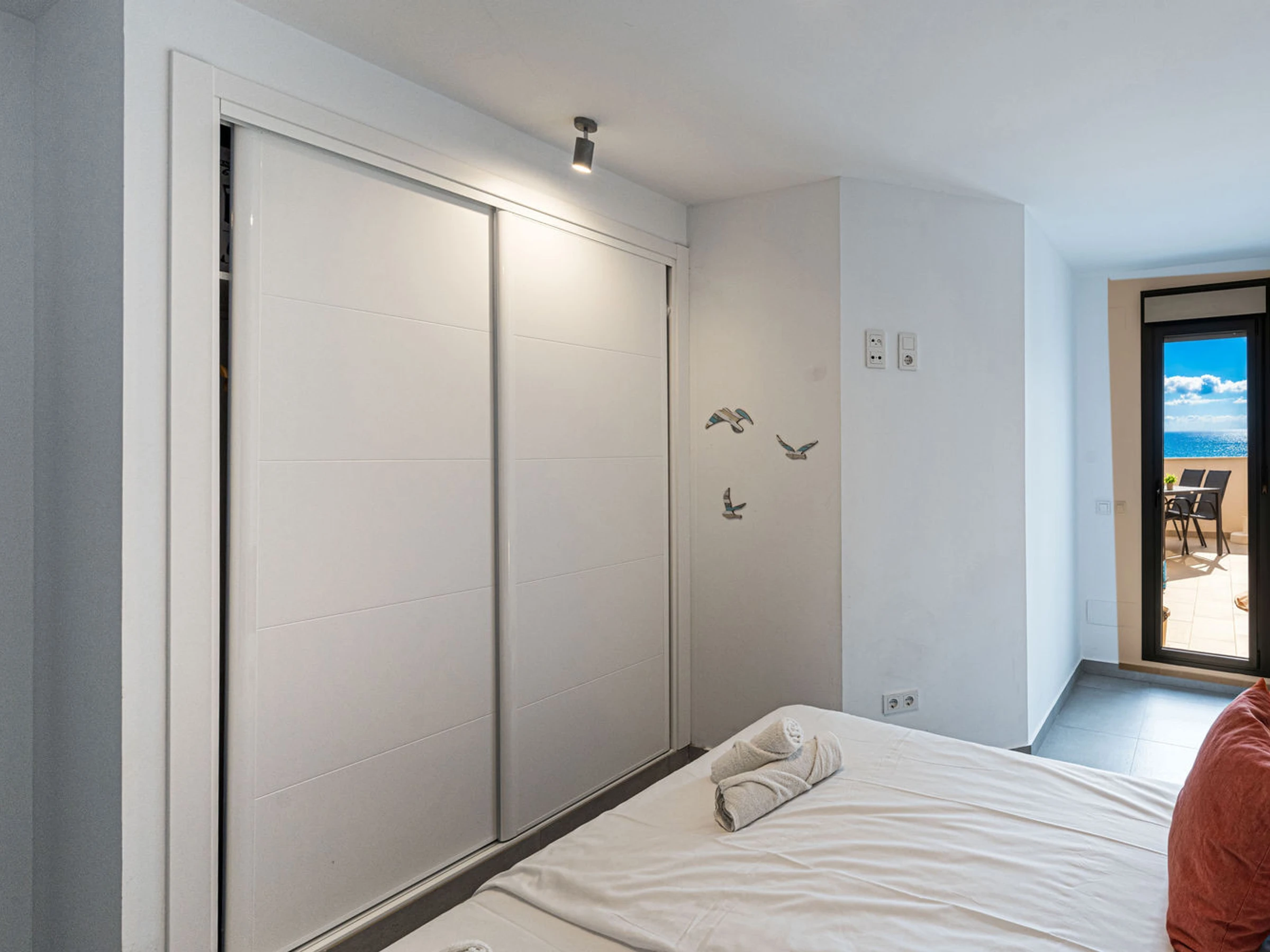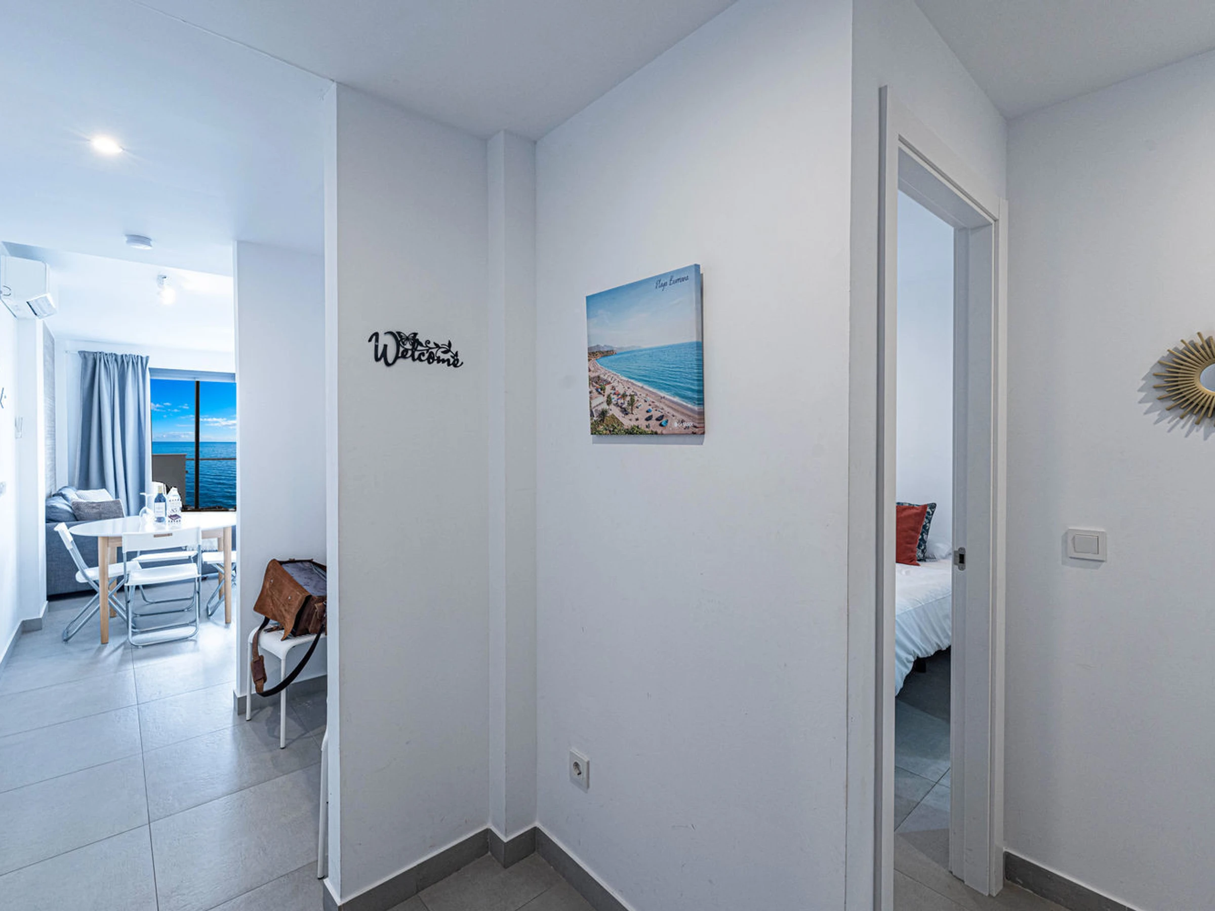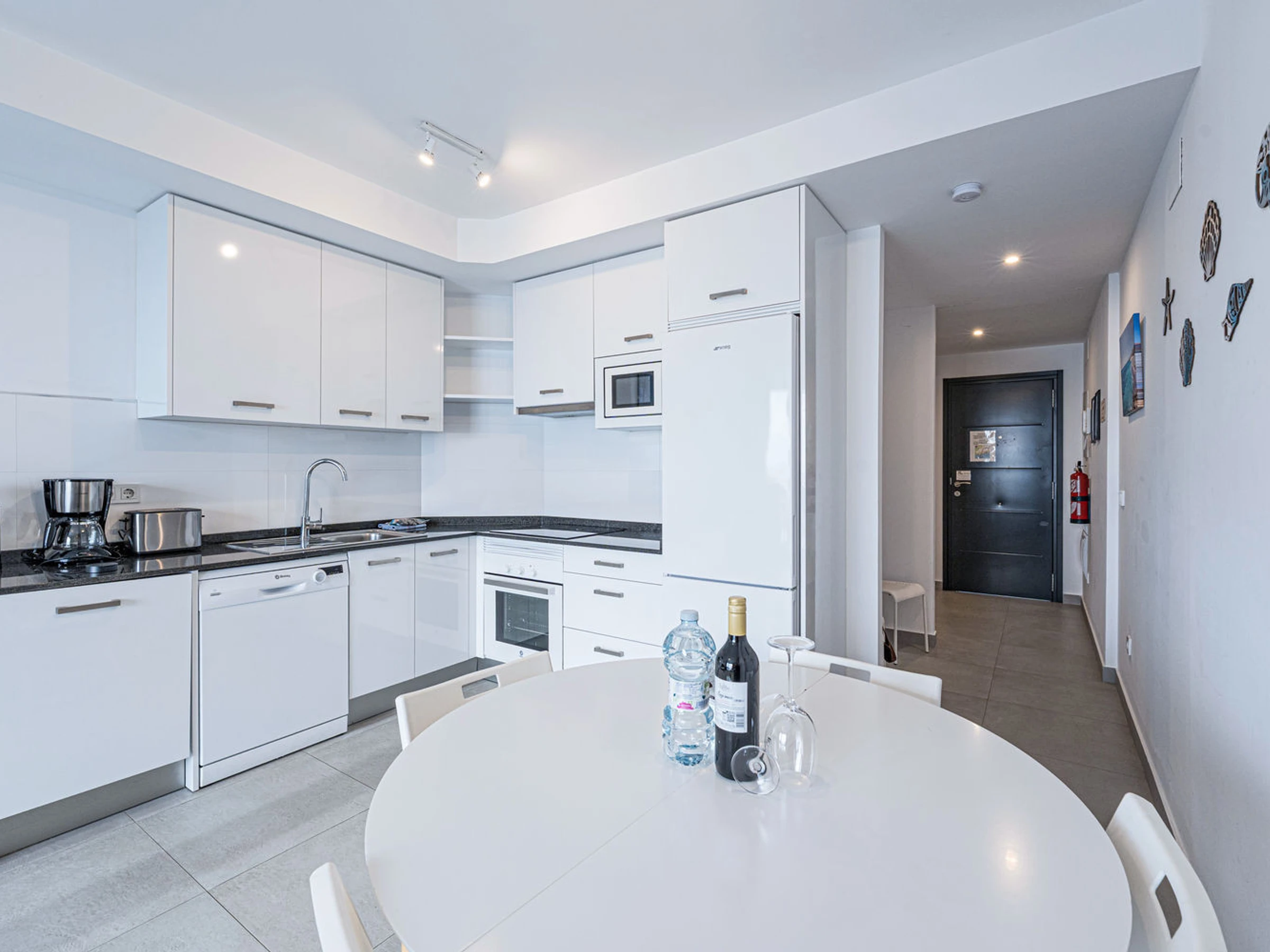 Die Wohnung hat zwei Schlafzimmer und zwei Bäder: eines mit einem Kingsize-Bett und eigenem Bad und ein weiteres Schlafzimmer mit Etagenbetten. Außerdem gibt es eine voll ausgestattete, moderne Küche mit modernsten Geräten, in der du dich während deines Urlaubs wie zu Hause fühlen kannst.