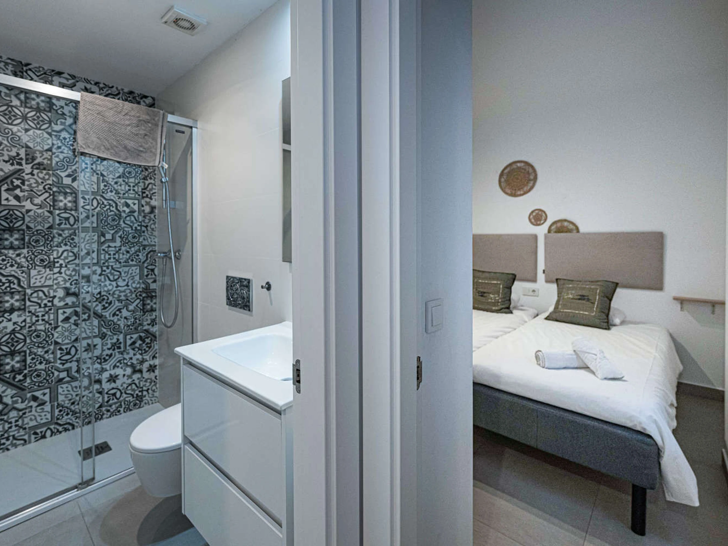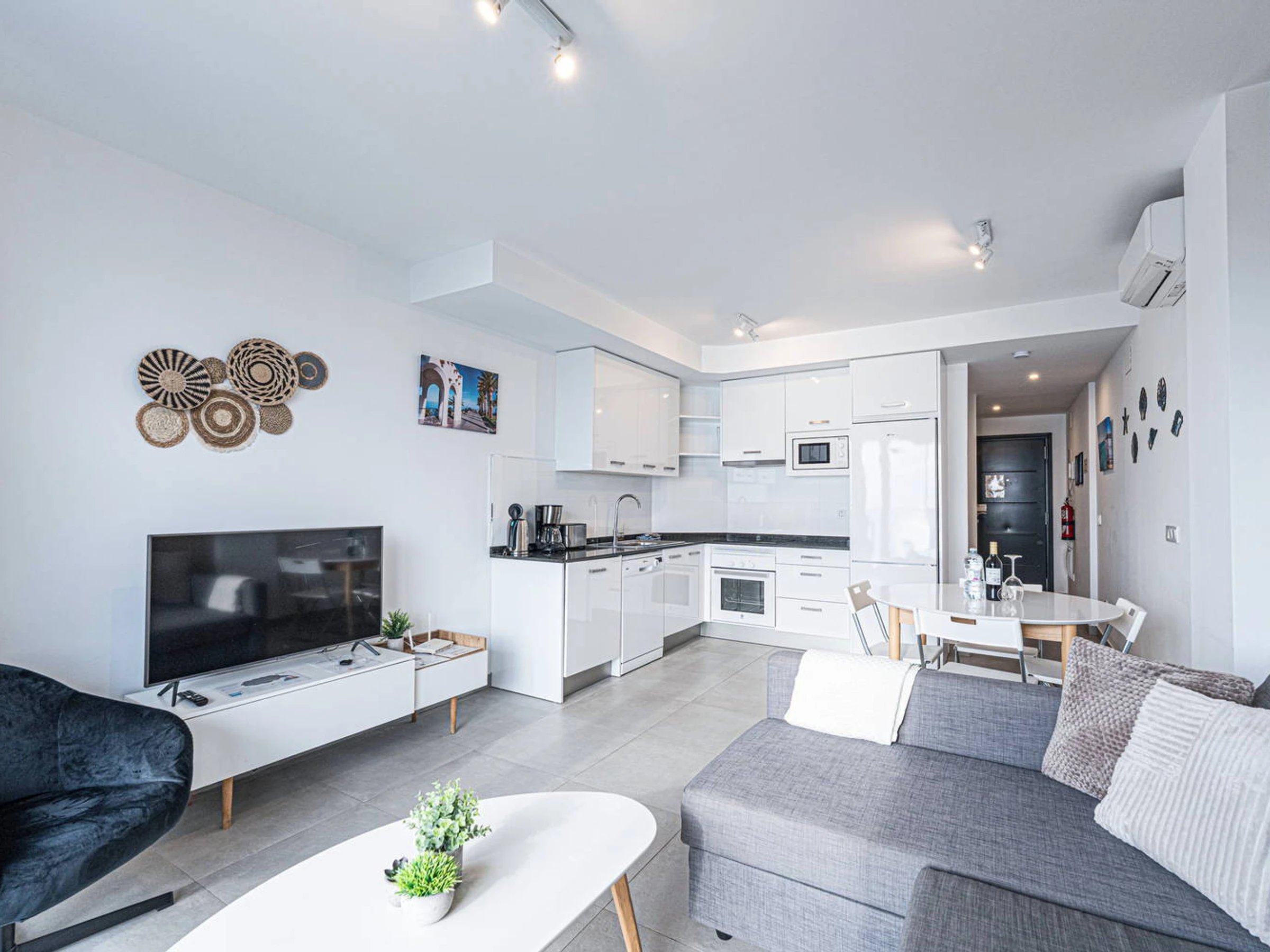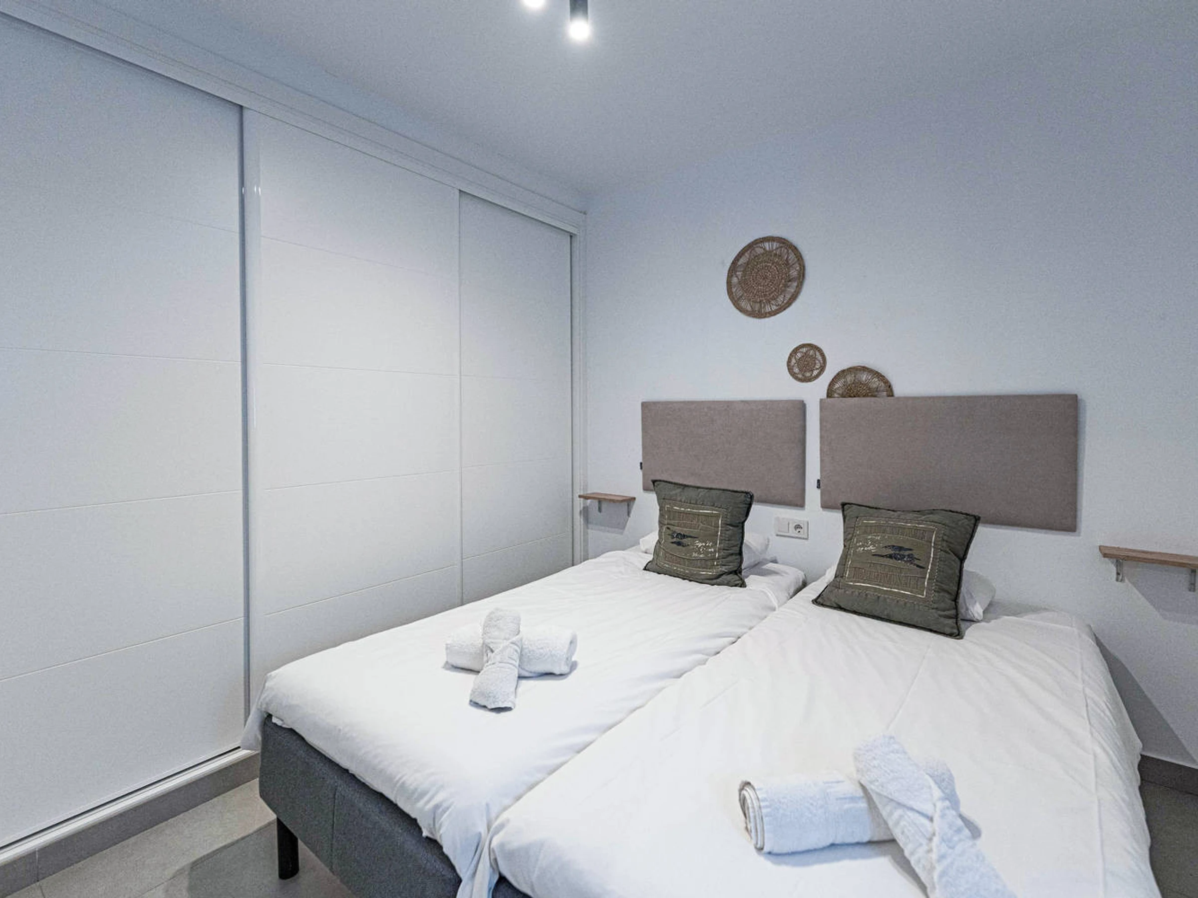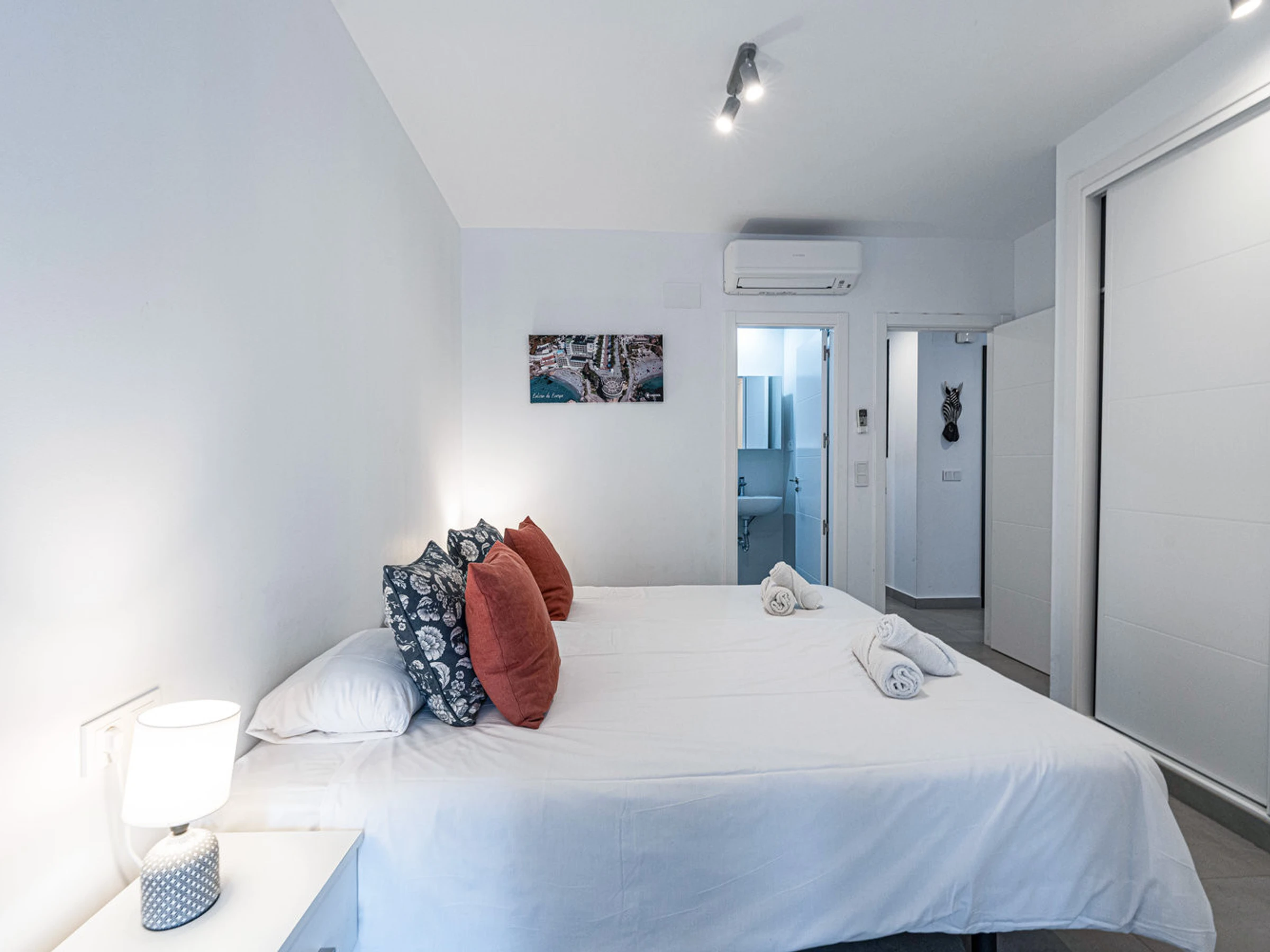 Die Wohnung hat zwei Schlafzimmer und zwei Bäder: eines mit einem Kingsize-Bett und eigenem Bad und ein weiteres Schlafzimmer mit Etagenbetten. Außerdem gibt es eine voll ausgestattete, moderne Küche mit modernsten Geräten, in der du dich während deines Urlaubs wie zu Hause fühlen kannst.