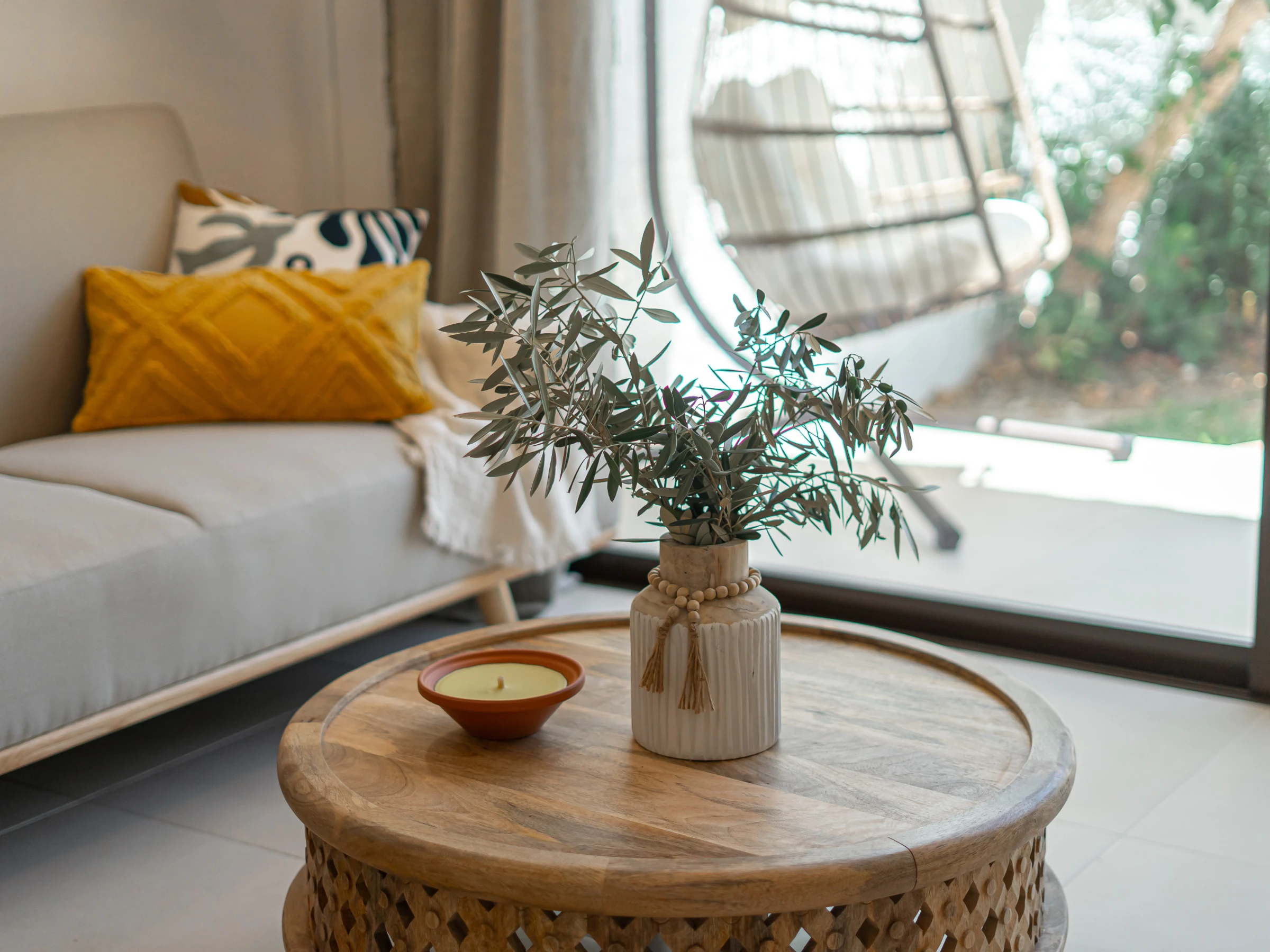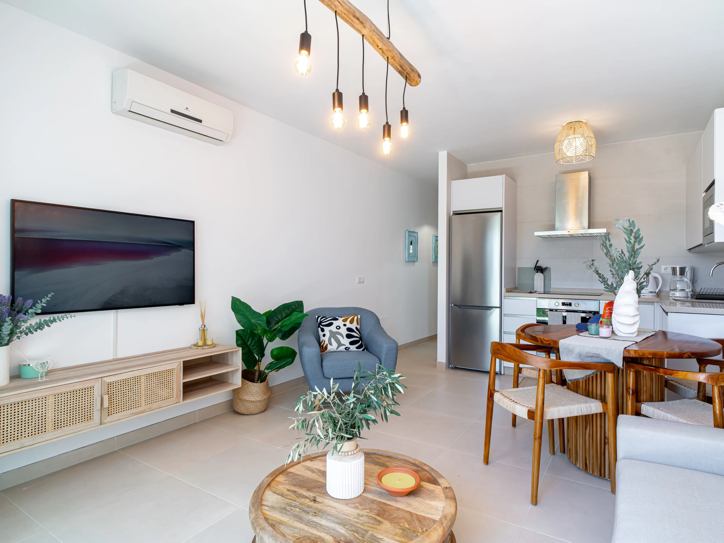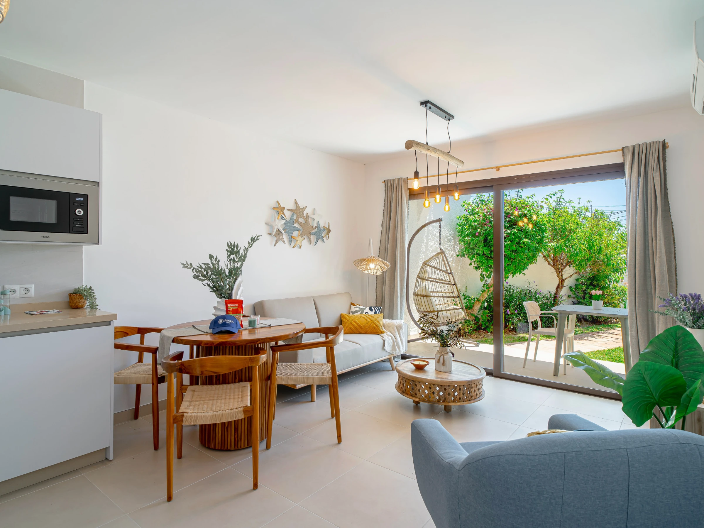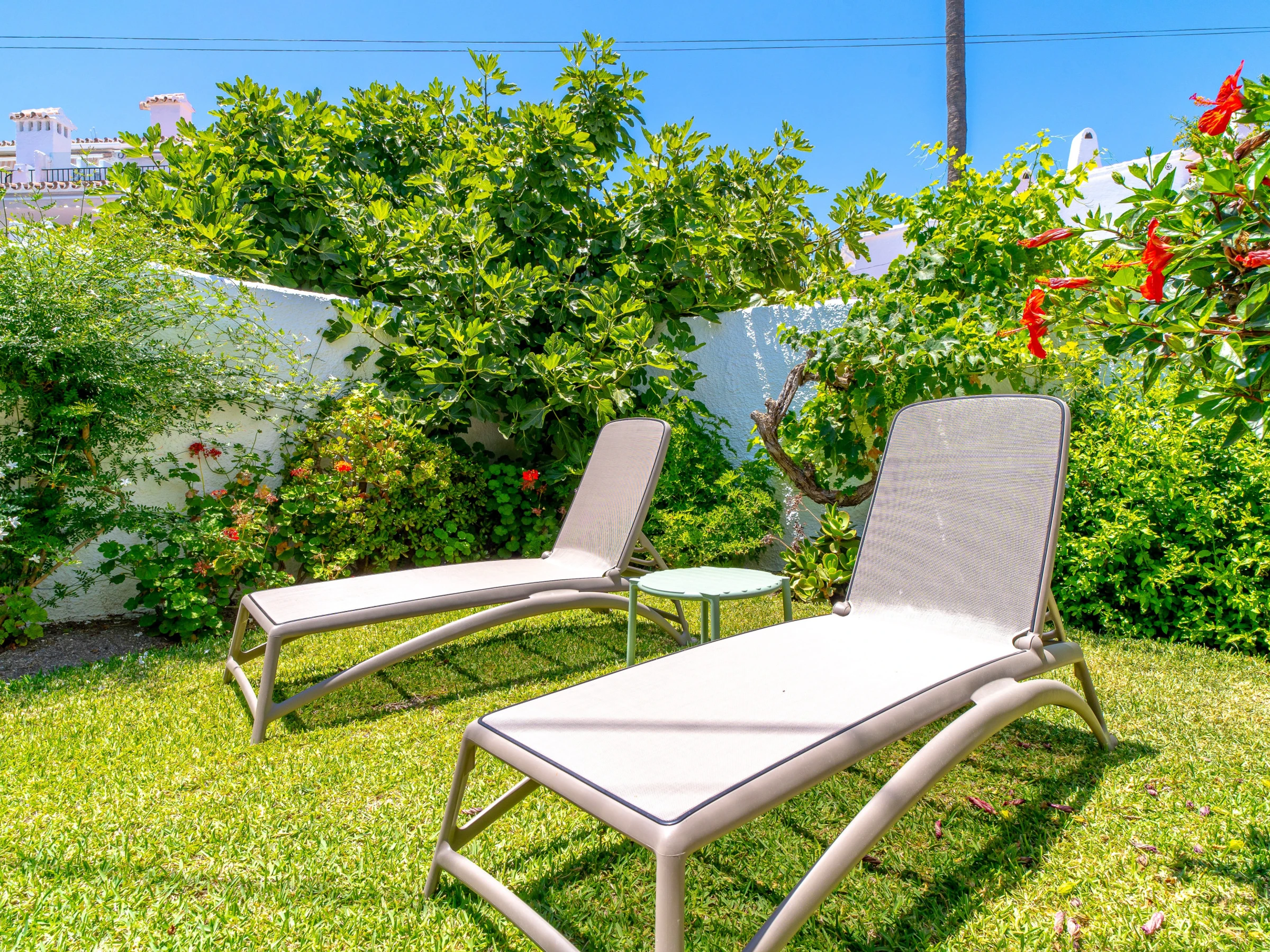 Das Herzstück dieser Wohnung ist der 40 Quadratmeter große, nach Südwesten ausgerichtete Privatgarten. Hier kannst du auf bequemen Liegestühlen die Sonne genießen, dich auf einem Hängesessel entspannen oder an einem eleganten Tisch im Freien essen und trinken. Dieser Platz ist perfekt, um zu entspannen und das mediterrane Klima in völliger Privatsphäre zu genießen.