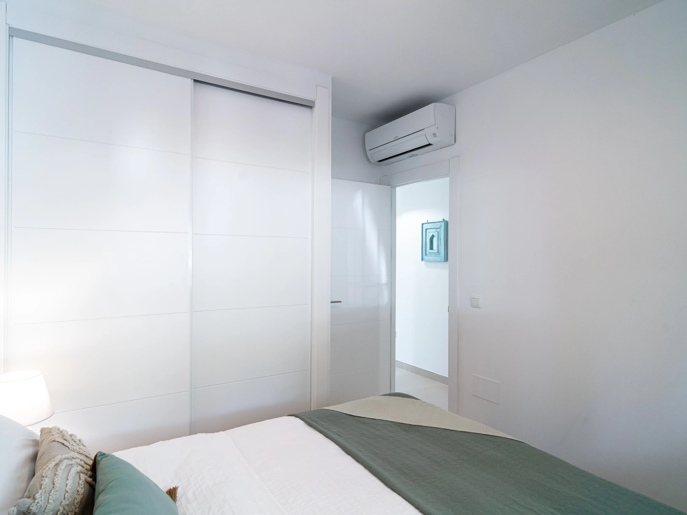 Das Schlafzimmer ist mit einem Doppelbett und einer hochwertigen Matratze ausgestattet, die dir einen erholsamen Schlaf garantiert. Außerdem gibt es einen Einbauschrank und Verdunkelungsrollos, die für eine ruhige Nachtruhe sorgen. Die Klimaanlage sorgt das ganze Jahr über für eine angenehme Temperatur.
