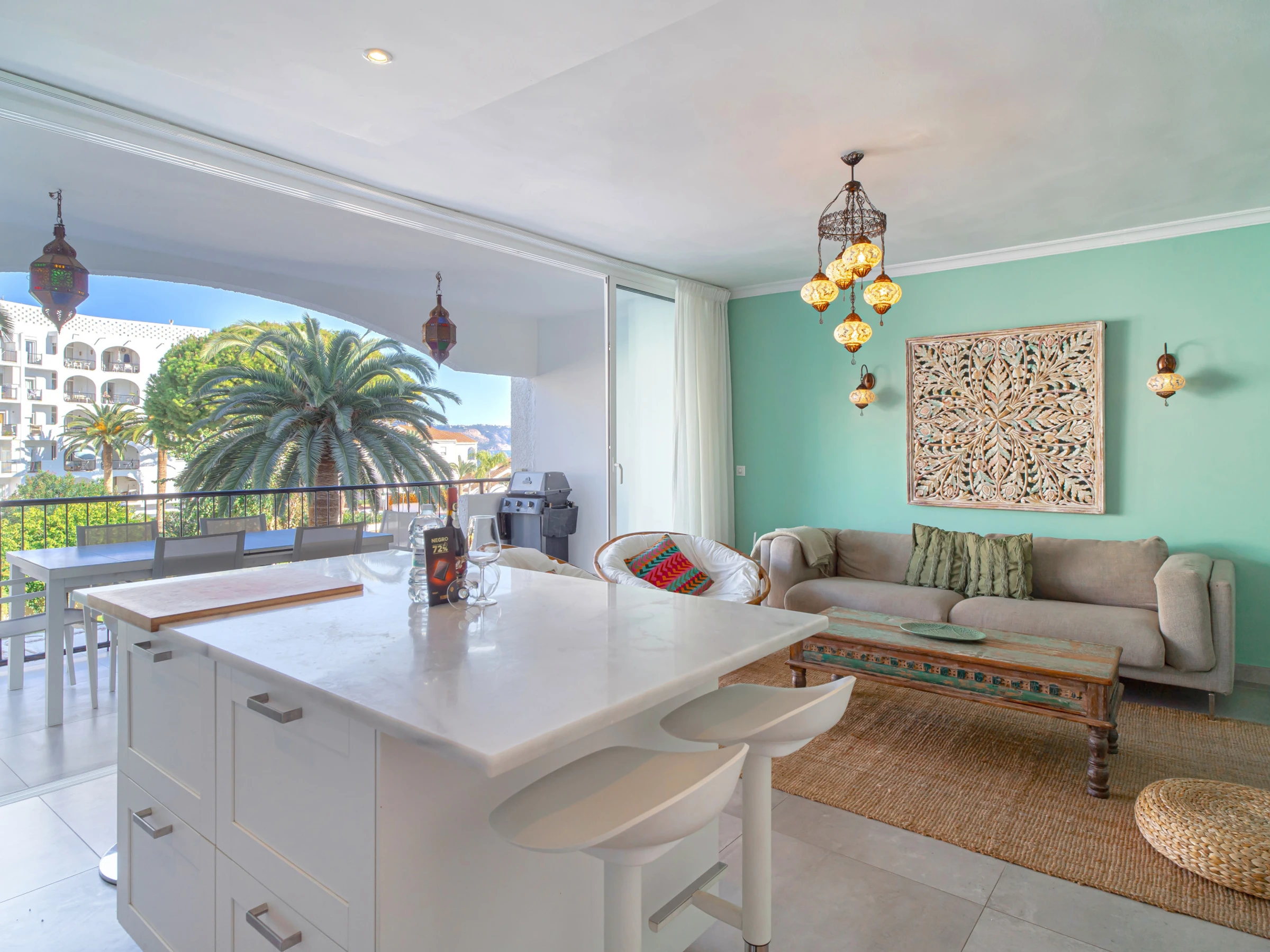 Vom Strand aus sind Sie in nur einer Minute zu Hause. Carabeo 20 ist ein renoviertes Apartment, in dem Sie einen entspannten Urlaub genießen können: eine große Küche mit einer Insel zum Beisammensein, eine entspannende Aussicht und alles in unmittelbarer Nähe in einer der begehrtesten Gegenden von Nerja. Hier müssen Sie nichts im Voraus planen, alles liegt direkt vor Ihrer Haustür. Wenn der Abend hereinbricht, öffnen sich die großen Schiebetüren im Wohnzimmer zur Terrasse und lassen die Brise hereinwehen. Während sich einige nach einem Bad im Salzwasserpool entspannen, können andere ganz bequem an der zentralen Insel das Abendessen zubereiten. Die Lage und das Design sprechen für sich, sodass Sie mehr genießen und weniger reisen können.