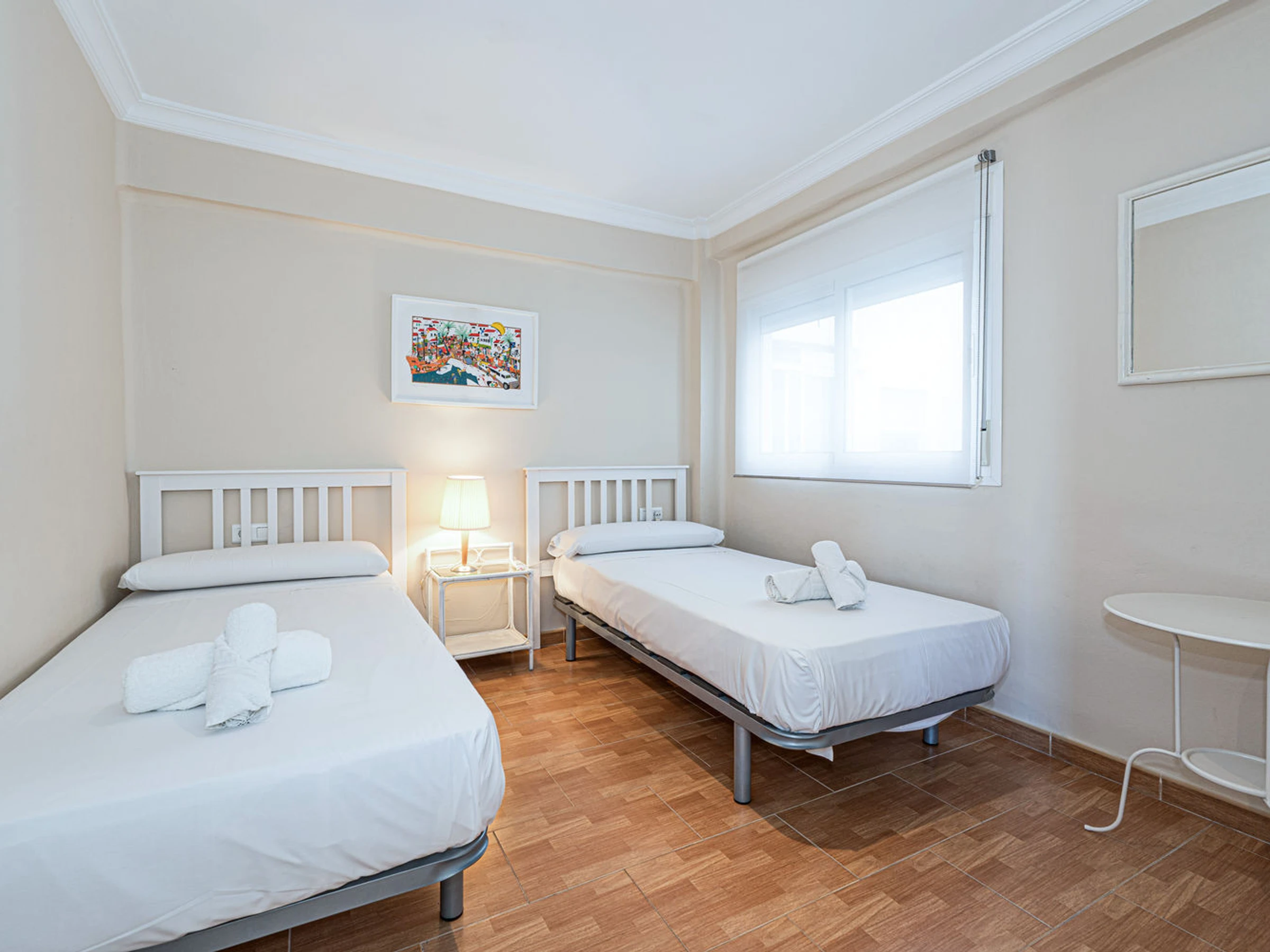 Dieses moderne und helle Apartment bietet Platz für 4 Personen und verfügt über 2 Schlafzimmer, eines mit einem Kingsize-Bett und das andere mit zwei Einzelbetten, ideal für Familien oder Paare, die zusammen reisen und Komfort, Platz und Stil suchen.