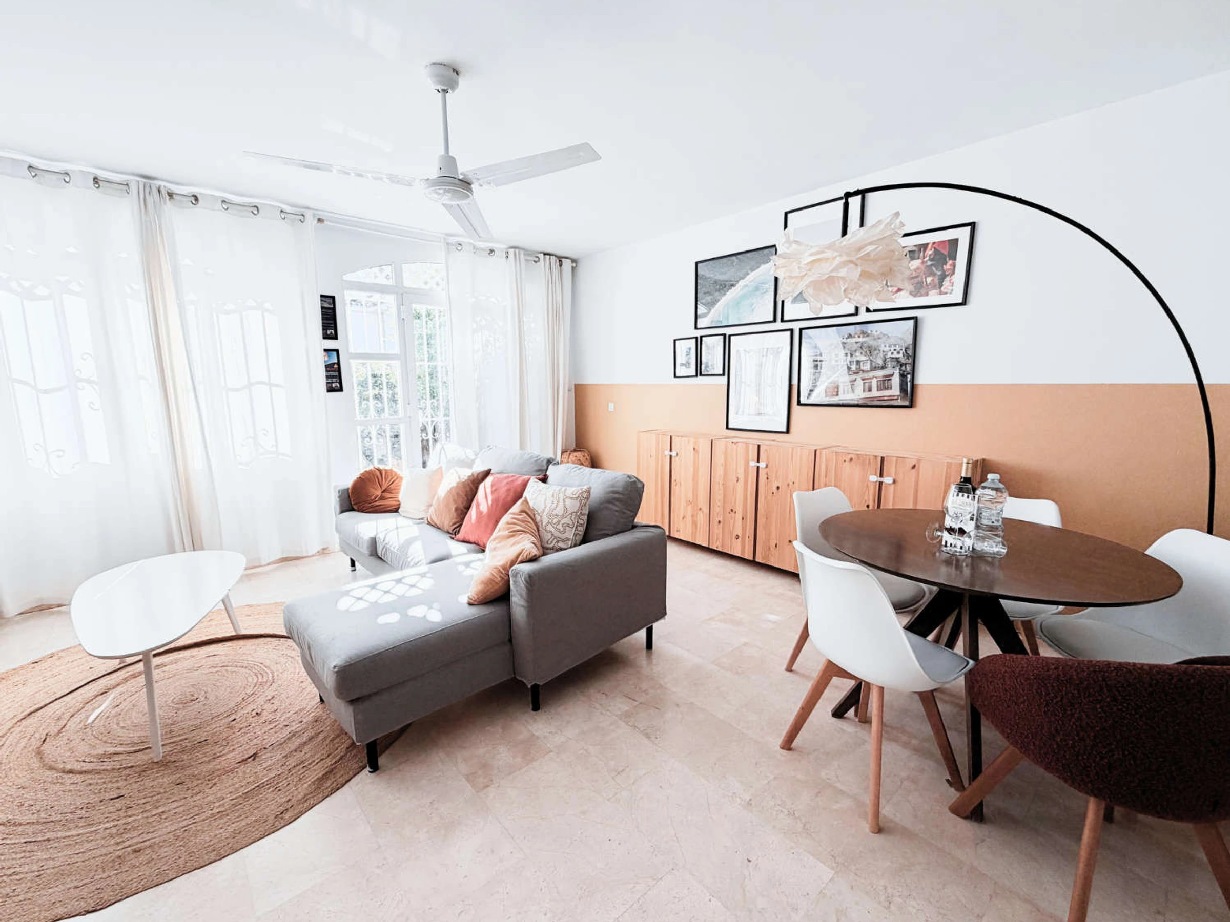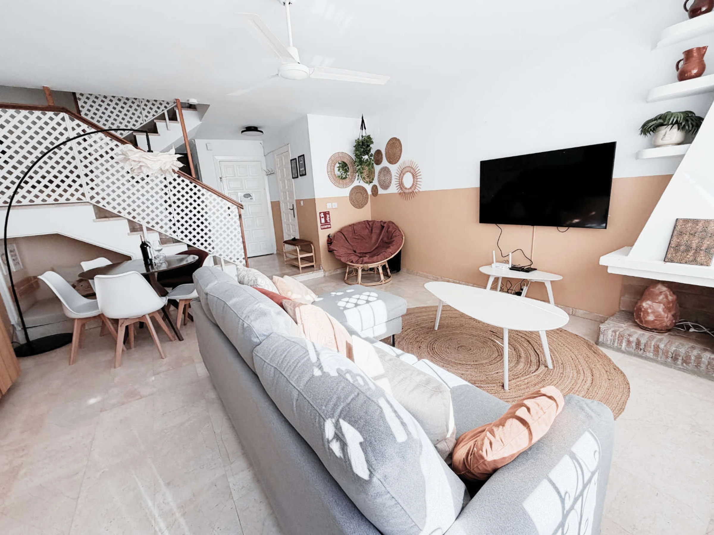 Diese Maisonette in der Wohnanlage Verano Azul ist so gestaltet, dass Groß und Klein ihren Platz finden. Es handelt sich um eine helle Unterkunft, die ein perfektes Gleichgewicht zwischen Zusammenleben und Privatsphäre schafft: Während Sie sich beim Grillen auf der Terrasse oder beim Stöbern in der Bibliothek im Wohnzimmer entspannen, haben die Kleinen ihre eigene Kinderecke, in der sie spielen und sich vergnügen können. Dank der ruhigen, aber strategisch günstigen Lage können Sie ganz bequem zwischen dem berühmten Strand von Burriana und den Pools der Anlage wechseln.Die Immobilie: Maisonette-Wohnung auf zwei Etagen mit ausgezeichnetem Tageslicht. Sie verfügt über 2 Schlafzimmer (das Hauptschlafzimmer mit Doppelbett und Balkon, das zweite mit zwei Einzelbetten) und 2 Badezimmer (eines mit Badewanne im Obergeschoss und eines mit Dusche im Untergeschoss). Die Küche ist geräumig, modern und funktional. Das Wohn-Esszimmer ist das Herzstück des Hauses und bietet ein bequemes Sofa, eine Spielecke und eine Auswahl an Büchern und Brettspielen für die Freizeitgestaltung von Erwachsenen.