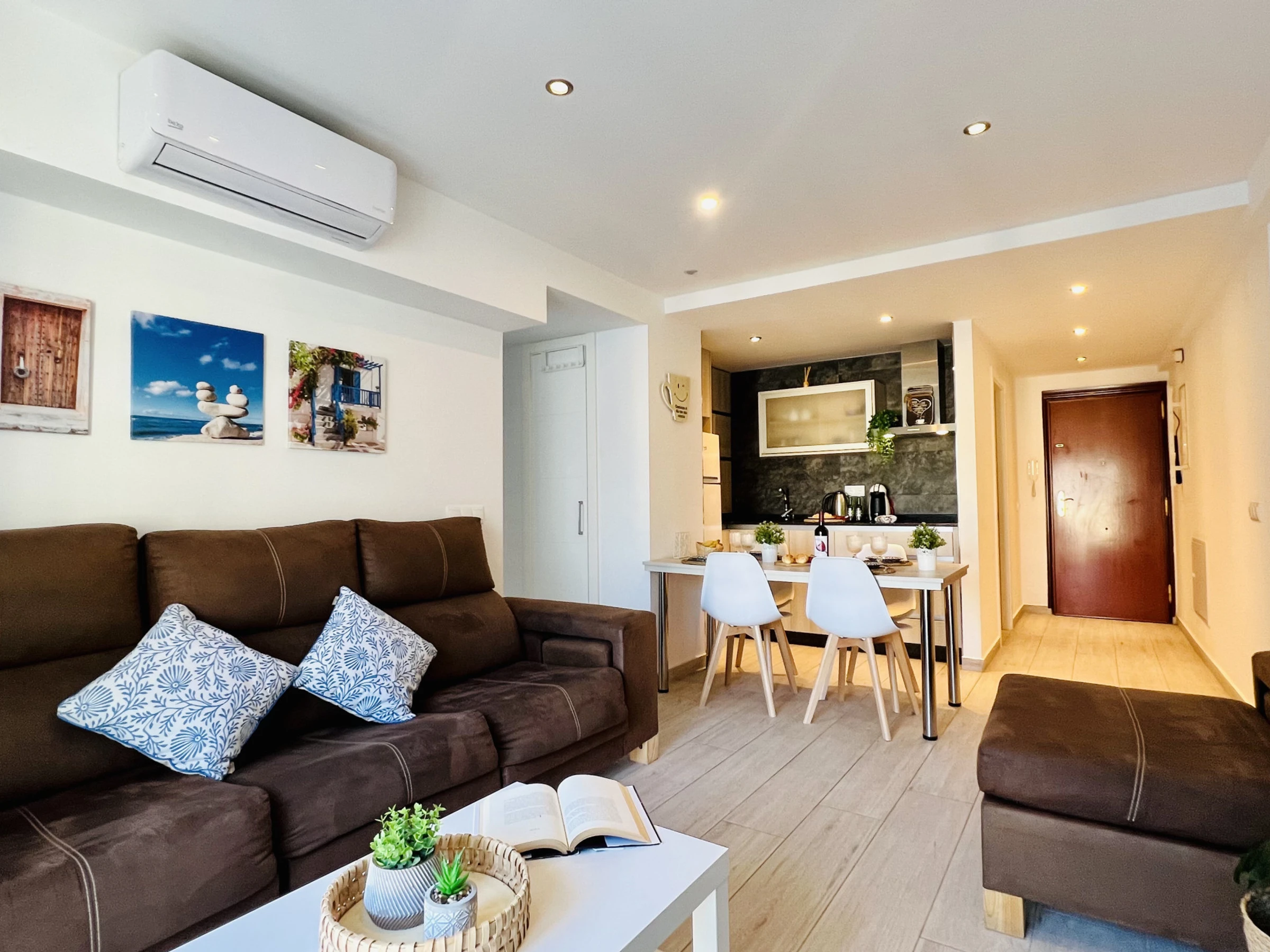 Diese Wohnung ist sehr hell und verfügt über einen Balkon, einen Smart-TV, eine Mikrowelle, Klimaanlage, 2 Badezimmer, einen Safe, einen Toaster, einen Entsafter, eine Kaffeemaschine mit Kapseln, einen Mixer und alles, was Sie brauchen, um mit Familie oder Freunden zu kochen und zu genießen.