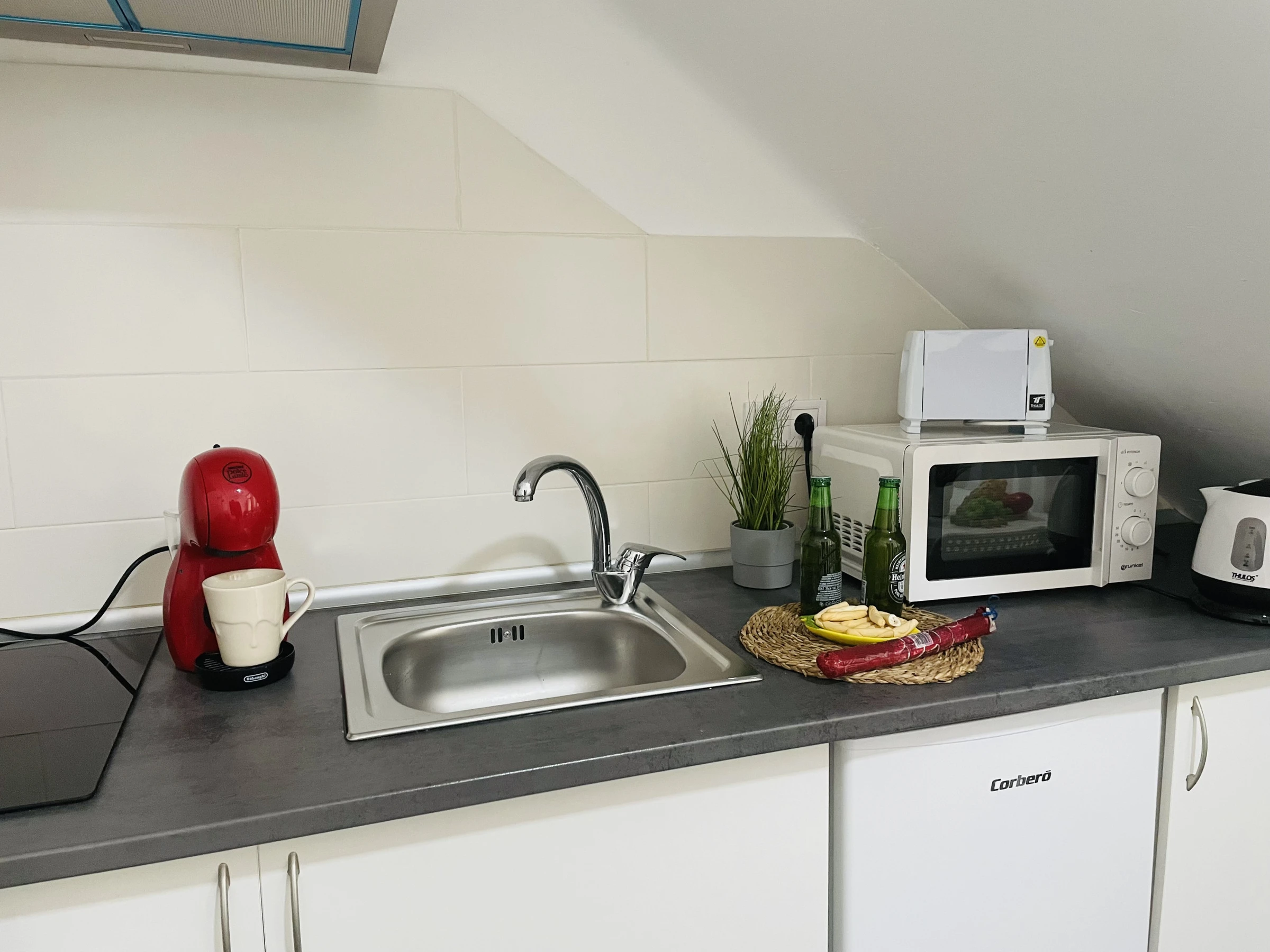Das Studio verfügt über ein Doppelbett und ein bequemes Schlafsofa und ist somit der perfekte Ort für Paare, Freunde oder kleine Familien, die einen unvergesslichen Urlaub in dieser schönen Stadt verbringen möchten. Die Einrichtung wurde sorgfältig ausgewählt, um eine gemütliche und moderne Atmosphäre zu schaffen.