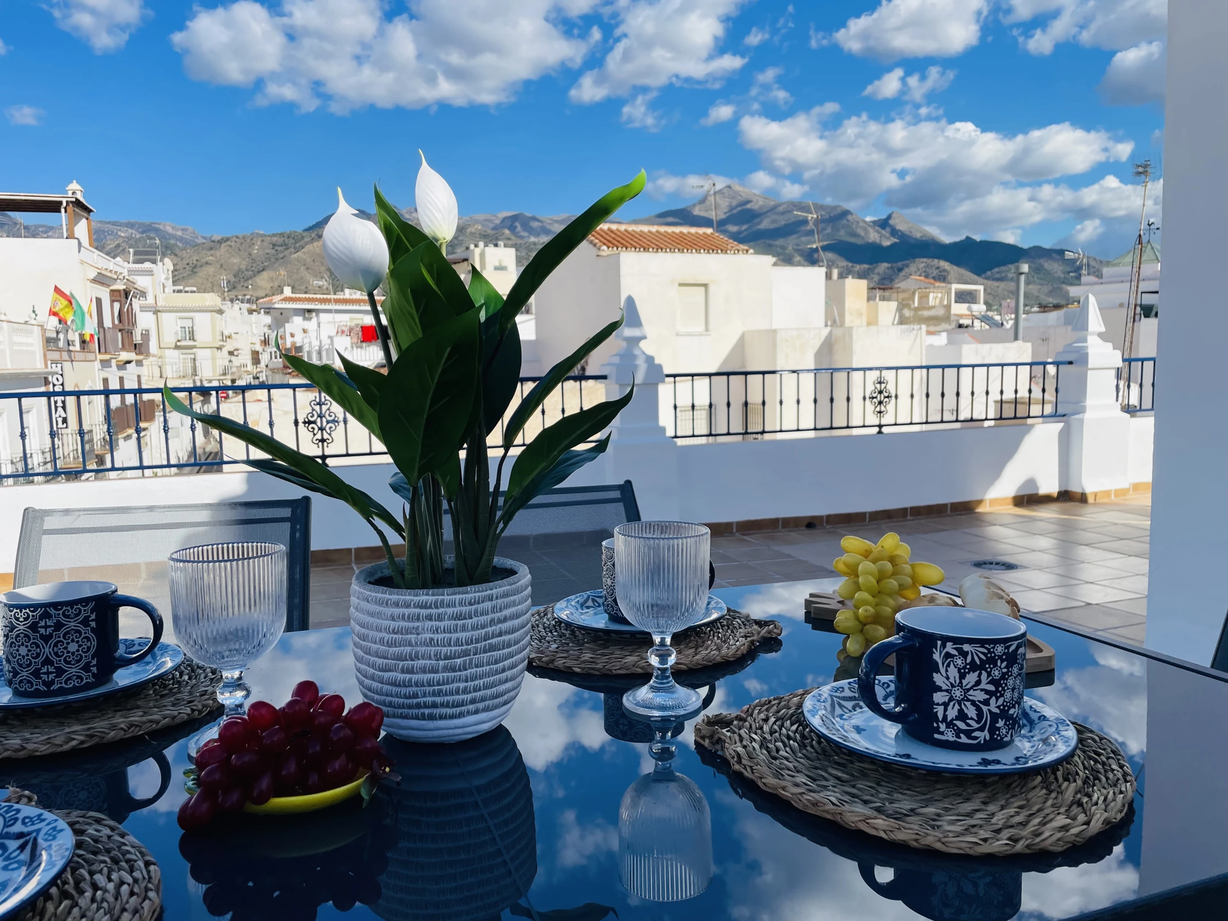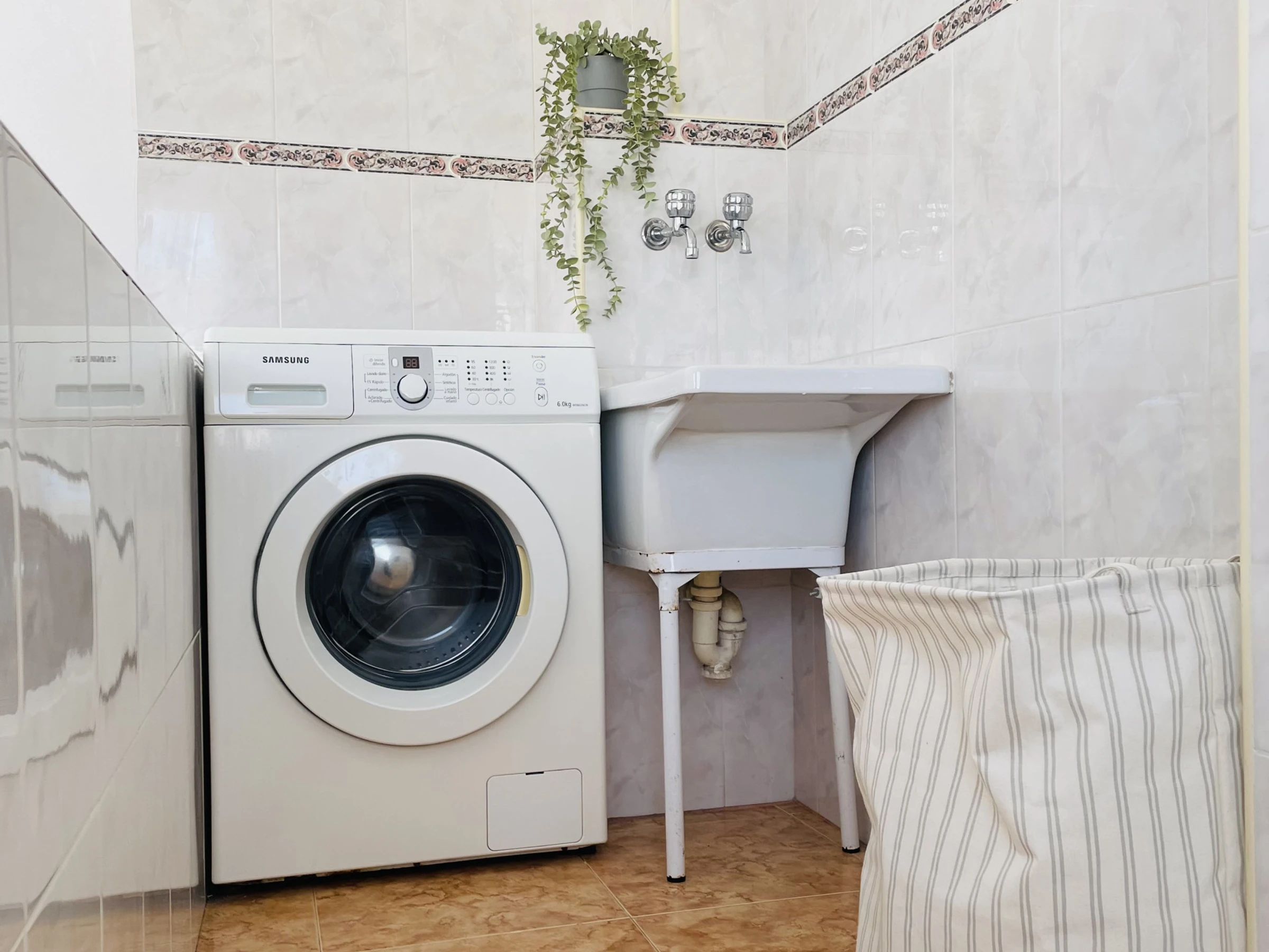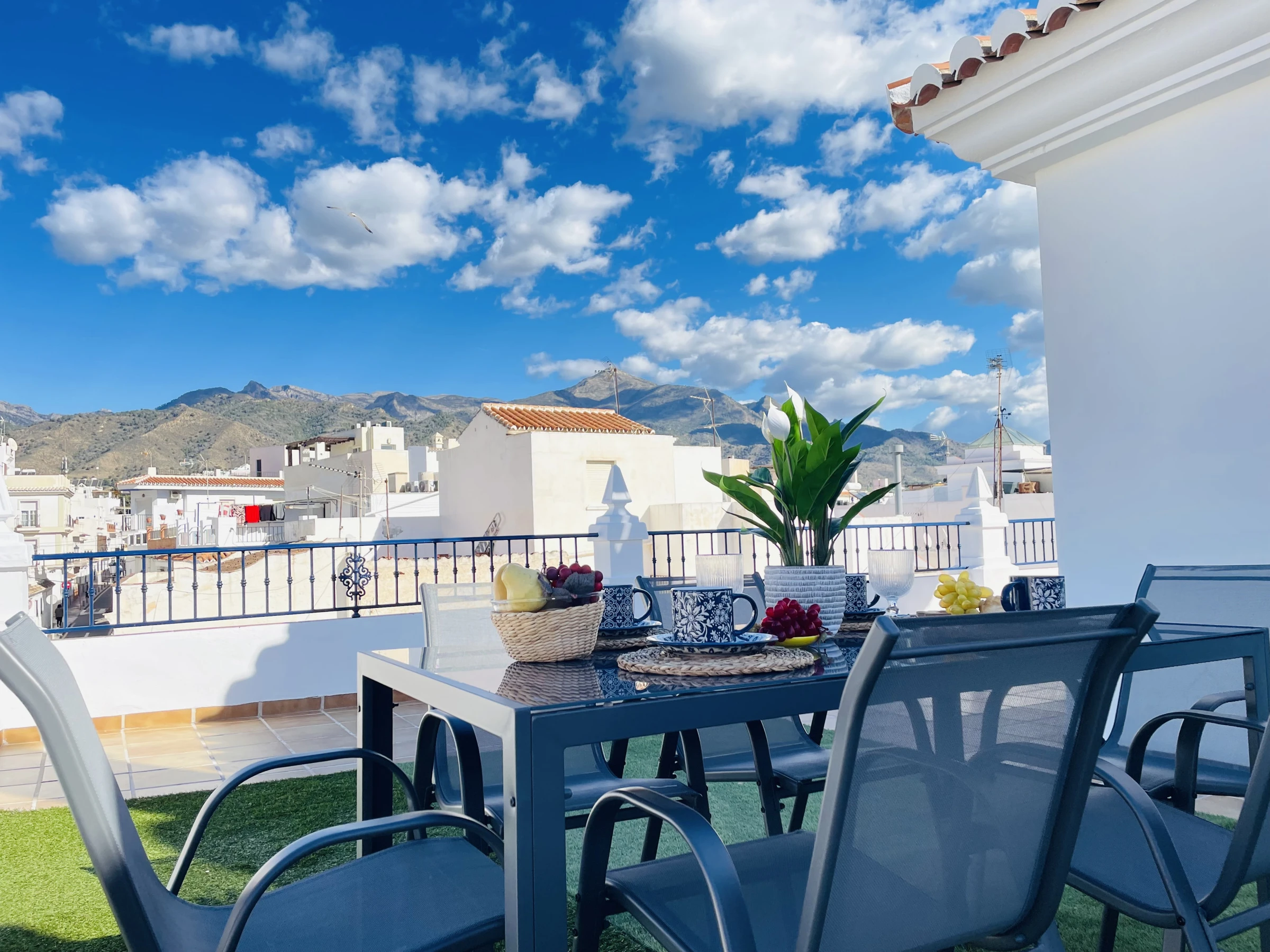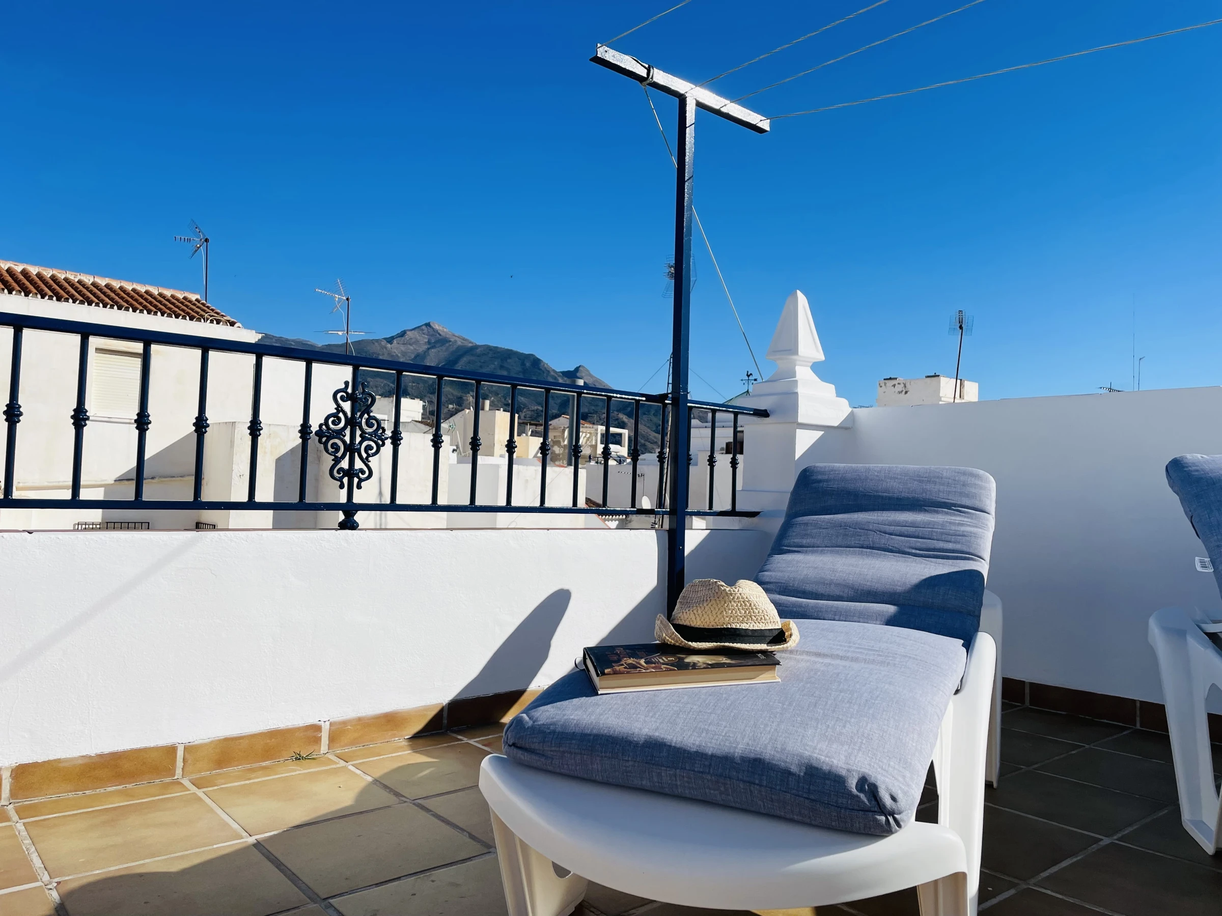 Die Immobilie bietet zudem eine große Dachterrasse im obersten Stockwerk, die ideal ist, um die Sonne und den Ausblick zu genießen. Sie ist mit einem Tisch und Stühlen sowie Liegestühlen ausgestattet und bietet den perfekten Ort, um im Freien Zeit mit Familie oder Freunden zu verbringen. Auf derselben Etage befindet sich auch ein Wäschebereich mit Waschmaschine und Wäschetrockner, was die Haushaltsaufgaben praktisch und bequem macht.