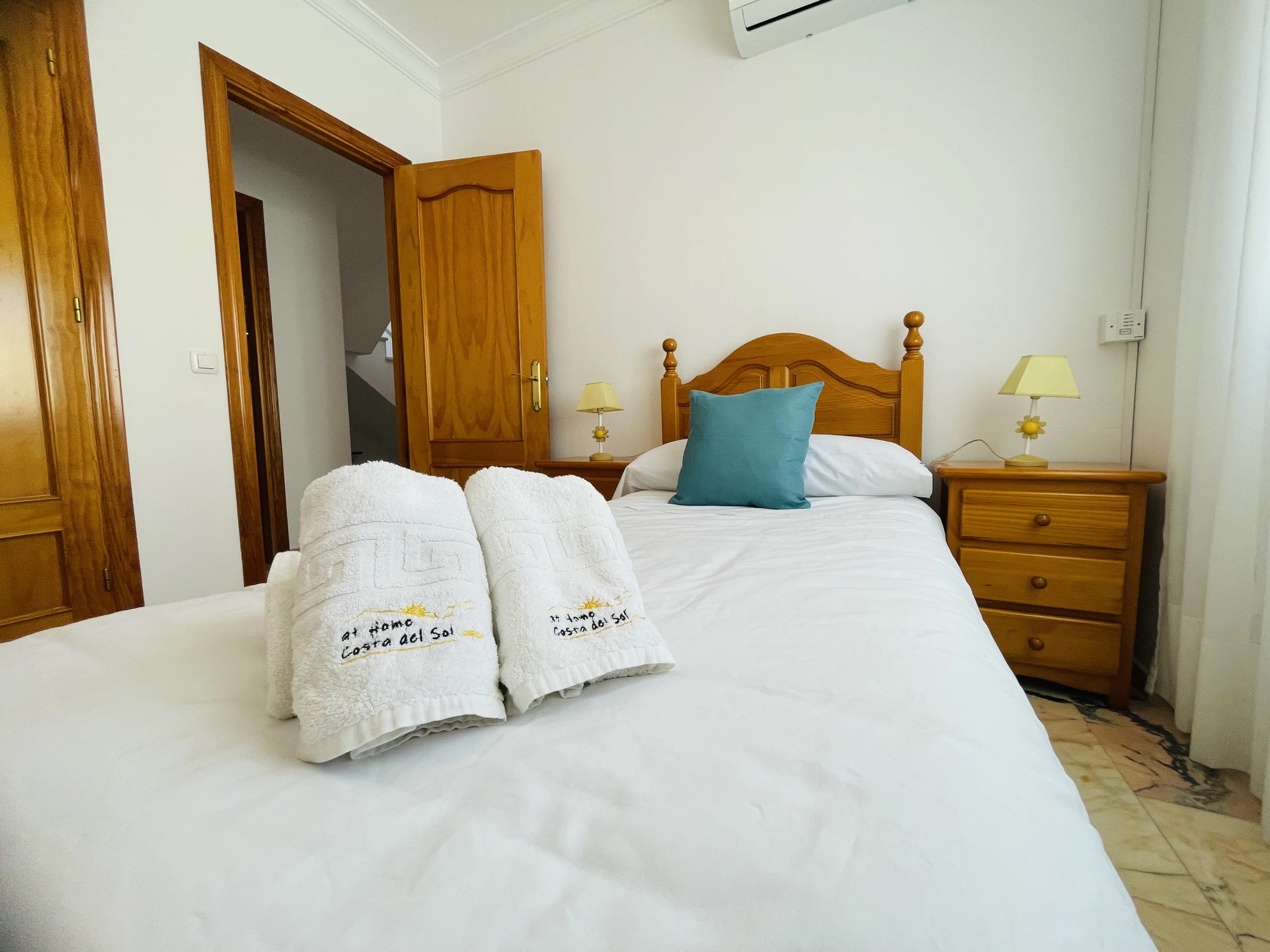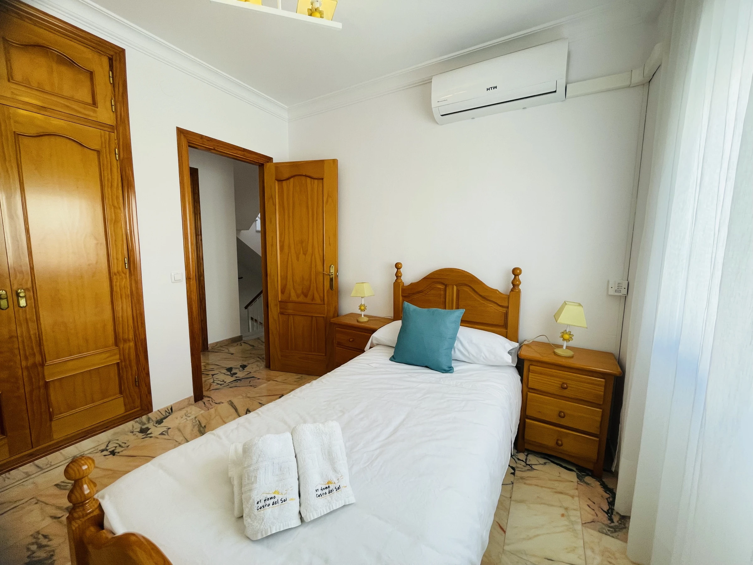 Im ersten Stock befinden sich drei großzügige und helle Schlafzimmer. Das Hauptschlafzimmer ist ein wahrer Rückzugsort, mit einem eigenen Badezimmer und einem geräumigen Ankleidezimmer, das viel Platz und Privatsphäre bietet. Das zweite Schlafzimmer ist mit zwei Einzelbetten (90 cm) ausgestattet, während das dritte Schlafzimmer ebenfalls mit einem Einzelbett (90 cm) eingerichtet ist. Auf dieser Etage befindet sich auch ein großes Badezimmer mit einer modernen Badewanne, das maximalen Komfort garantiert.