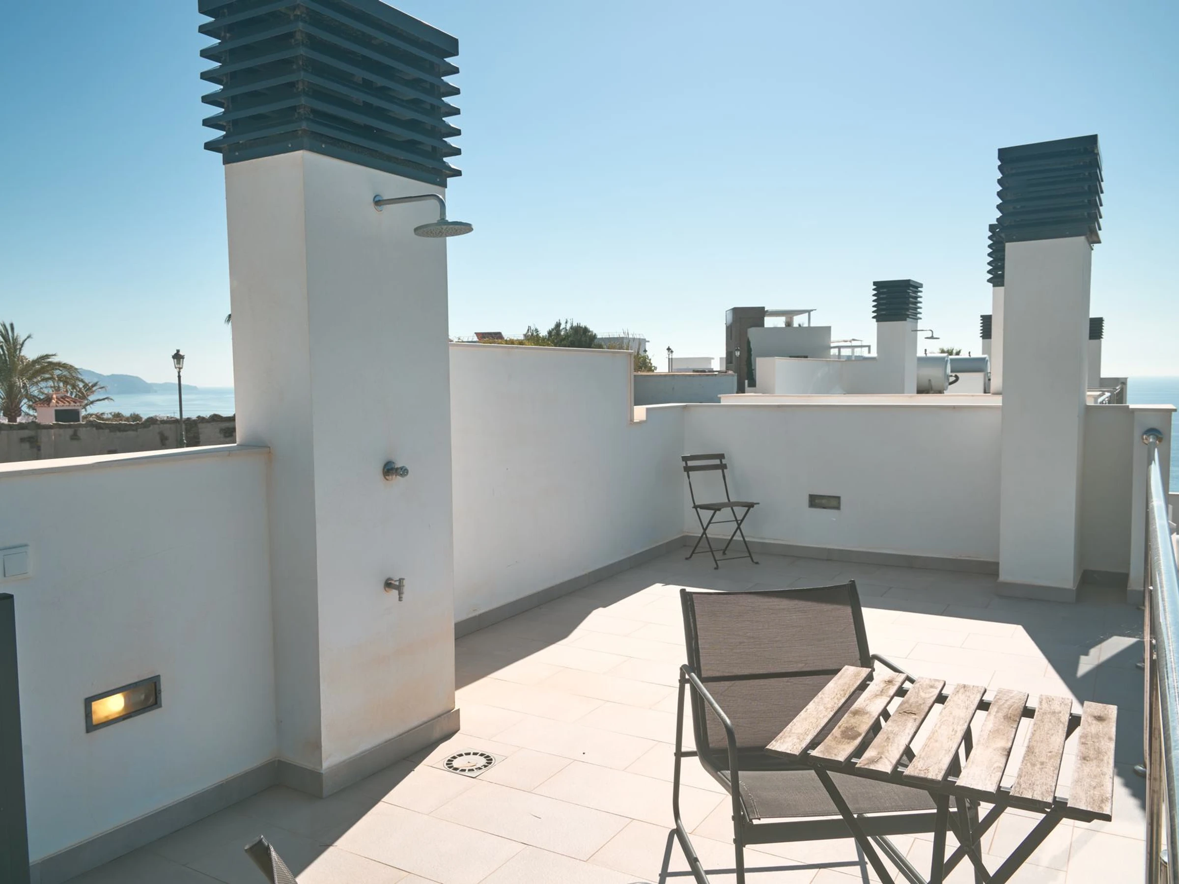 Da es sich um einen Neubau in erhöhter Lage handelt, bietet sich von allen drei Außenebenen ein direkter und beeindruckender Meerblick. Die oberste Dachterrasse verfügt über eine Außendusche, ideal, um sich nach einem Vormittag am Strand in absoluter Privatsphäre zu erfrischen. Die technische Ausstattung entspricht dem Standard einer modernen Wohnanlage und umfasst Highspeed-WLAN sowie Fernsehen mit internationalen Kanälen, um nach einem Tag voller Erkundungen in Nerja zu entspannen.