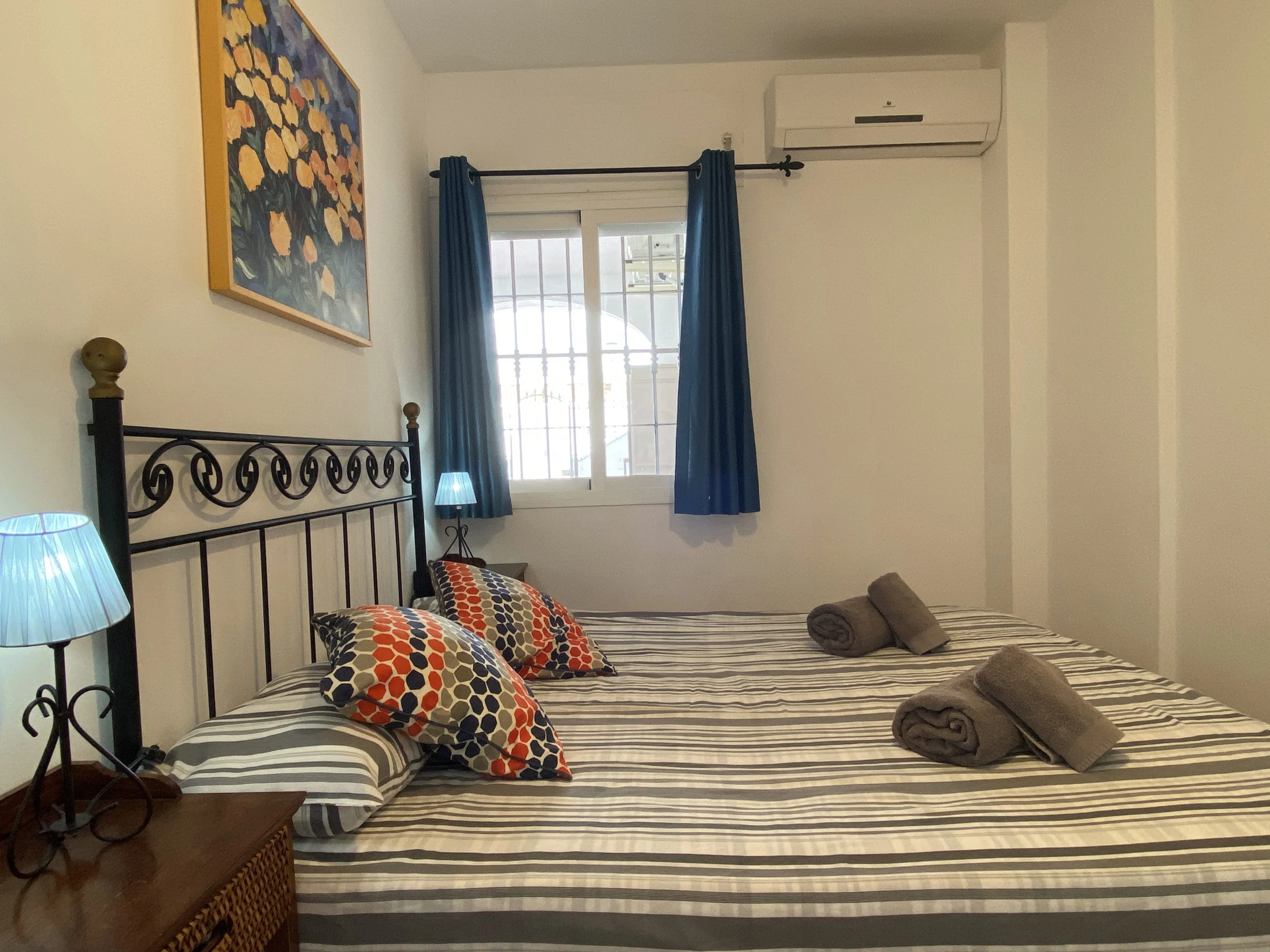 Ausstattung: Klimaanlage, WLAN, TV, Bügeleisen und voll ausgestattete Küche mit Cerankochfeld, Mikrowelle, Geschirrspüler, Waschmaschine, Backofen, Kaffeemaschine, Toaster und Wasserkocher.