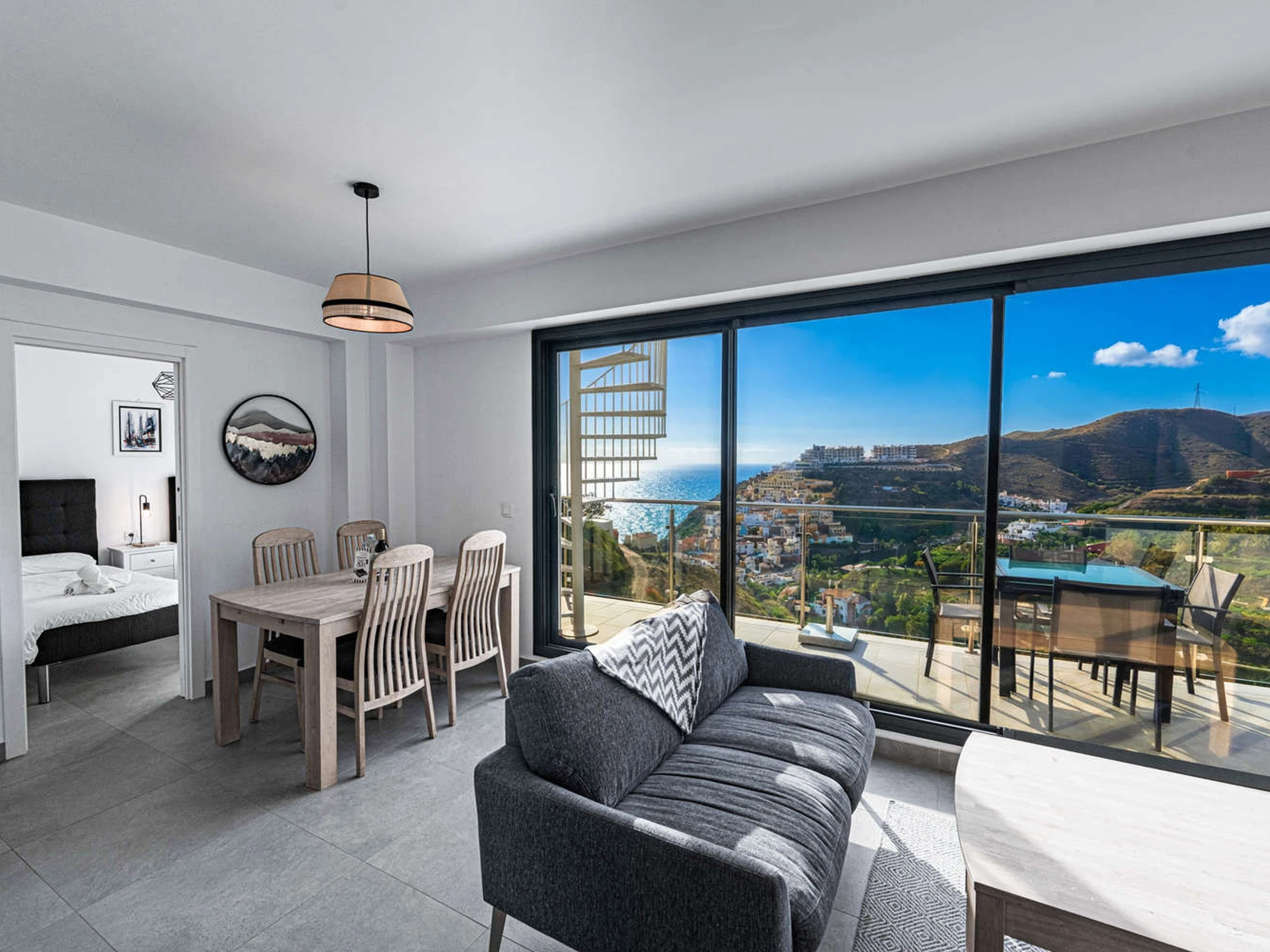 Sehr modernes Penthouse mit spektakulärem Meerblick und einer großen Terrasse mit Loungebereich und Außendusche. Perfekt mit den nahe gelegenen Städten Torrox Costa und Nerja verbunden, im Herzen der Ostküste von Malaga im neuen Komplex Balcón del Mar.