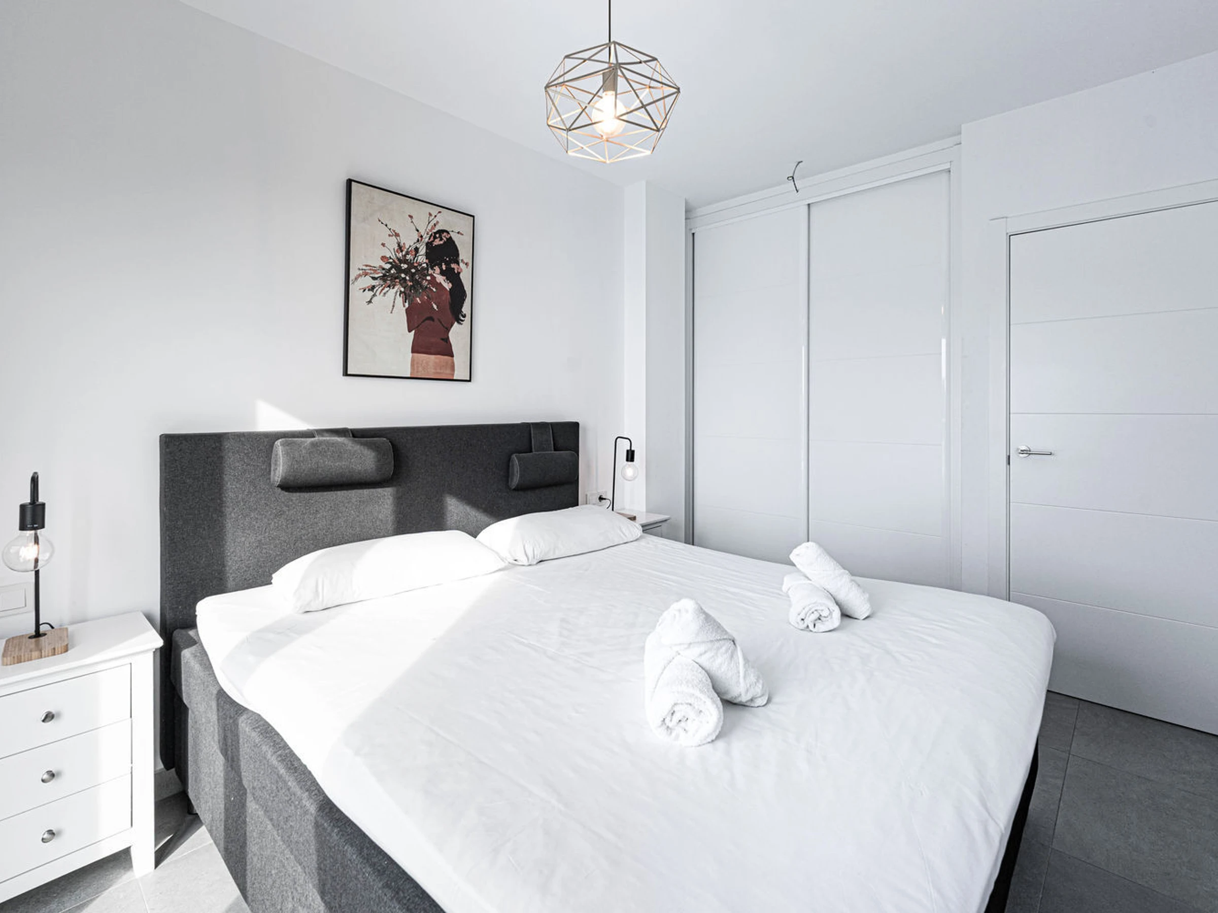 Es verfügt über zwei Schlafzimmer und 1 Badezimmer mit Dusche, eine voll ausgestattete Küche mit hochmodernen Geräten. Das Juwel dieser Wohnung ist die Ruhe, die private Terrasse und die Aussicht. Darüber hinaus verfügt es über einen luxuriösen Gemeinschaftspool und einen Fitnessraum.