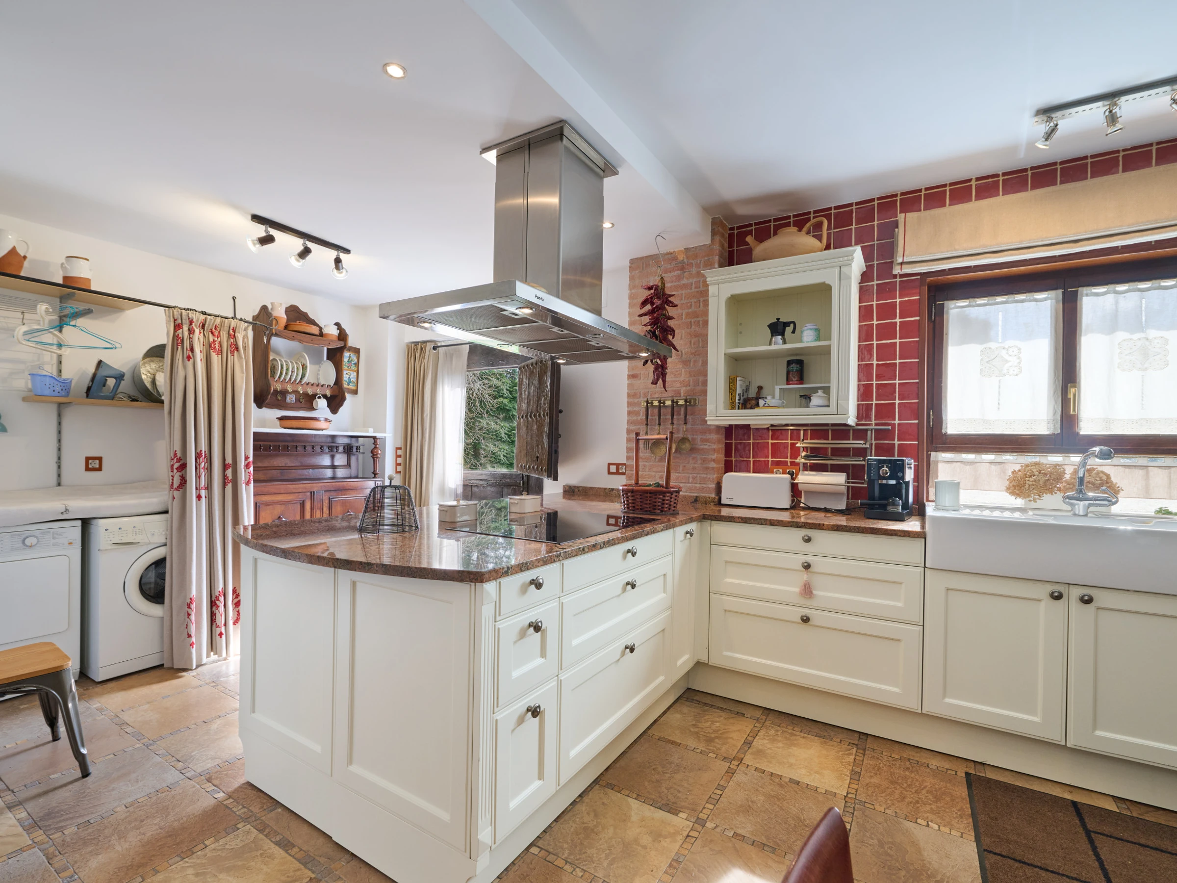 Dieses separate küche, mit induktions-kochfeld, ist ausgestattet in kühlschrank, mikrowelle, backofen, gefrierschrank, spülmaschine, geschirr/besteck, kochutensilien, kaffeemaschine, toaster, wasserkocher und saftpresse.