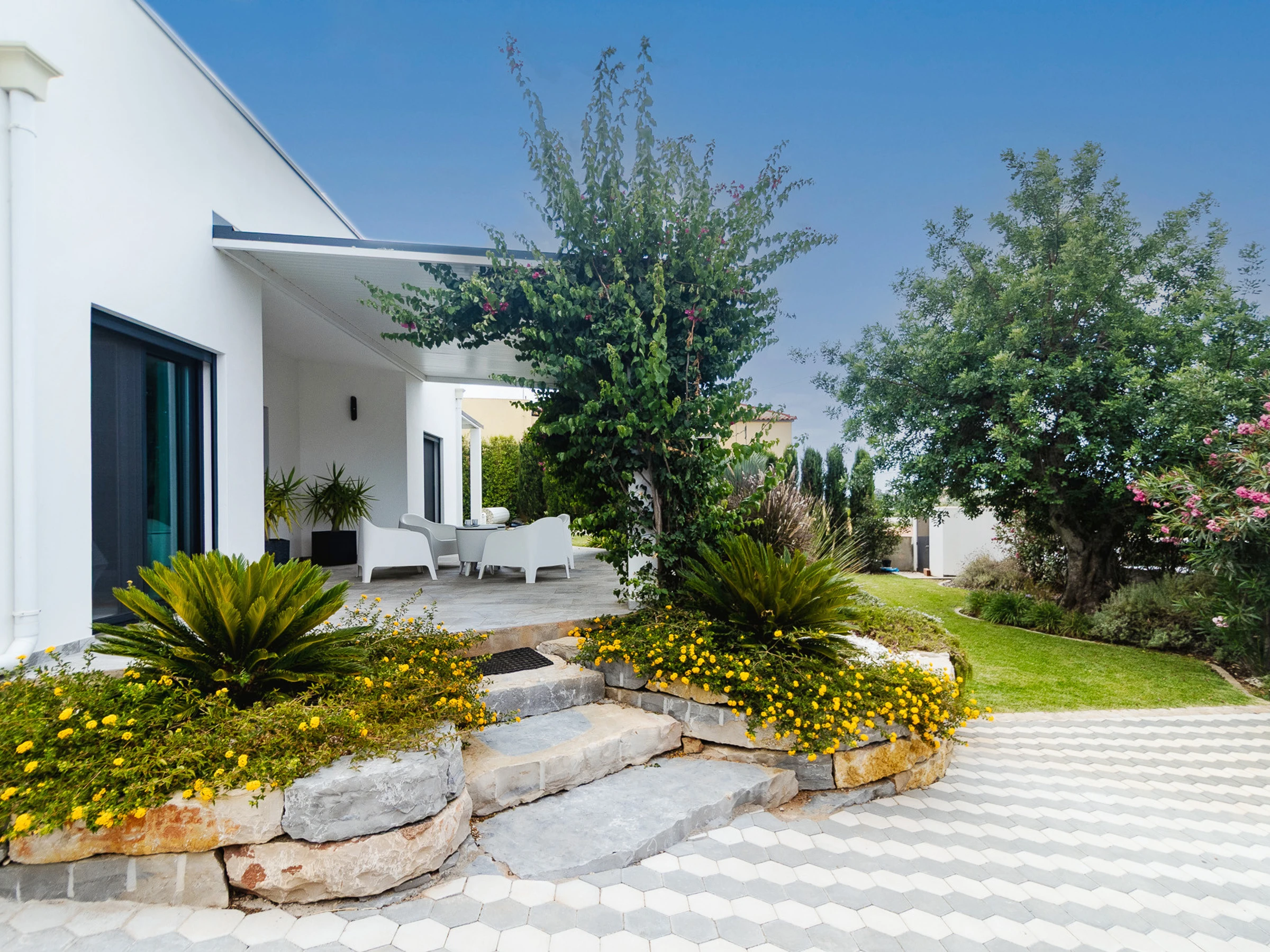 Unterkunft Unterkunft hat 125 m² befindet sichgeschmackvoll ausgestattet und vor kurzem fertiggestellte, mit Blick auf den Garten und den Pool.