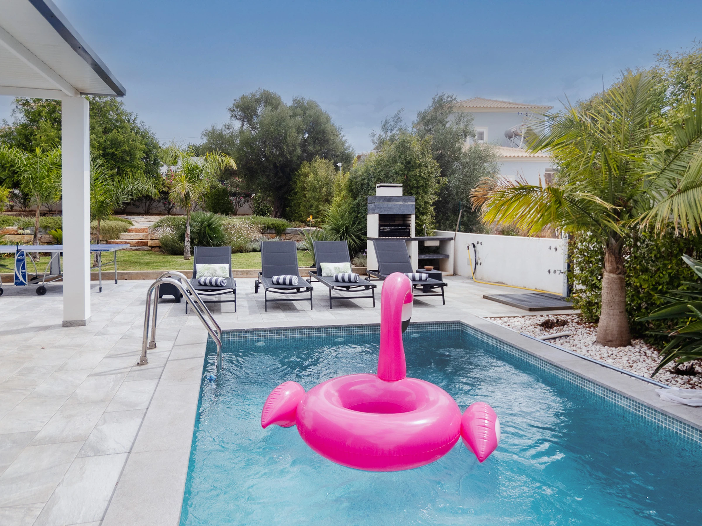 Die Unterkunft verfügt über garten, gartenmöbel, umzäuntes grundstück, terrasse, waschmaschine, trockner, grill, bügeleisen/-brett, internet (WLAN), haartrockner, klimaanlage, swimming-pool privater pool, parkplatz im freien in auf dem grundstück, moskitonetze in gesamten unterkunft, 4 Fernsehgeräte, sat-tv (Sprachen: Spanisch, Englisch, Französisch).