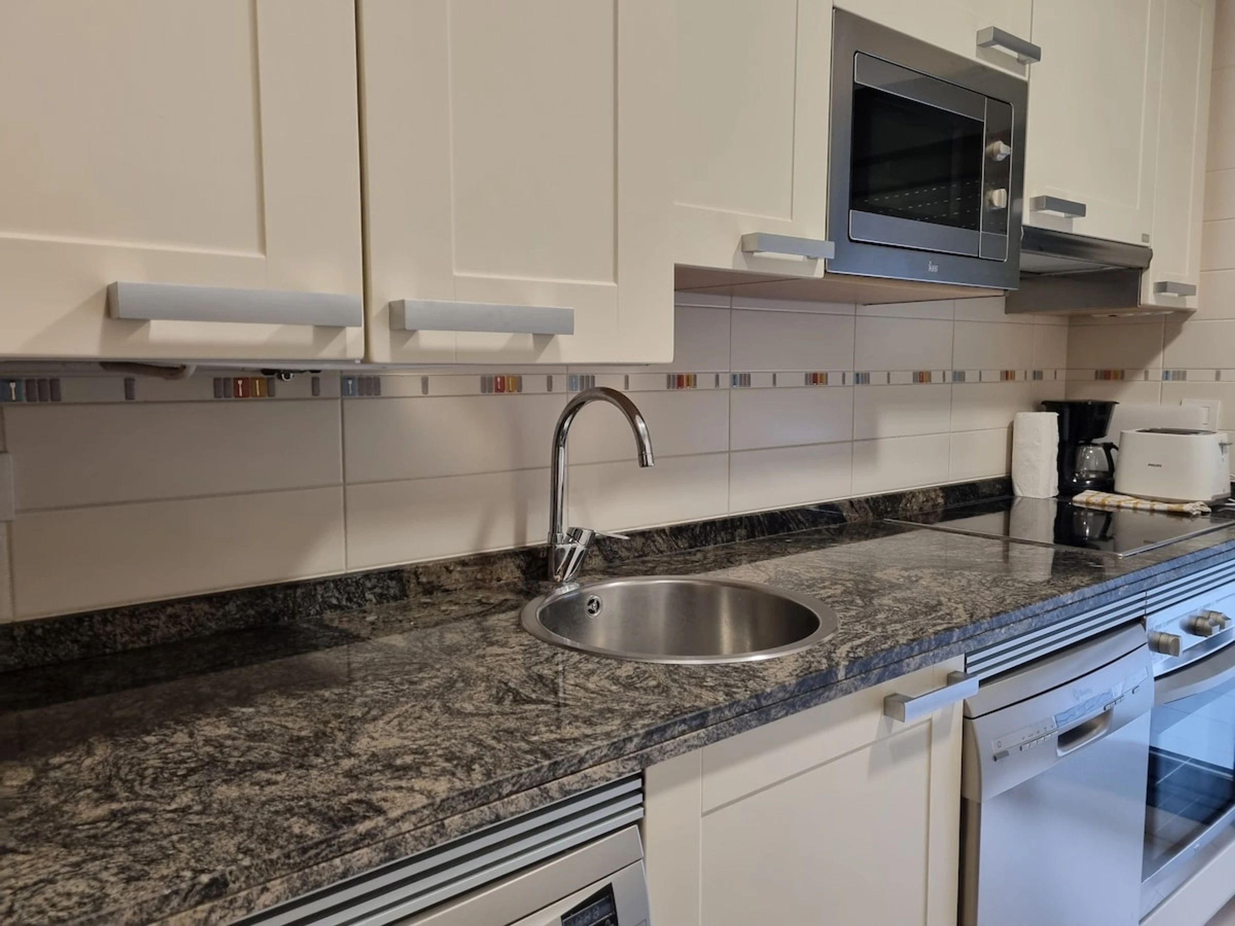 Dieses küche, ist ausgestattet in kühlschrank, mikrowelle, backofen, gefrierschrank, spülmaschine, geschirr/besteck, kochutensilien und kaffeemaschine.