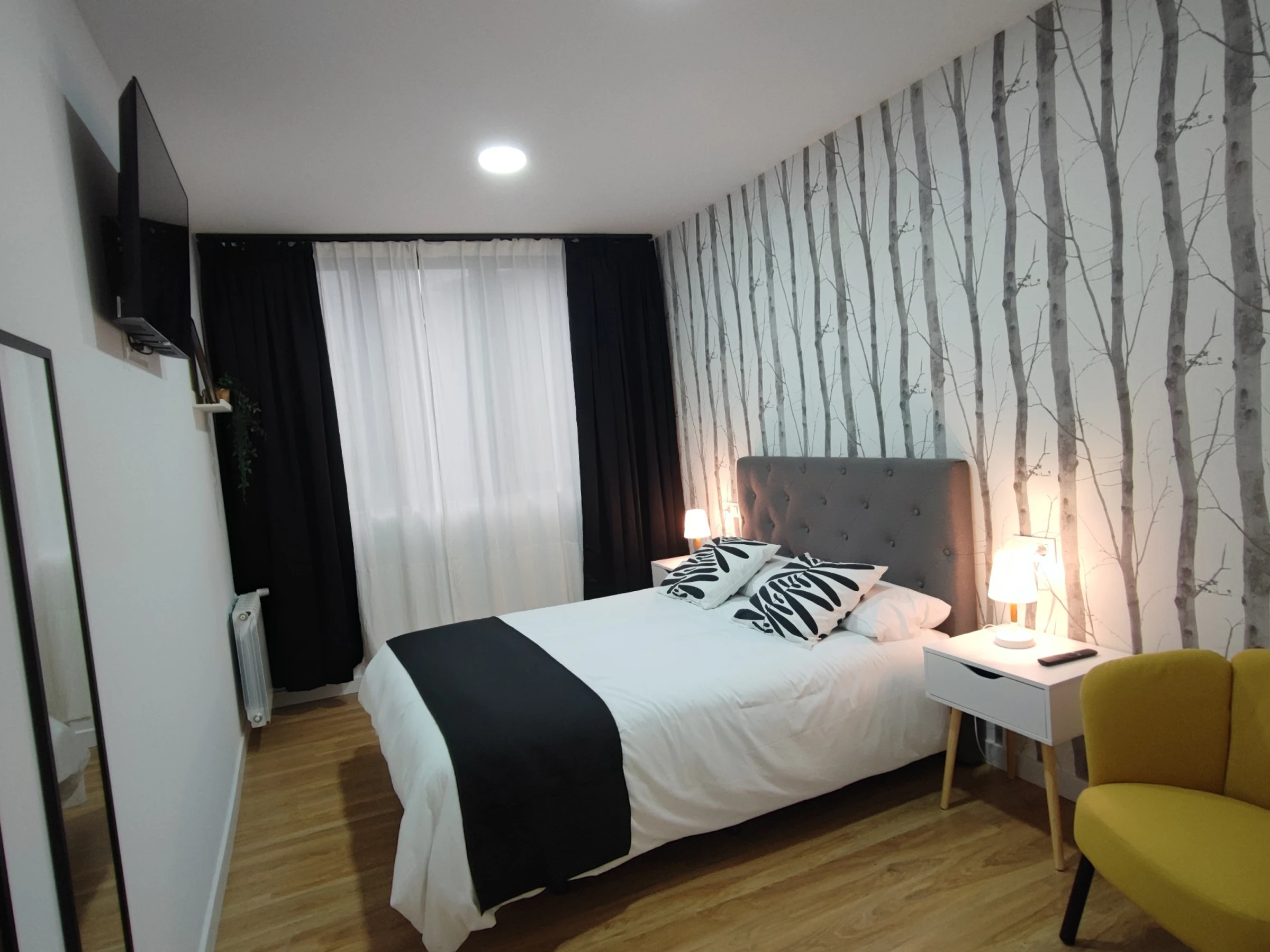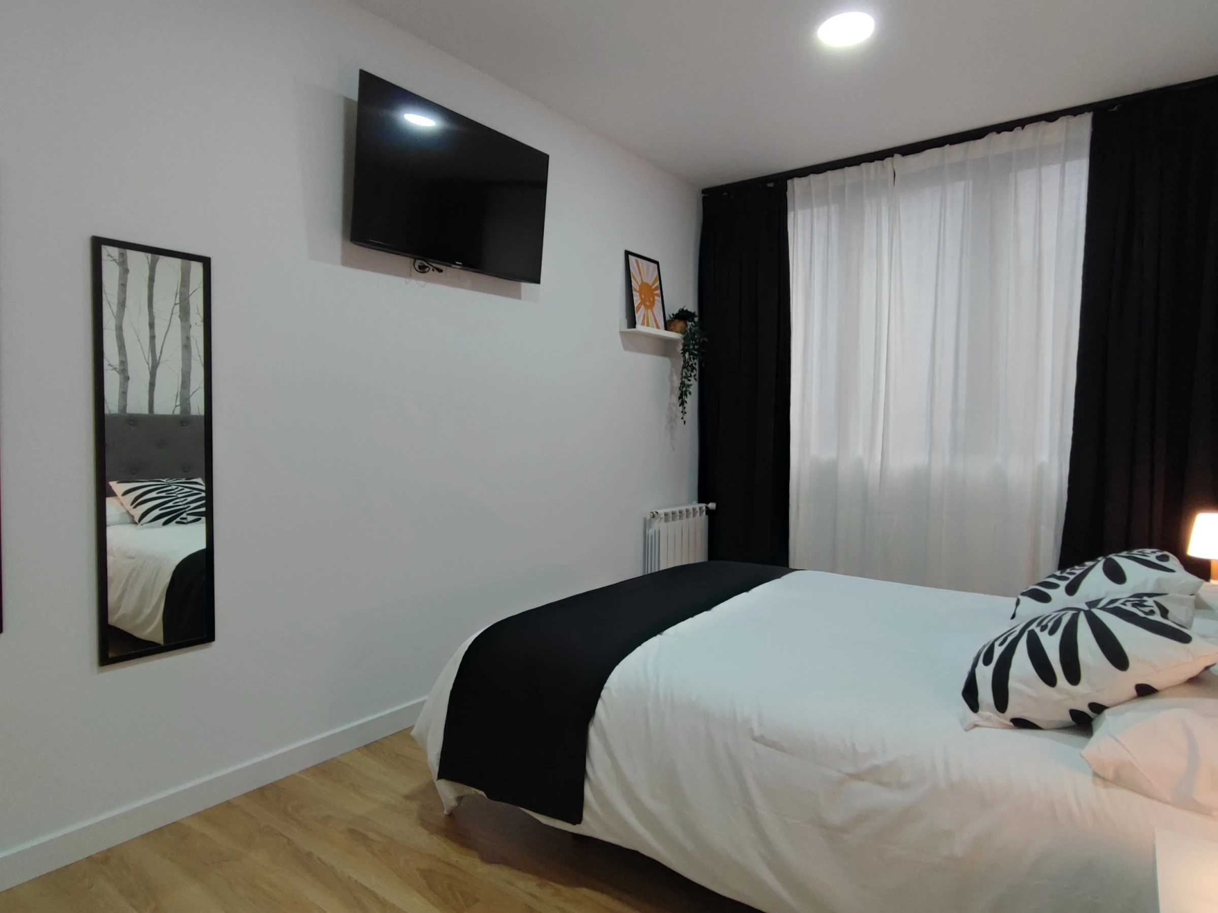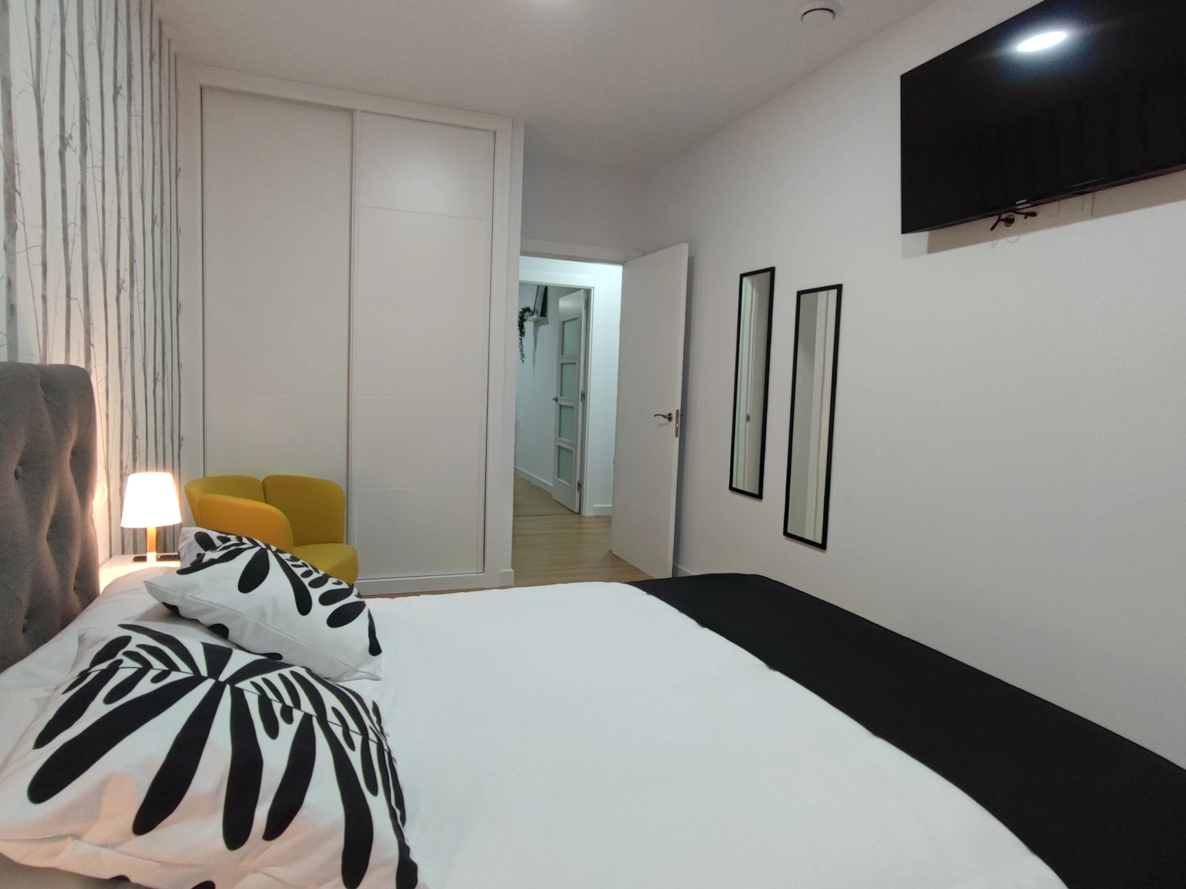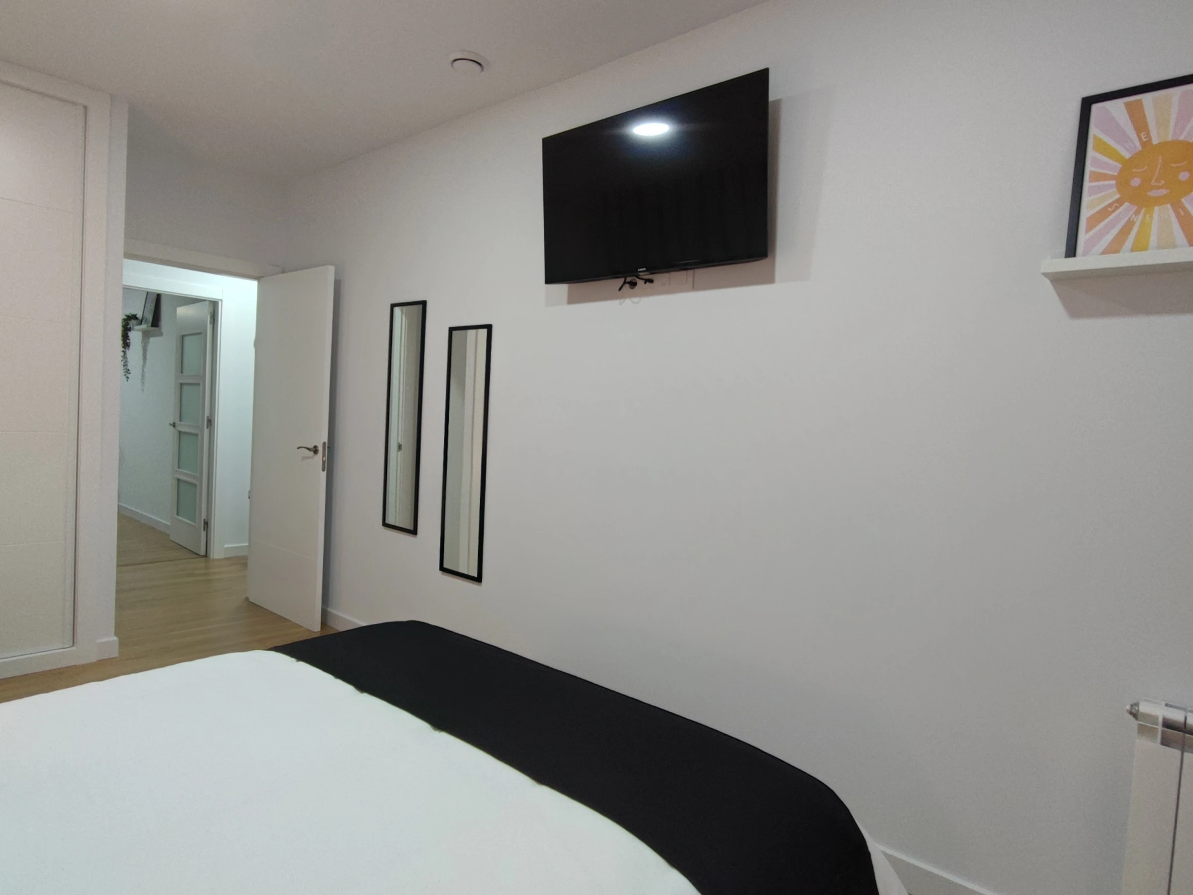 Amplia habitación con armario empotrado, cama de 1,50 y TV de 43".