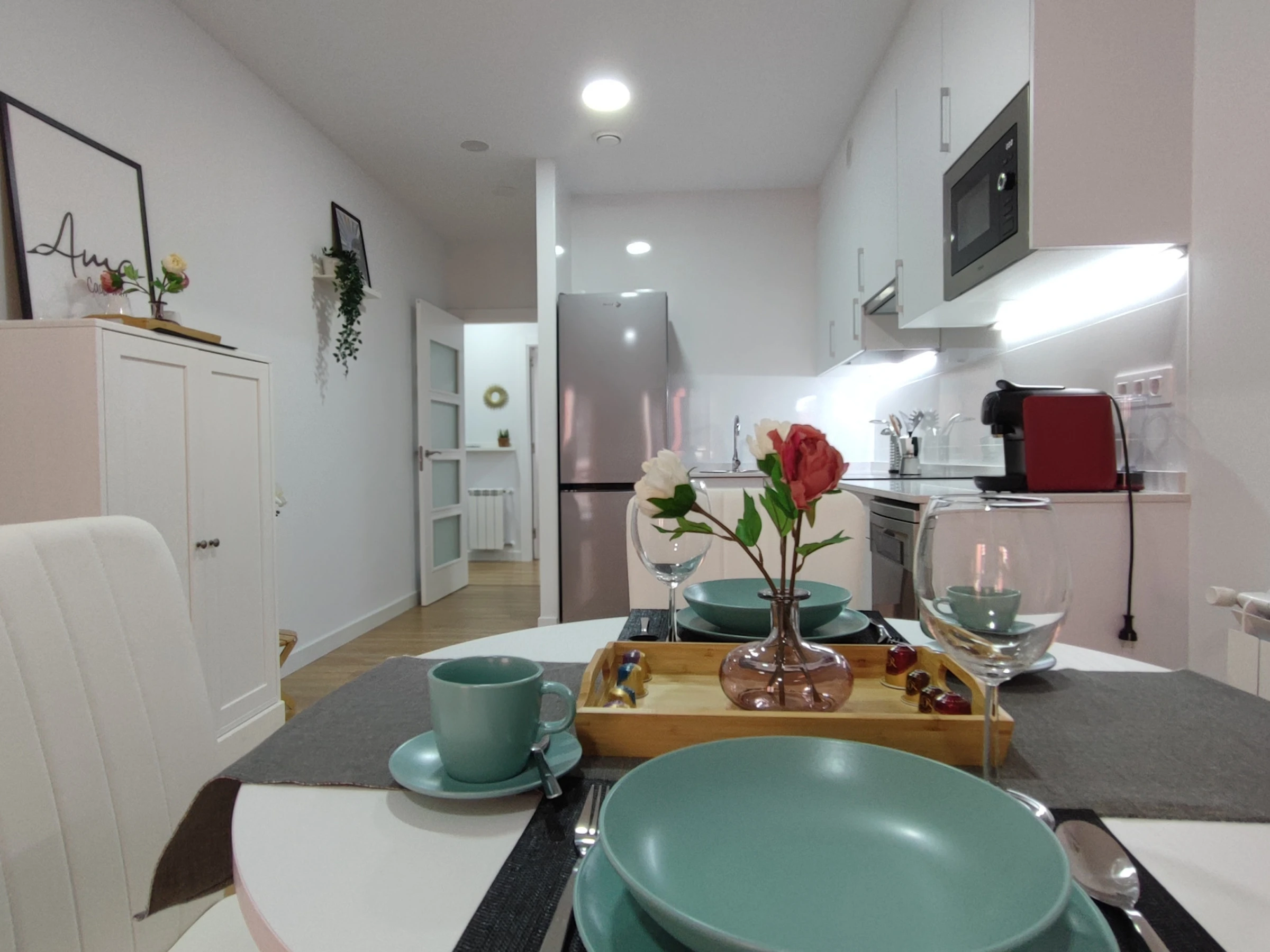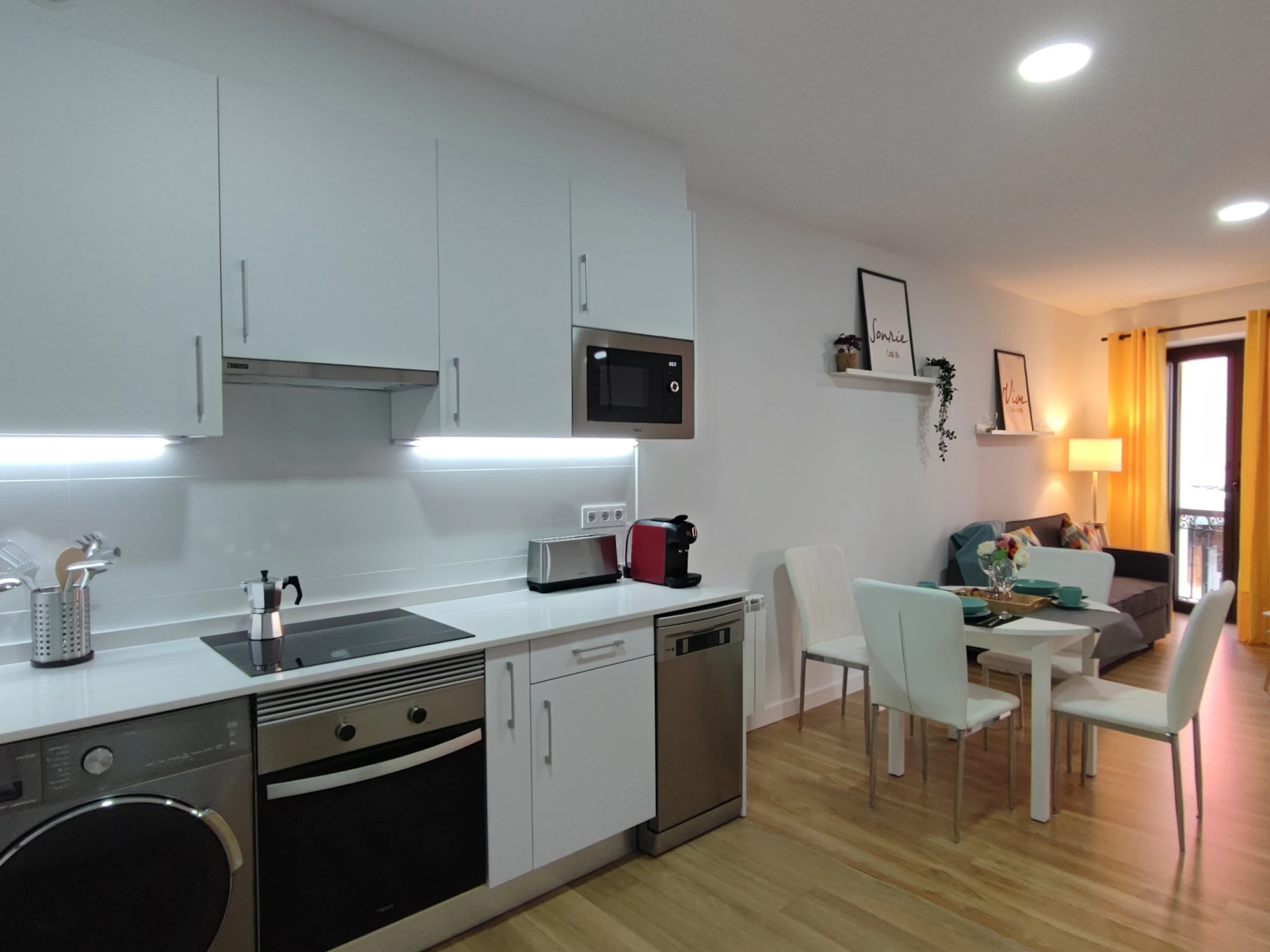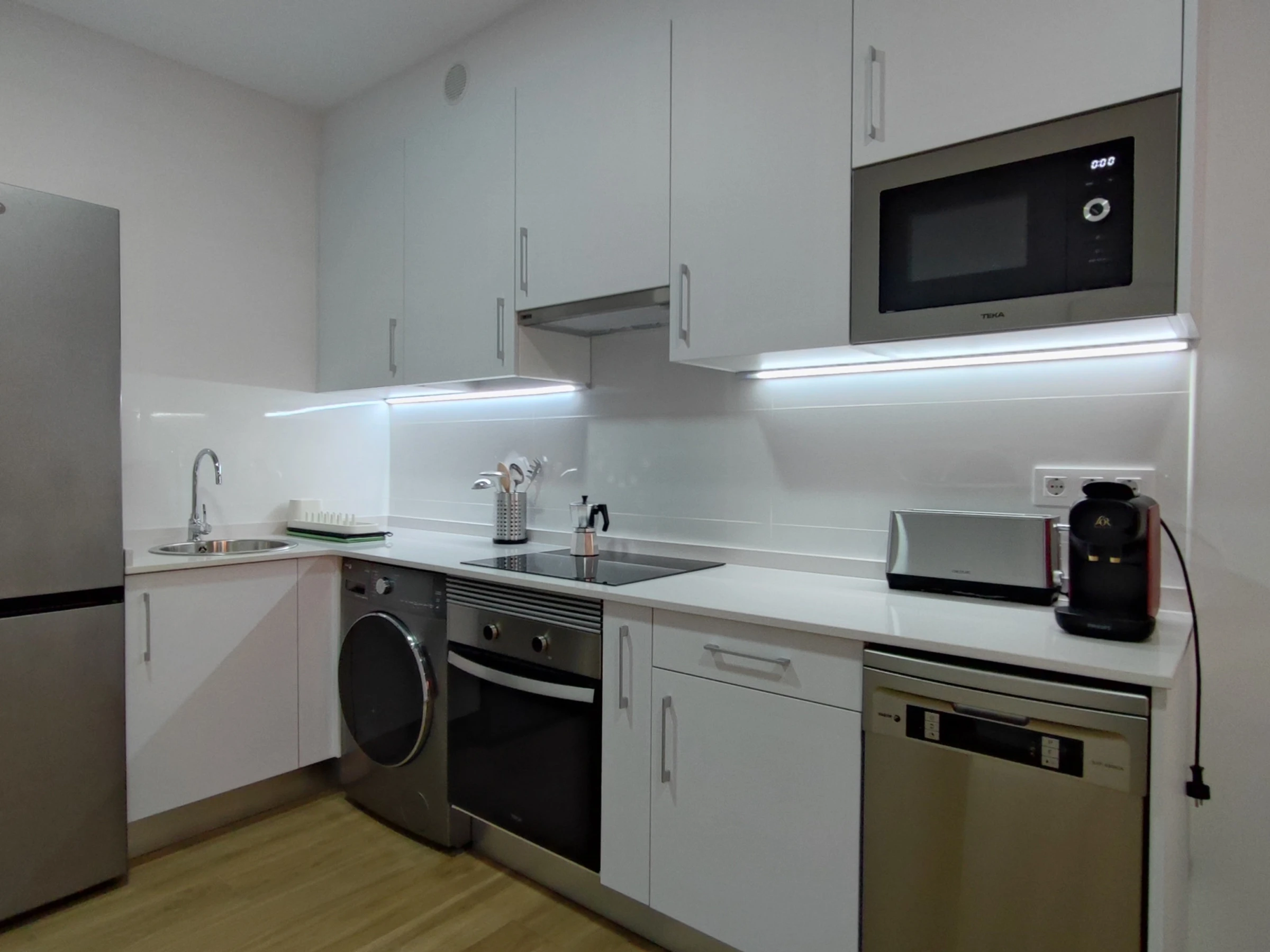 Dispone de todos los electrodomésticos, horno, vitro, campana, lavadora, lavavajillas, nevera combi, cafeteras (italiana y de cápsulas), tostador, exprimidor, hervidor, batidora y una completa gama de menaje.