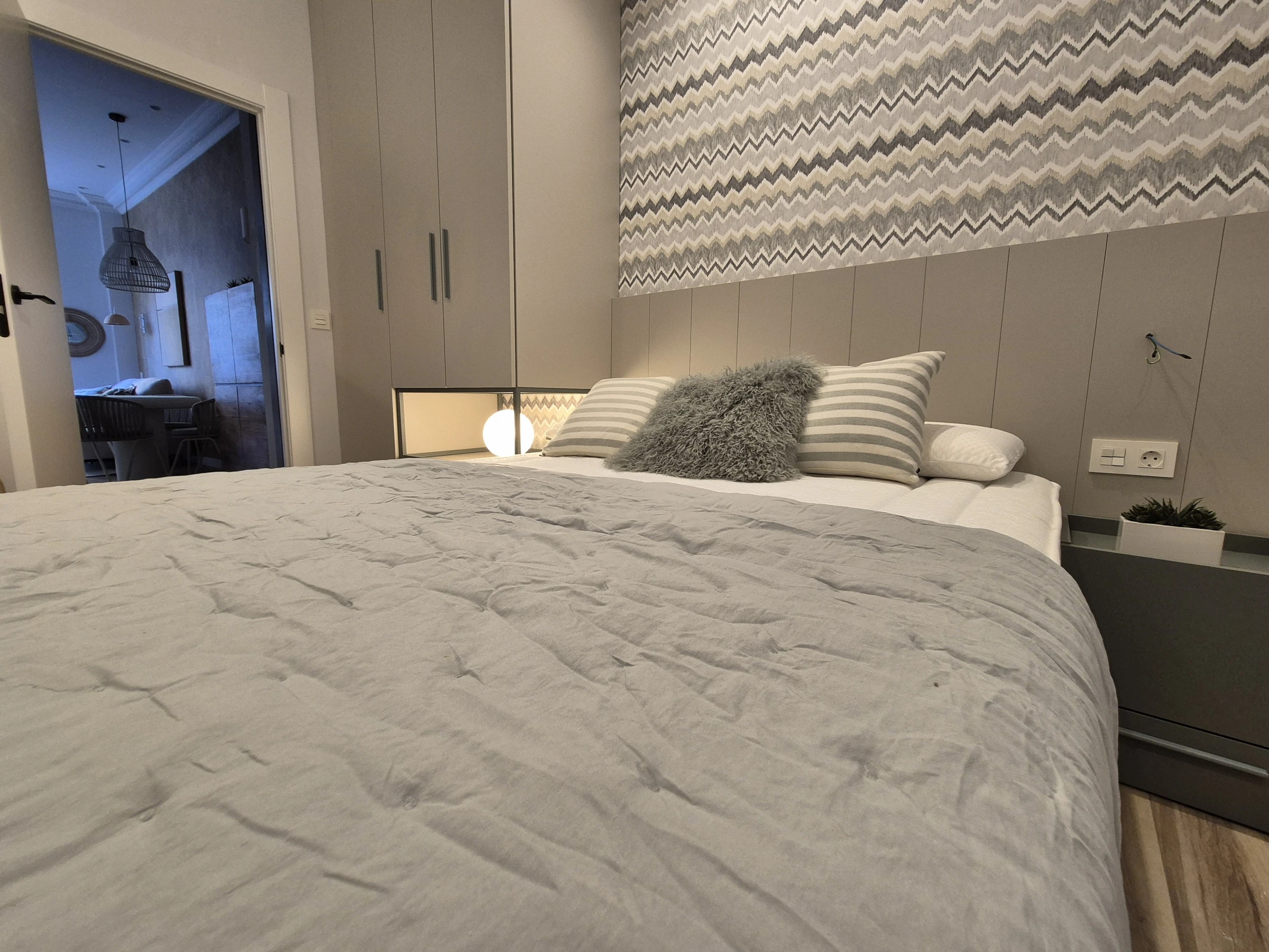 verbindet Komfort und Stil und ist somit perfekt für Paare, Geschäfts- oder Urlaubsreisen. Es verfügt über 1 großes Schlafzimmer, ein angenehmes Wohnzimmer, ideal zum Entspannen, eine voll ausgestattete Küche mit allem, was Sie für Ihre Bedürfnisse benötigen, und ein modernes und avantgardistisches Badezimmer mit hochwertigen Oberflächen.