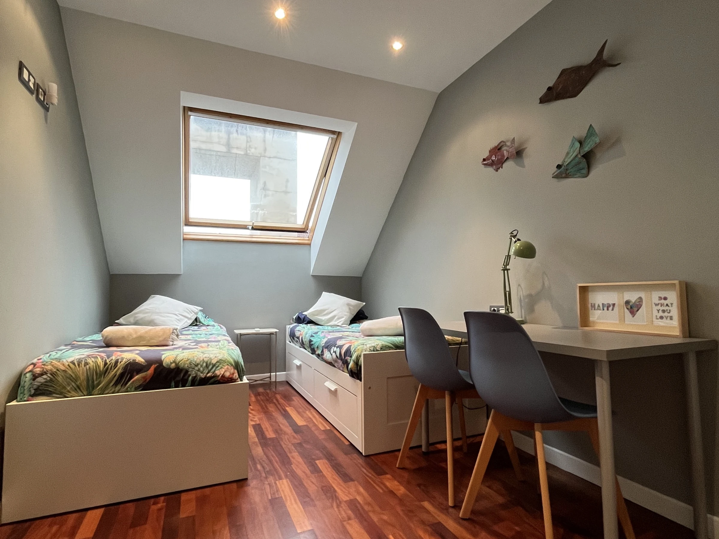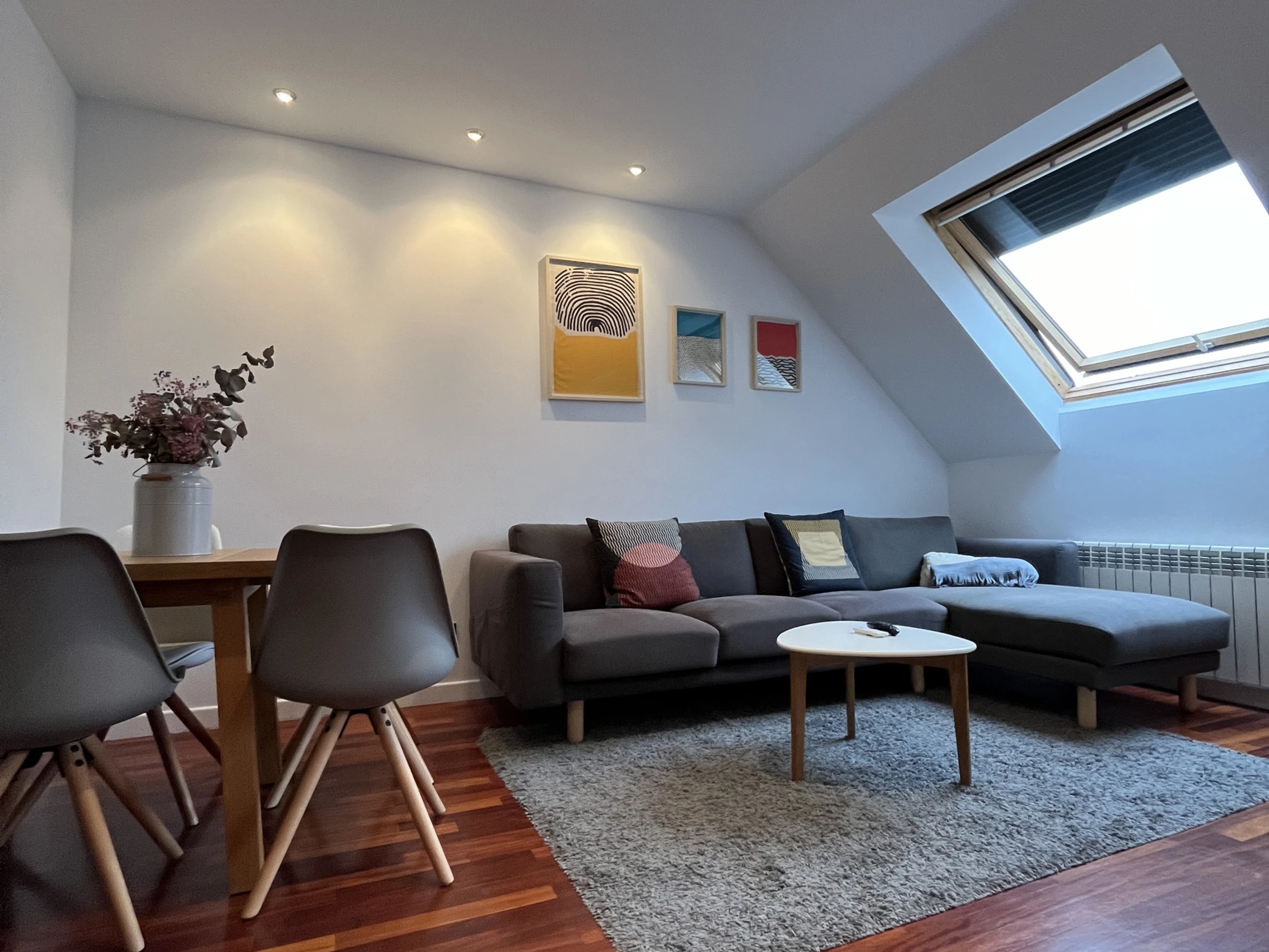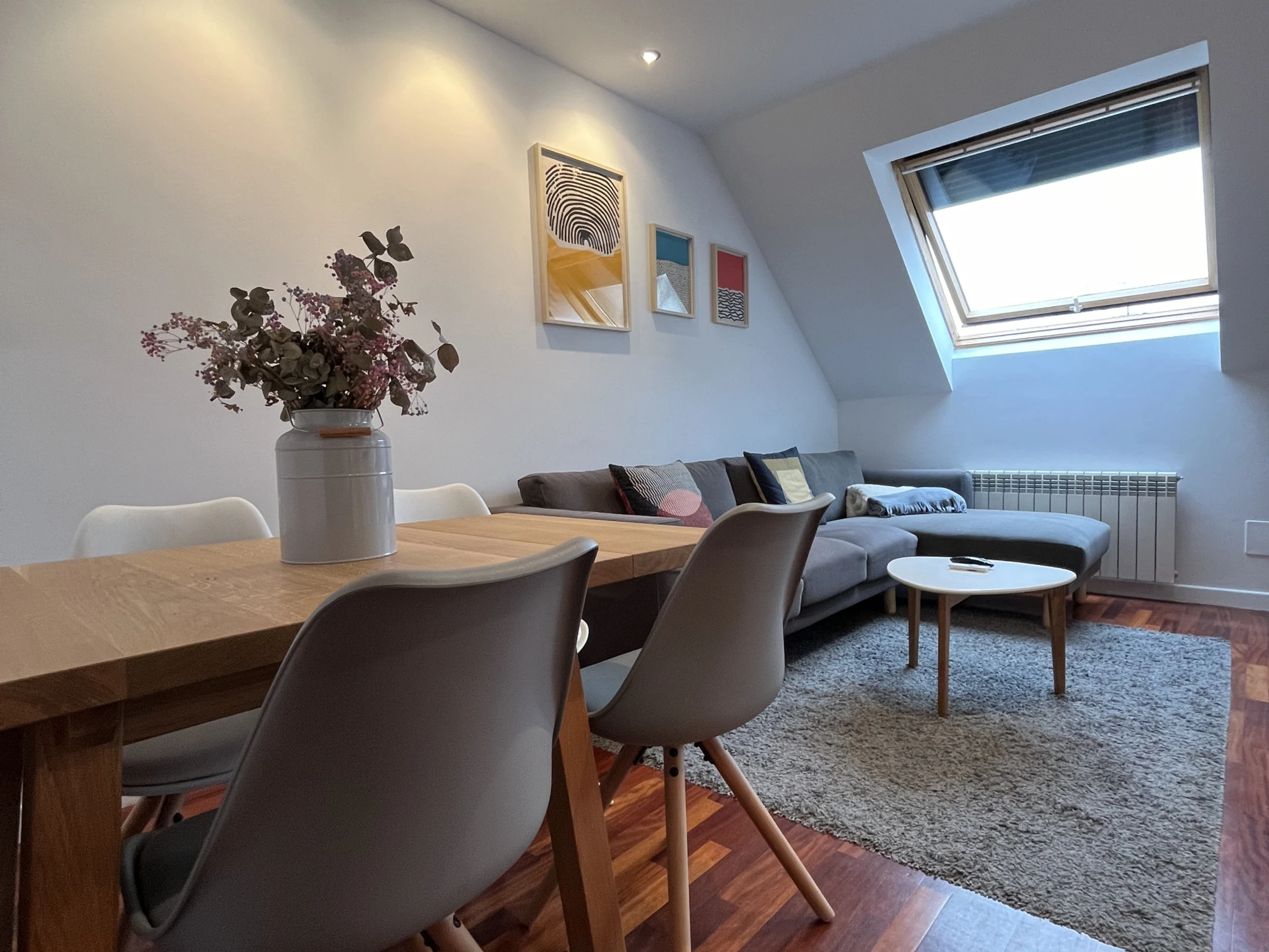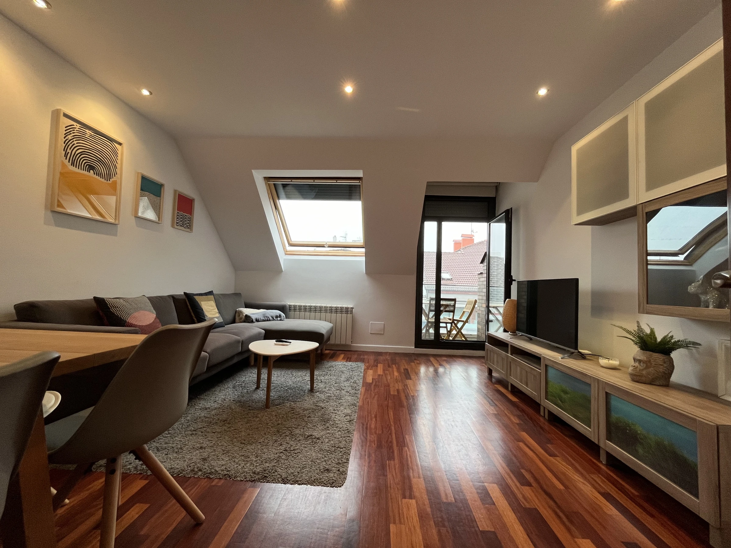 Al entrar en el apartamento, te recibirán espacios luminosos y bien decorados que te harán sentir como en casa. La sala de estar es el lugar perfecto para relajarte después de un día explorando la ciudad, con un cómodos sofá y una televisión de pantalla plana para entretenerte. La cocina totalmente equipada te permitirá preparar tus comidas favoritas con ingredientes frescos de los mercados locales como el del Fontán.