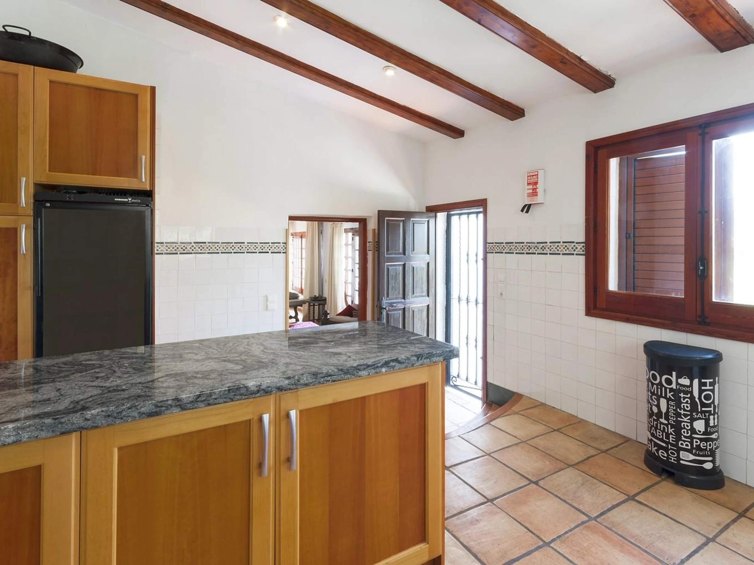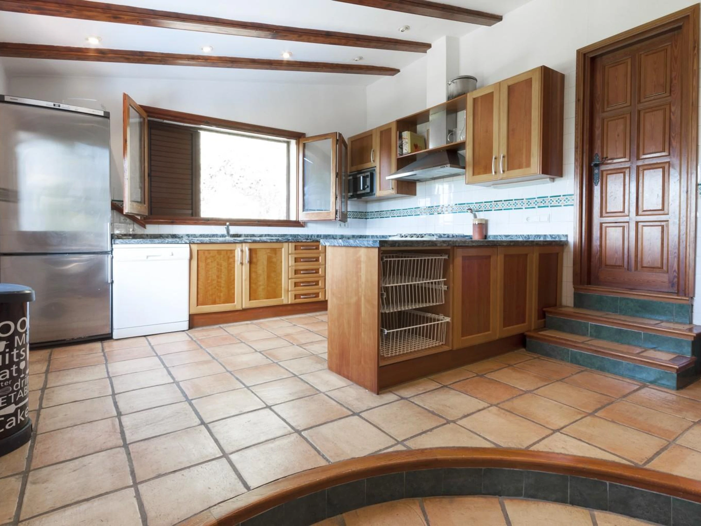 Dieses küche, ist ausgestattet in kühlschrank, mikrowelle, backofen, gefrierschrank, spülmaschine, kaffeemaschine und toaster.