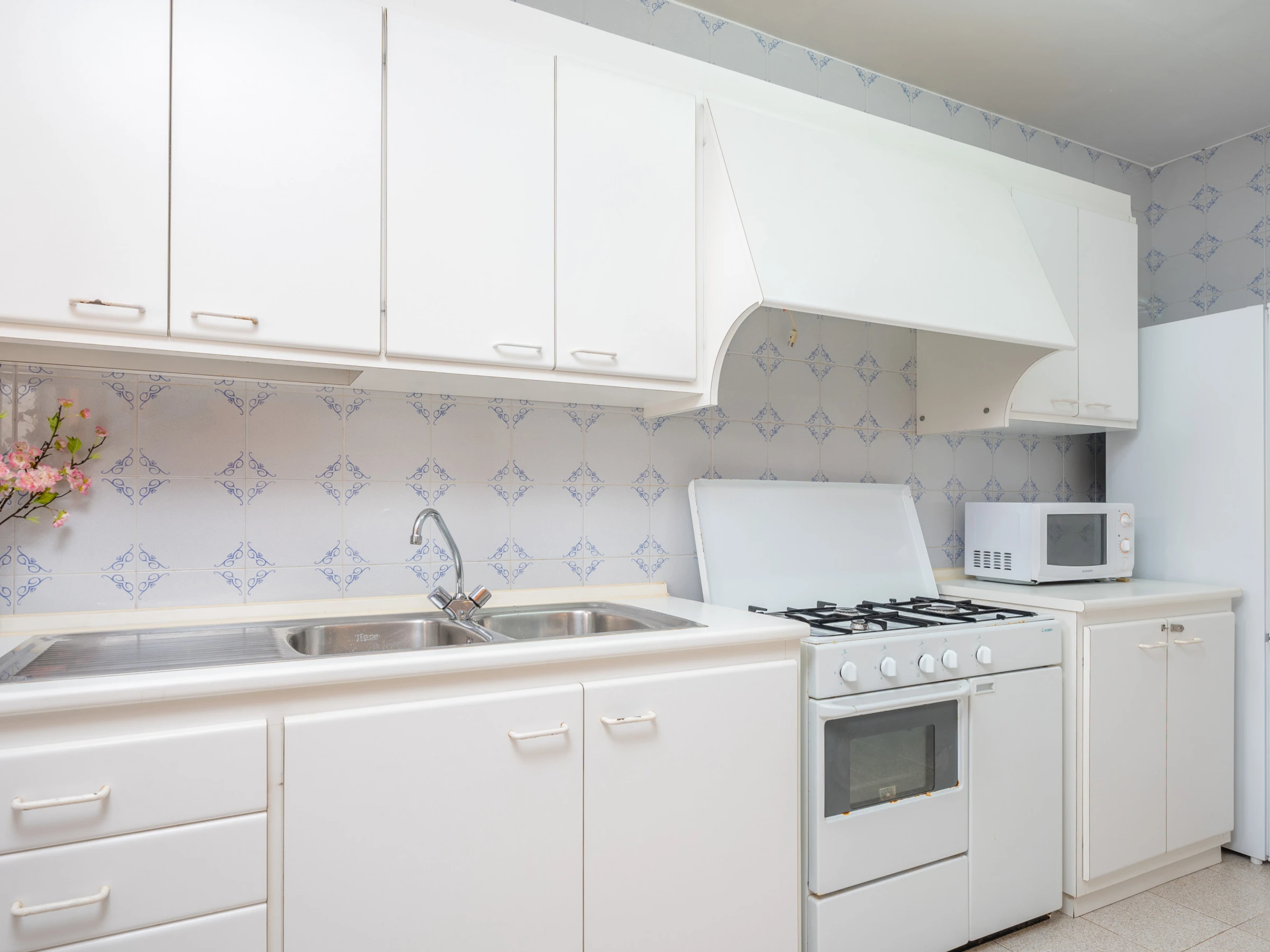 Dieses küche, ist ausgestattet in mikrowelle, gefrierschrank, kaffeemaschine und toaster.