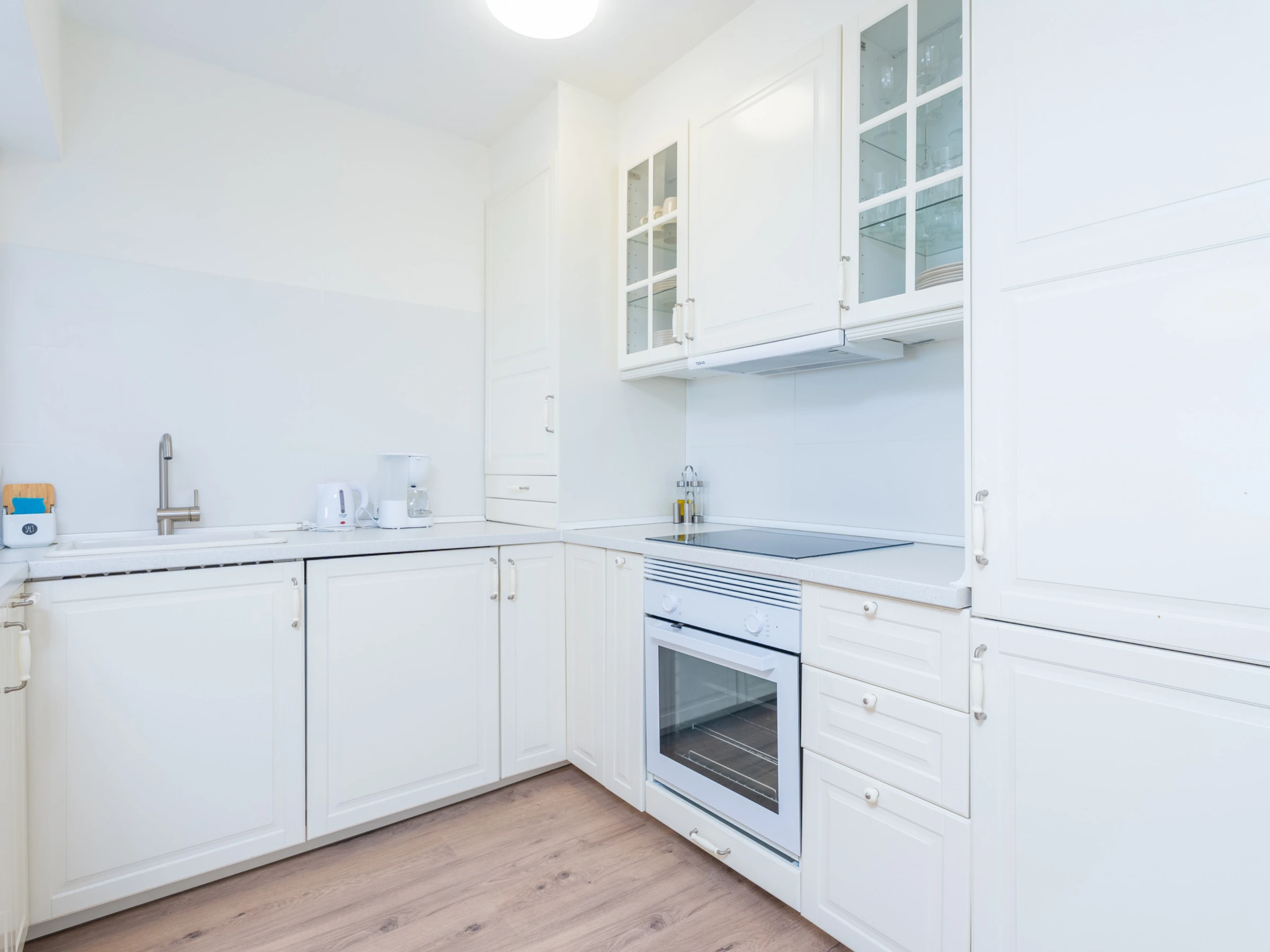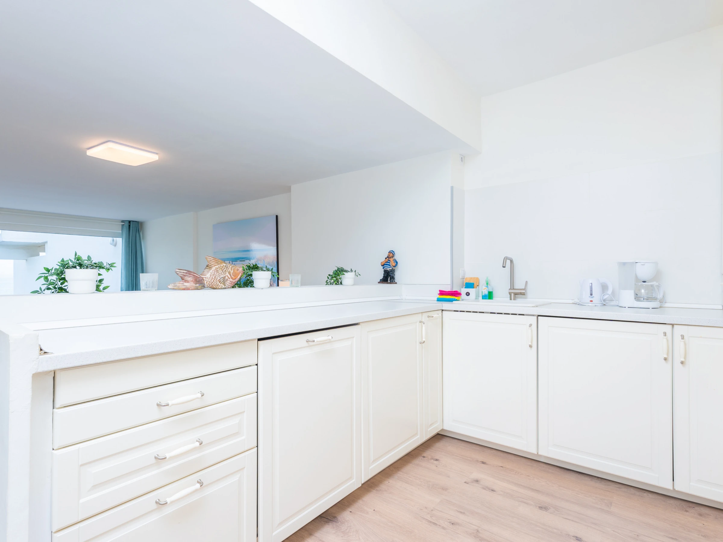 Dieses küche, ist ausgestattet in mikrowelle, gefrierschrank, spülmaschine, kaffeemaschine und toaster.