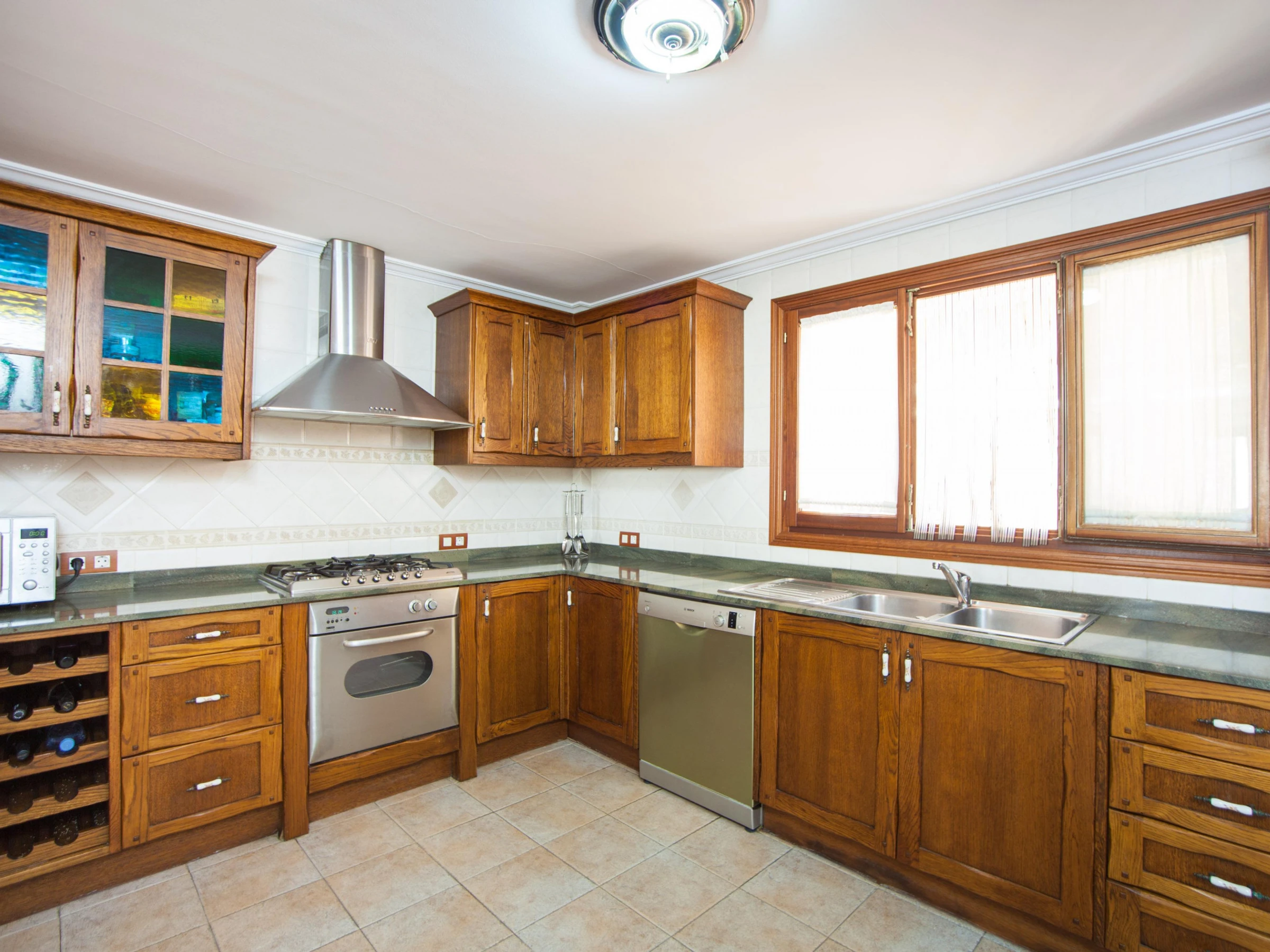 Dieses küche, ist ausgestattet in kühlschrank, mikrowelle, backofen, gefrierschrank, spülmaschine, kaffeemaschine und toaster.