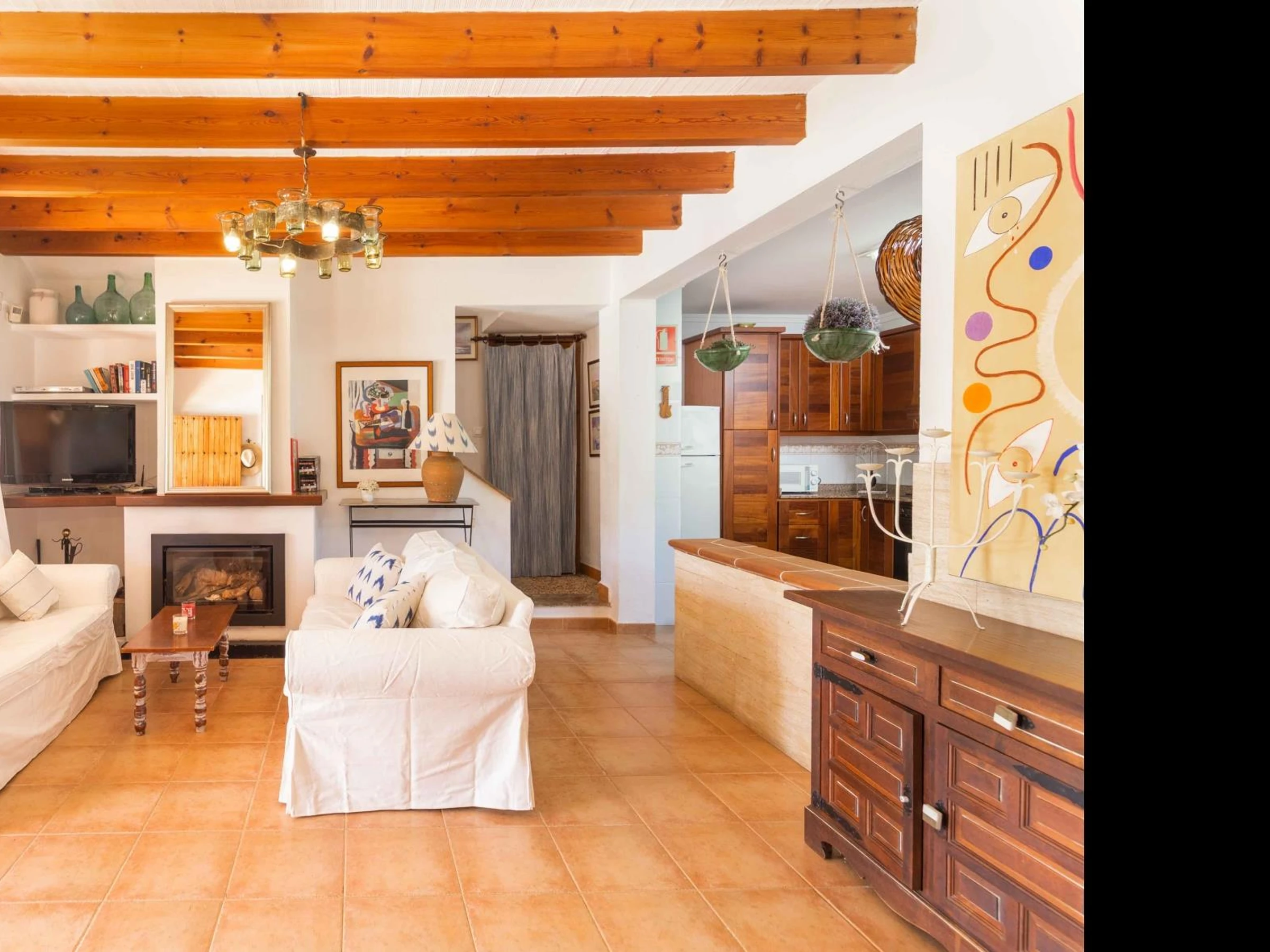 Das Wohnzimmer lädt nach einem Tag am Strand oder einem Ausflug zum Entspannen ein, sei es beim Lesen, Fernsehen oder einfach nur, um die Ruhe des Hauses zu genießen. Die separate, gut ausgestattete Küche bietet einen Backofen, einen Gasherd, einen Toaster, eine Kaffeemaschine, Besteck, Kochutensilien, einen Kühlschrank mit Gefrierfach und alles, was Sie für die Zubereitung von Mahlzeiten benötigen. Außerdem stehen Ihnen eine Waschmaschine, Bügeleisen und Bügelbrett, WLAN, ein Hochstuhl und ein Kinderbett zur Verfügung.