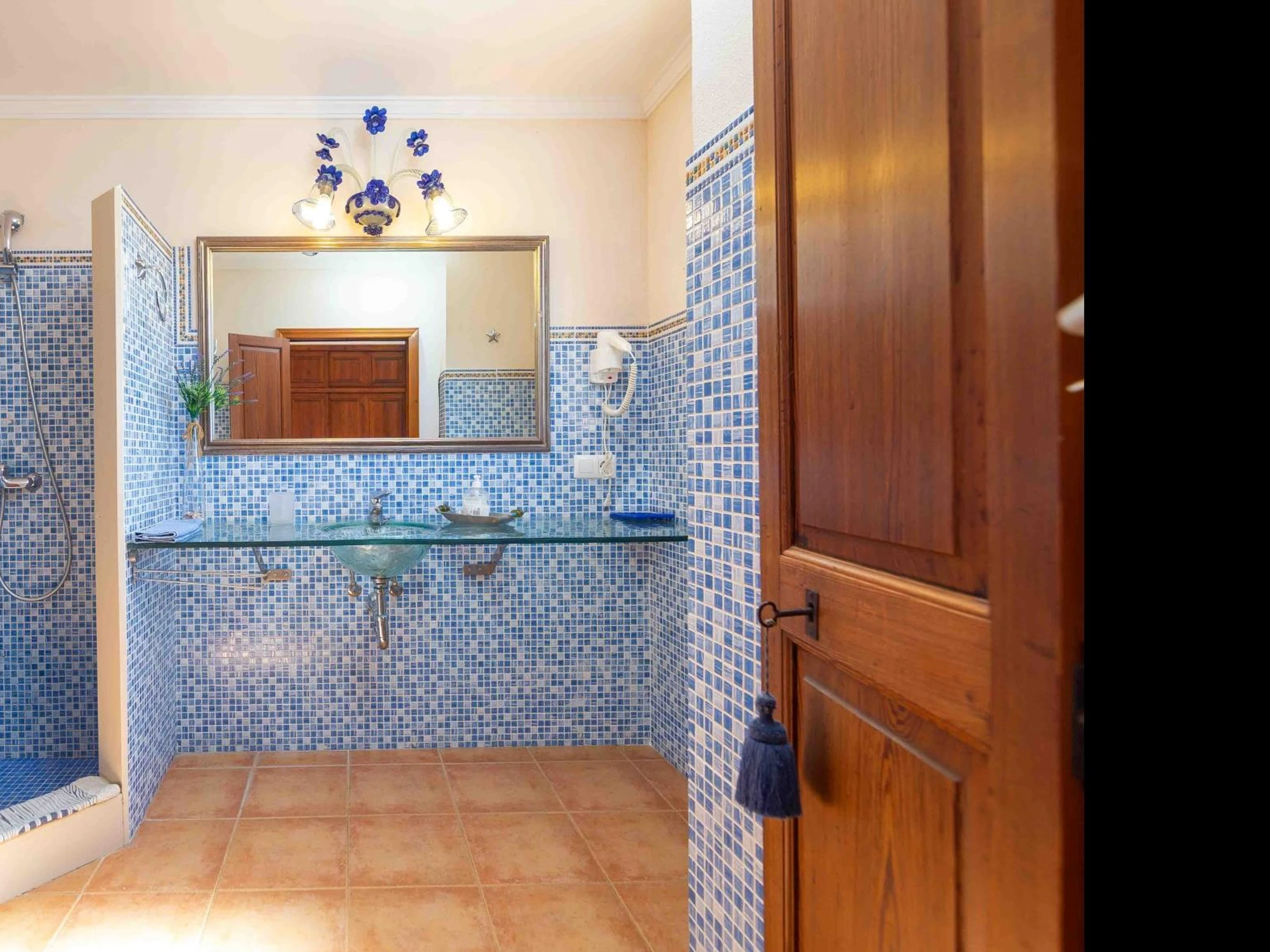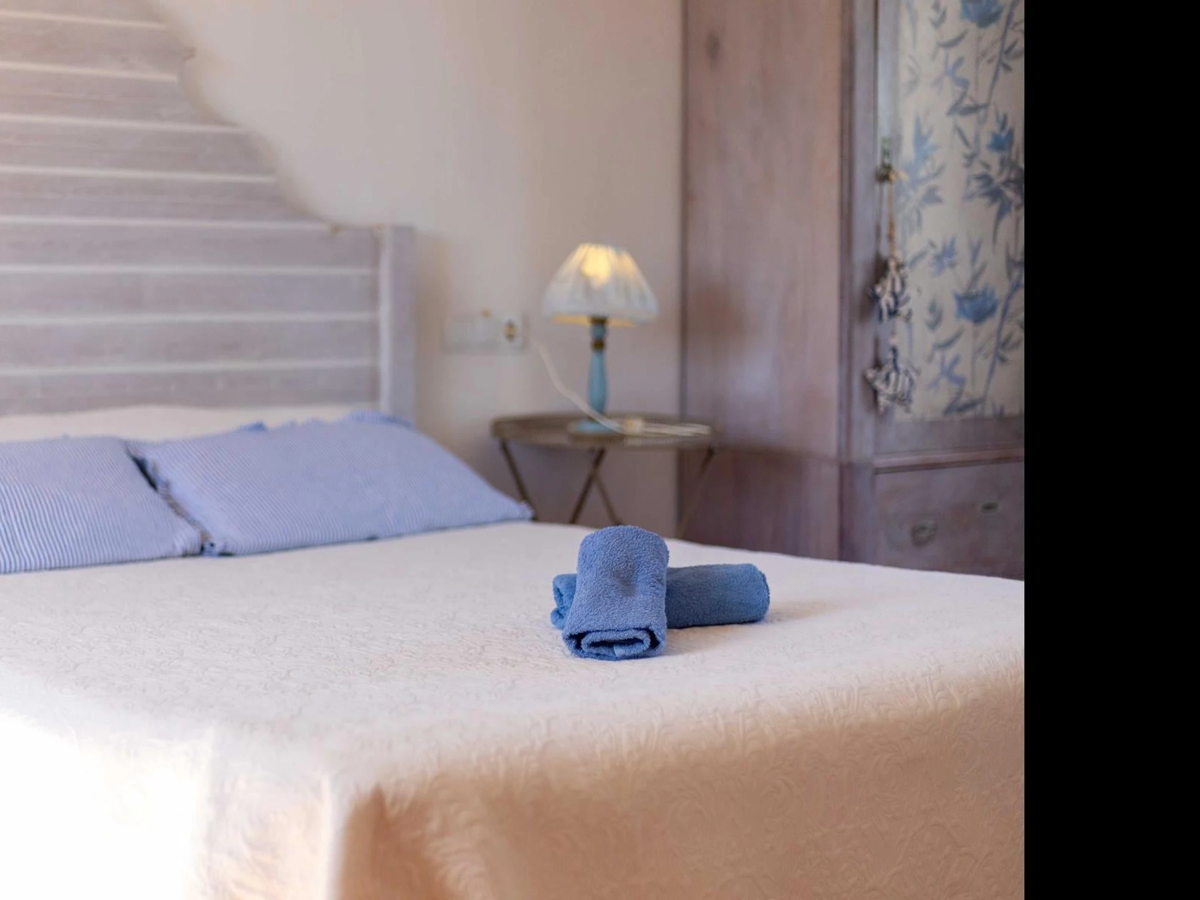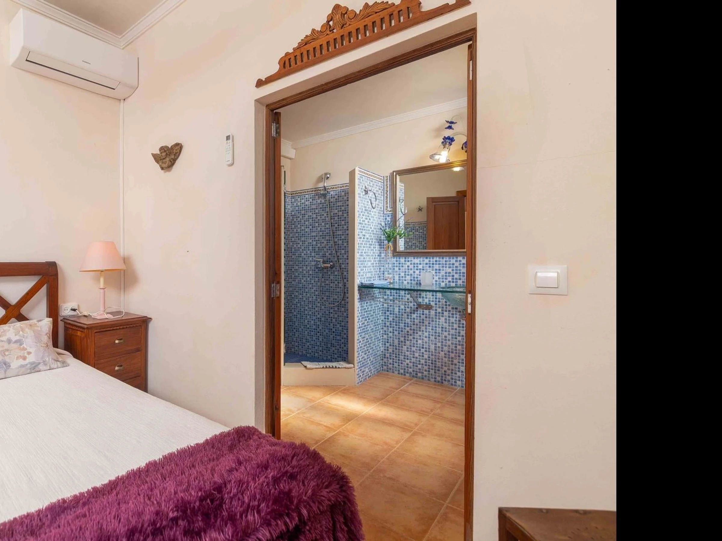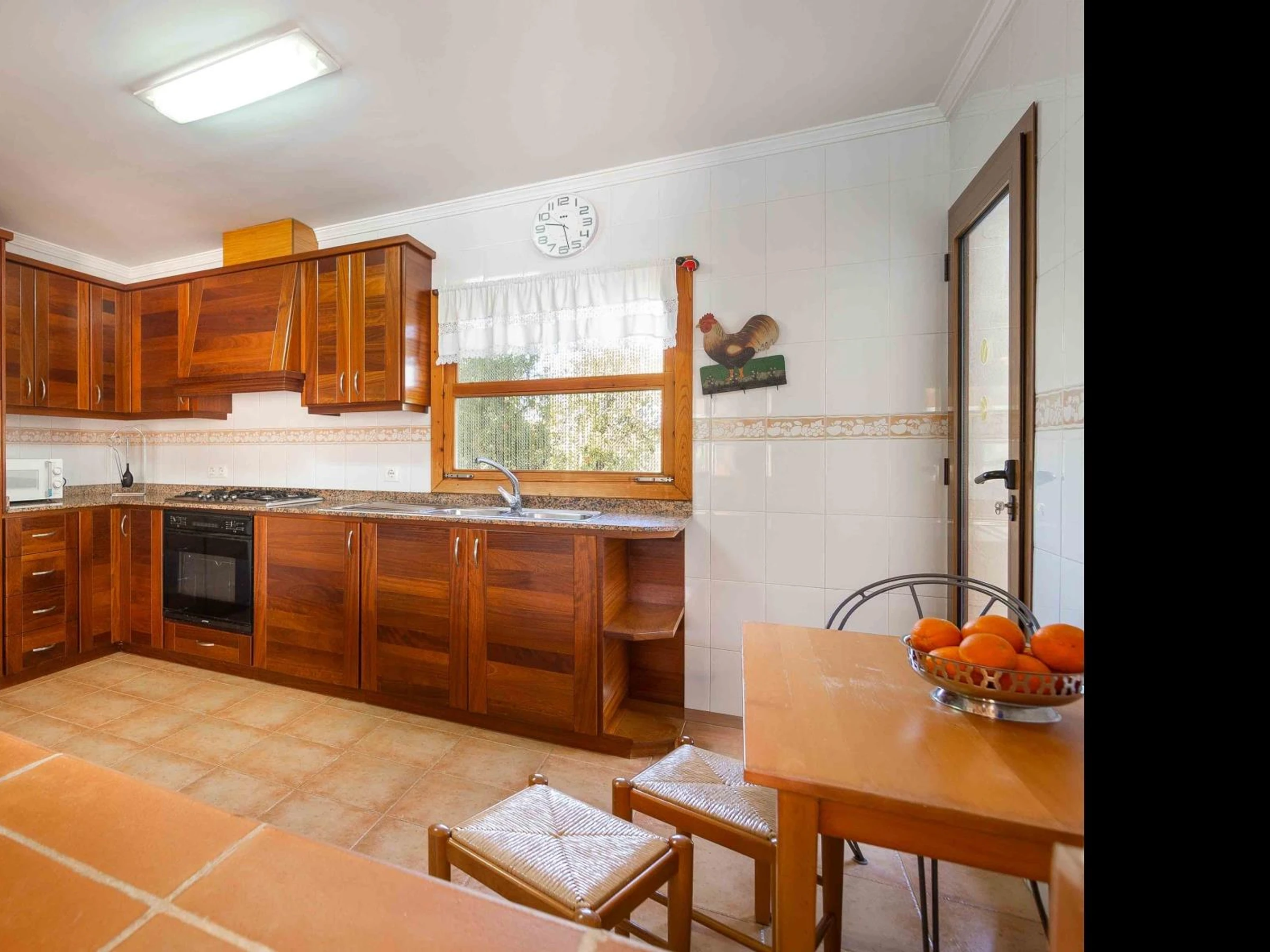 Im Inneren des Hauses befinden sich drei Doppelzimmer mit Klimaanlage, die warm und komfortabel eingerichtet sind. Ein Zimmer verfügt über zwei Einzelbetten, die anderen beiden über Doppelbetten. Insgesamt bietet das Haus vier Badezimmer: drei en suite im Obergeschoss und eines im Erdgeschoss. Drei Badezimmer sind mit Duschen ausgestattet, eines mit Badewanne – ideal für Gruppen oder Familien.