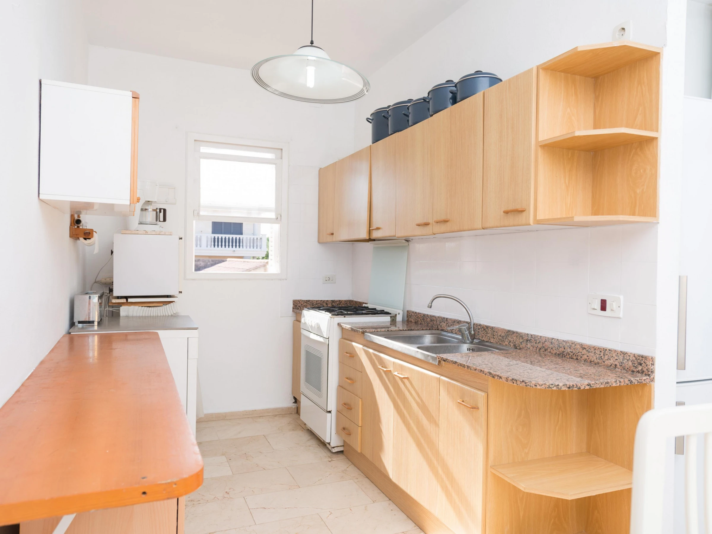 Dieses küche, ist ausgestattet in kühlschrank, mikrowelle, backofen, gefrierschrank, spülmaschine, kaffeemaschine und toaster.
