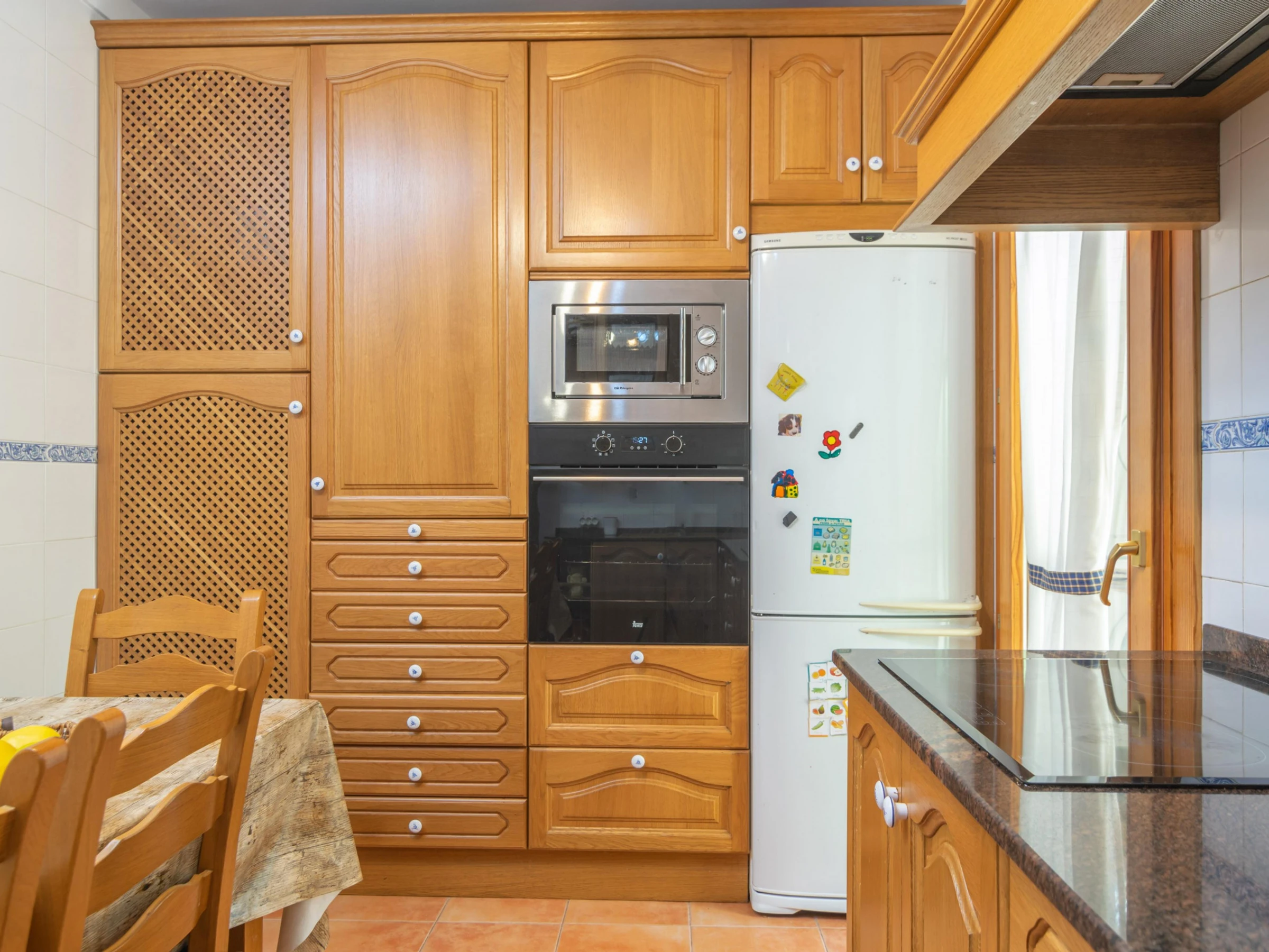 Dieses küche, ist ausgestattet in kühlschrank, mikrowelle, backofen, gefrierschrank, kaffeemaschine und toaster.