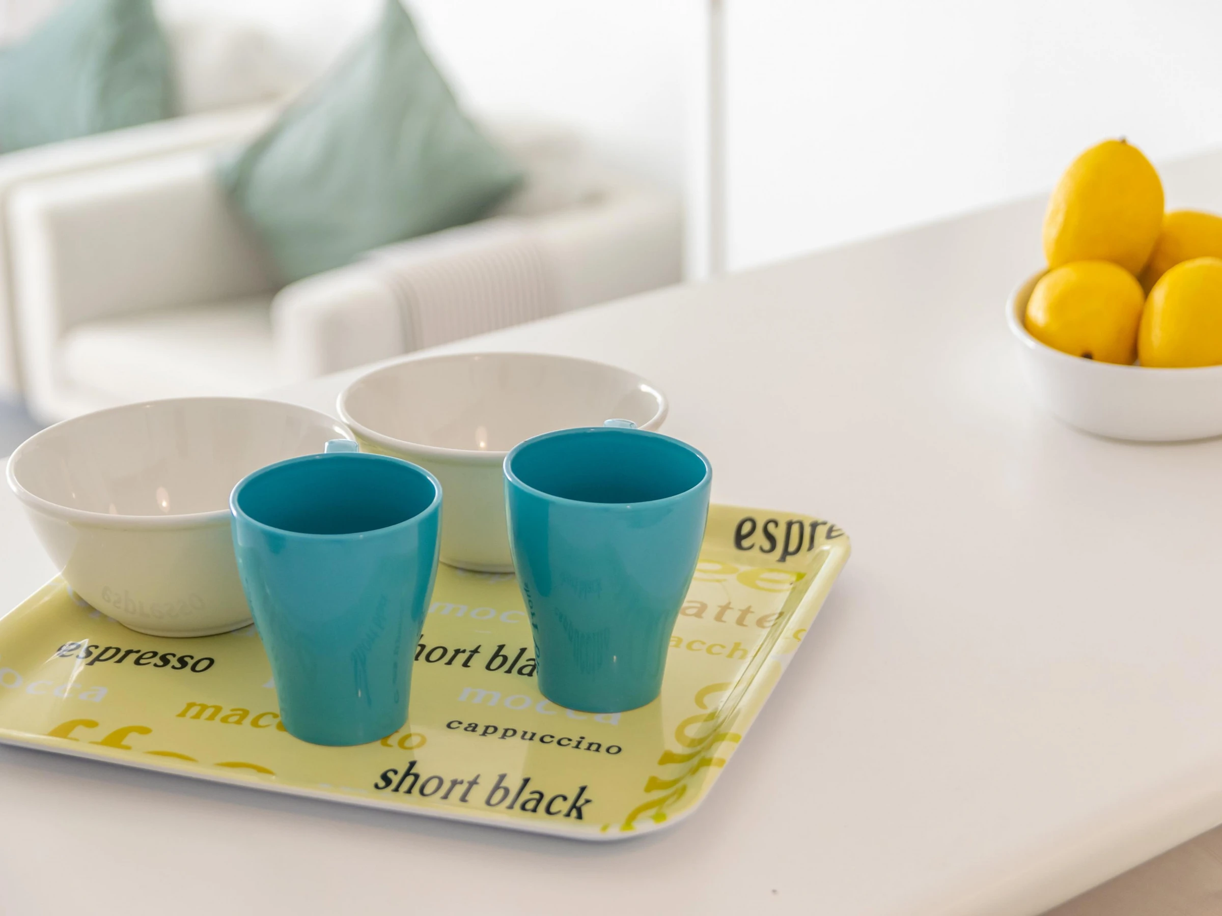 Dieses küche, ist ausgestattet in kühlschrank, mikrowelle, gefrierschrank, kaffeemaschine und toaster.