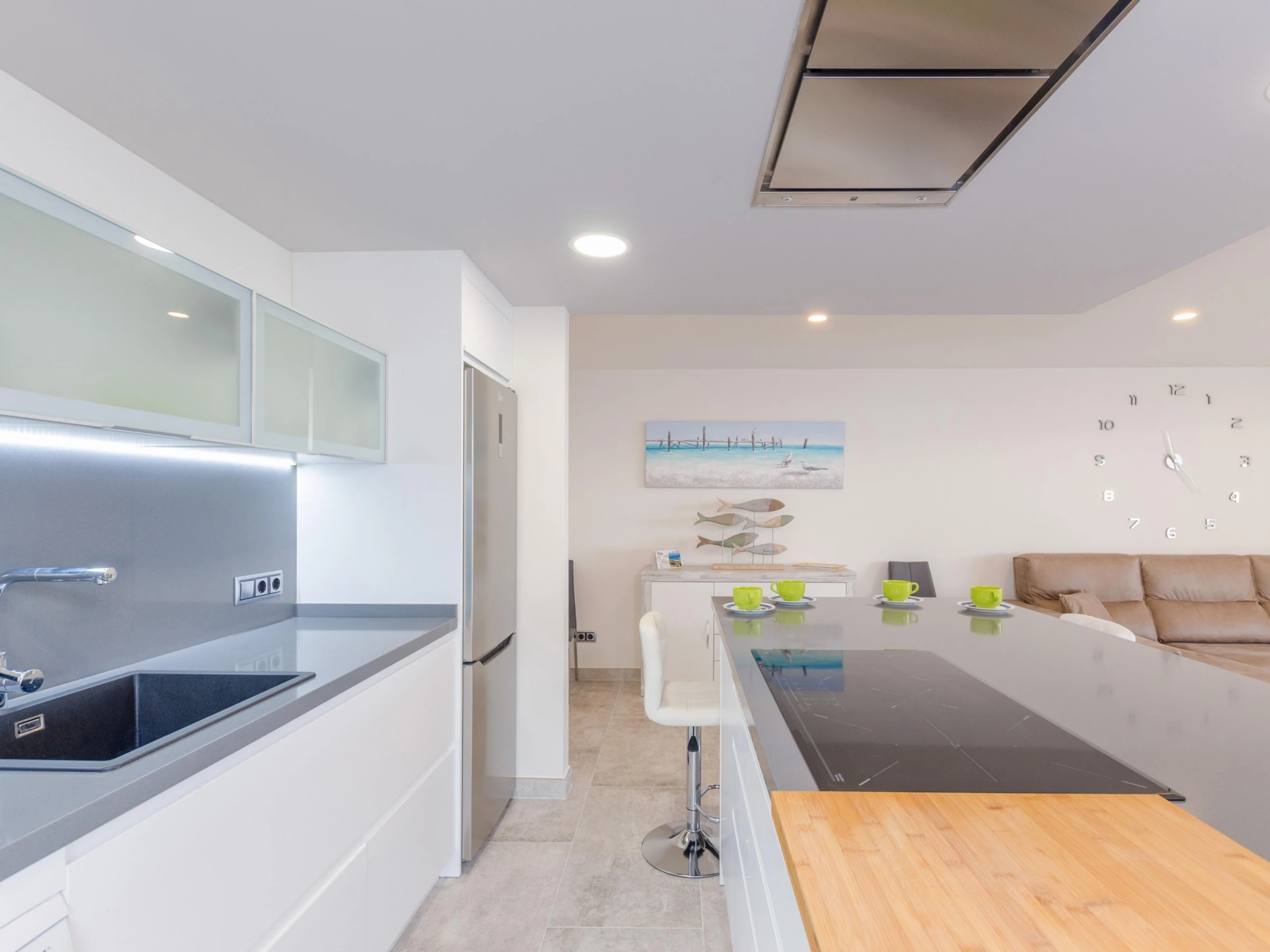 Dieses küche, ist ausgestattet in kühlschrank, mikrowelle, backofen, gefrierschrank, spülmaschine, kaffeemaschine und toaster.