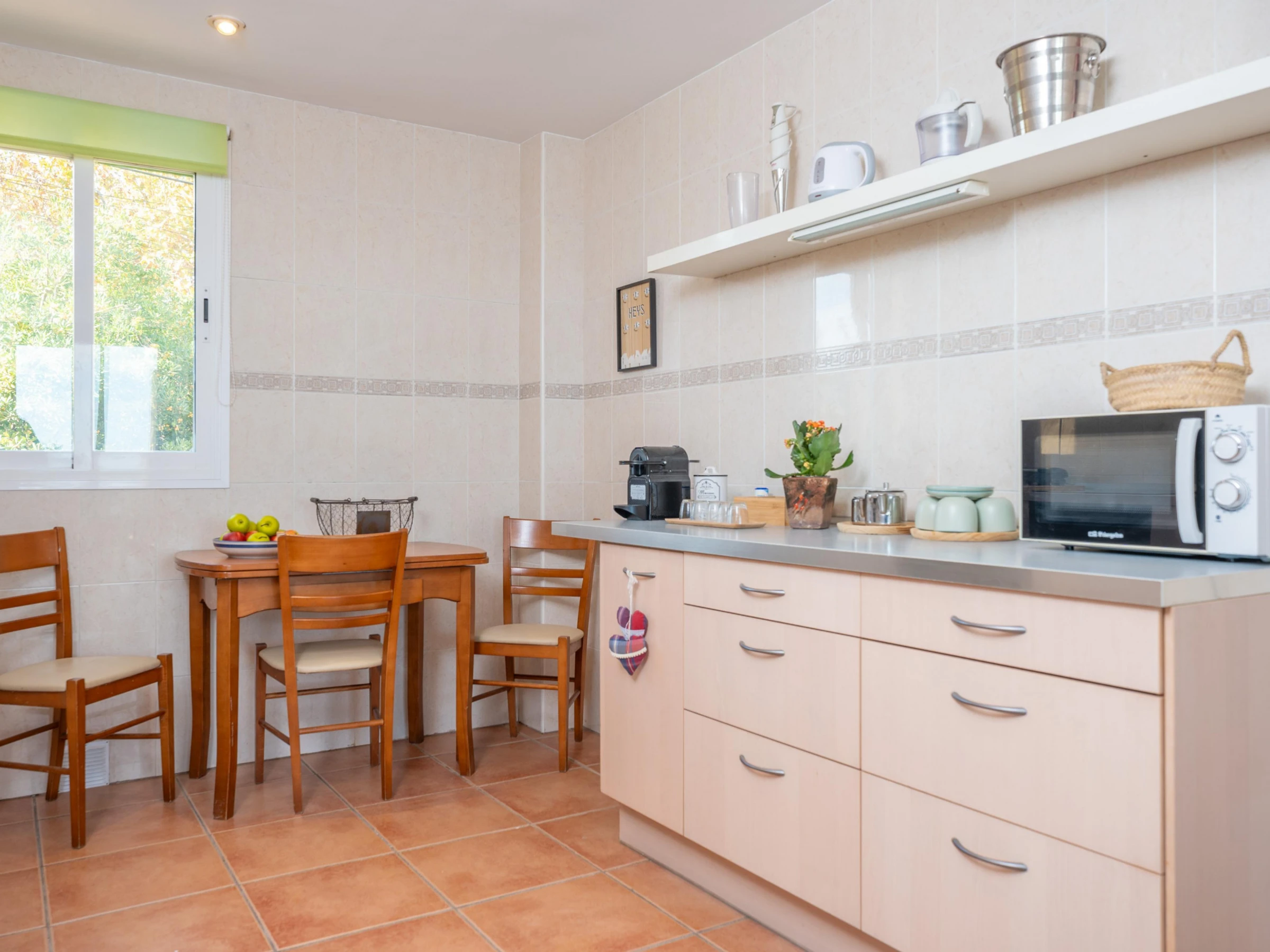 Dieses küche, ist ausgestattet in kühlschrank, mikrowelle, backofen, gefrierschrank, spülmaschine, kaffeemaschine und toaster.