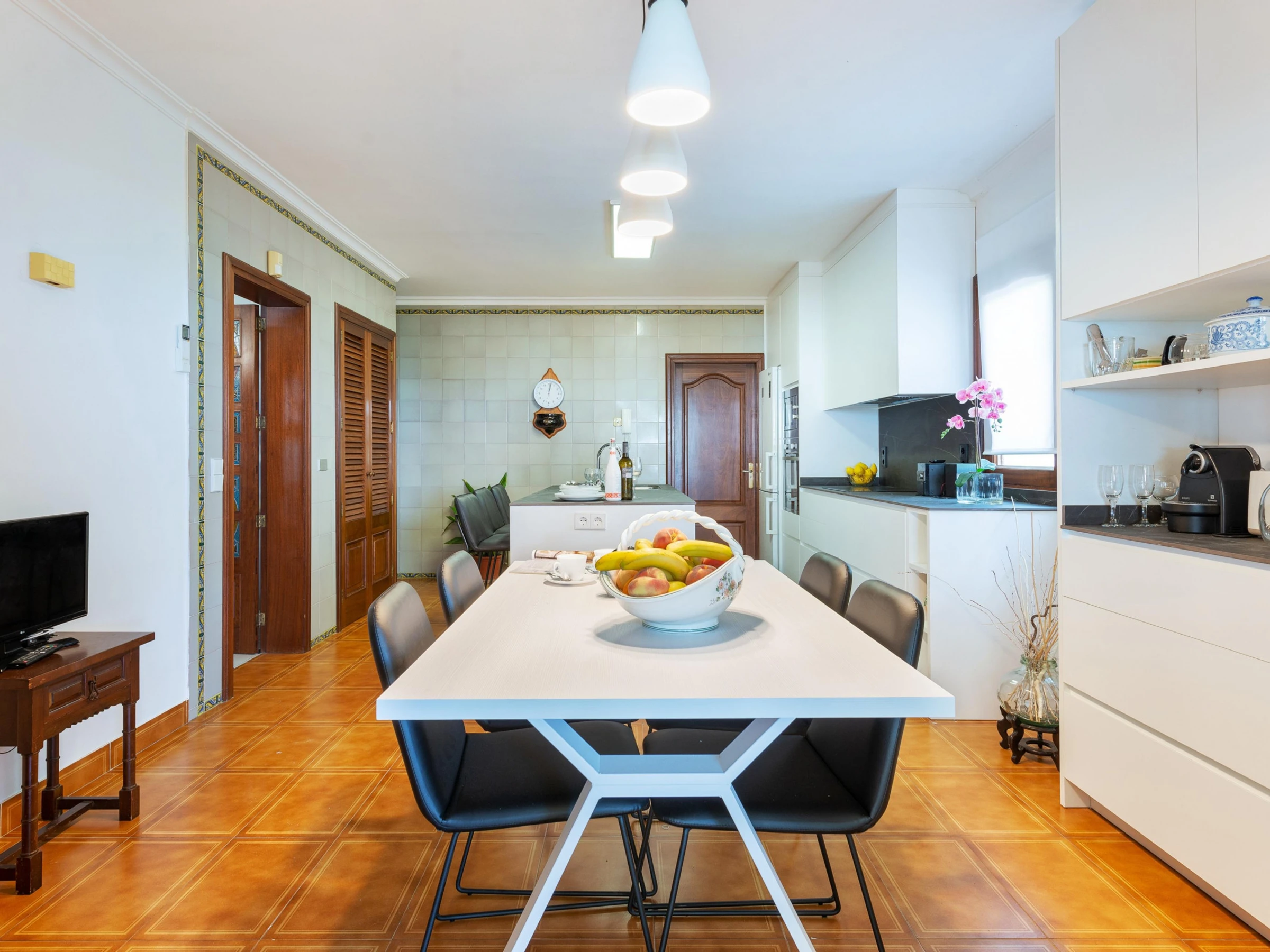Dieses küche, ist ausgestattet in kühlschrank, mikrowelle, backofen, gefrierschrank, spülmaschine, kaffeemaschine und toaster.