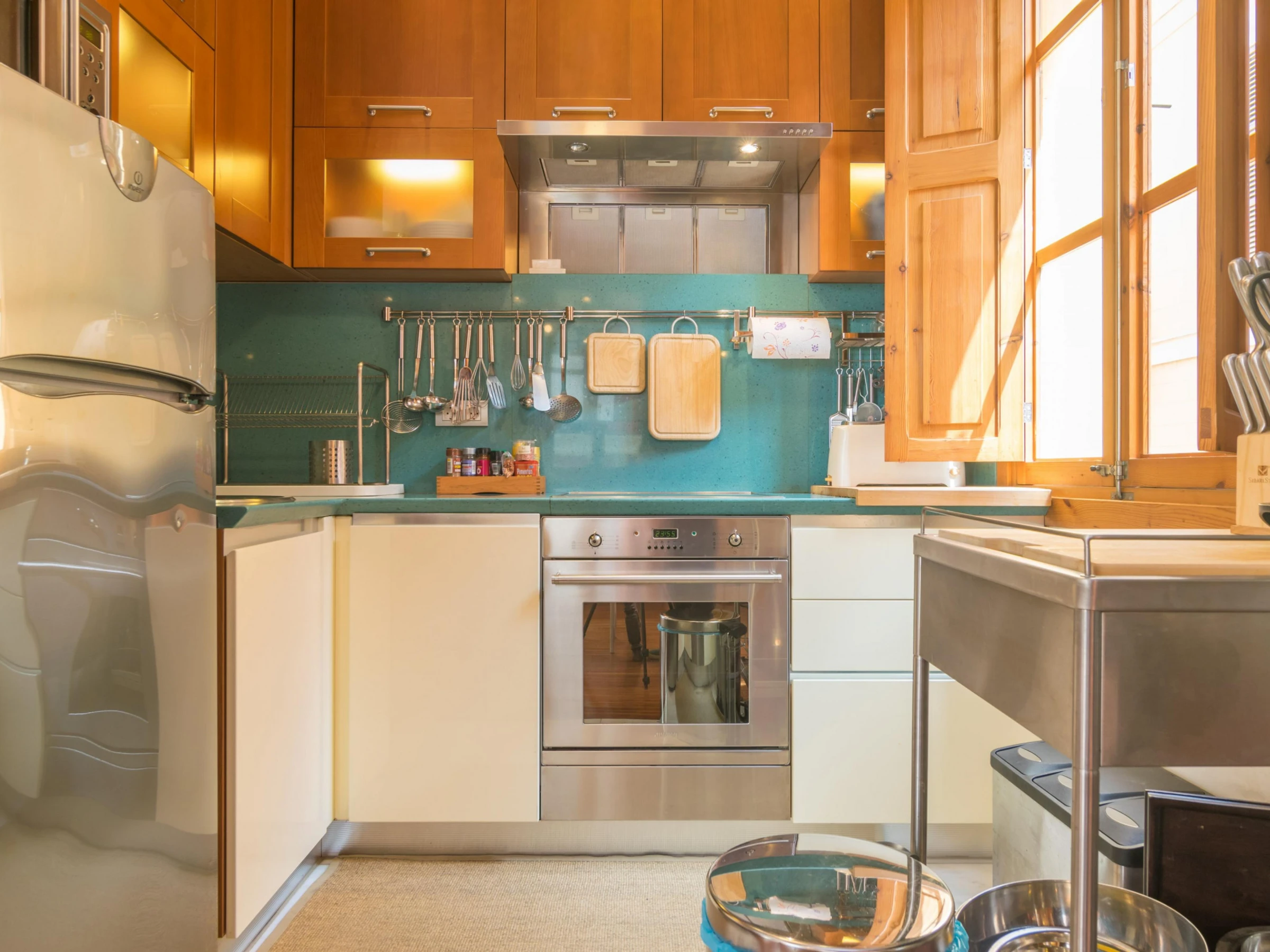 Dieses küche, ist ausgestattet in kühlschrank, mikrowelle, backofen, gefrierschrank, spülmaschine, kaffeemaschine und toaster.