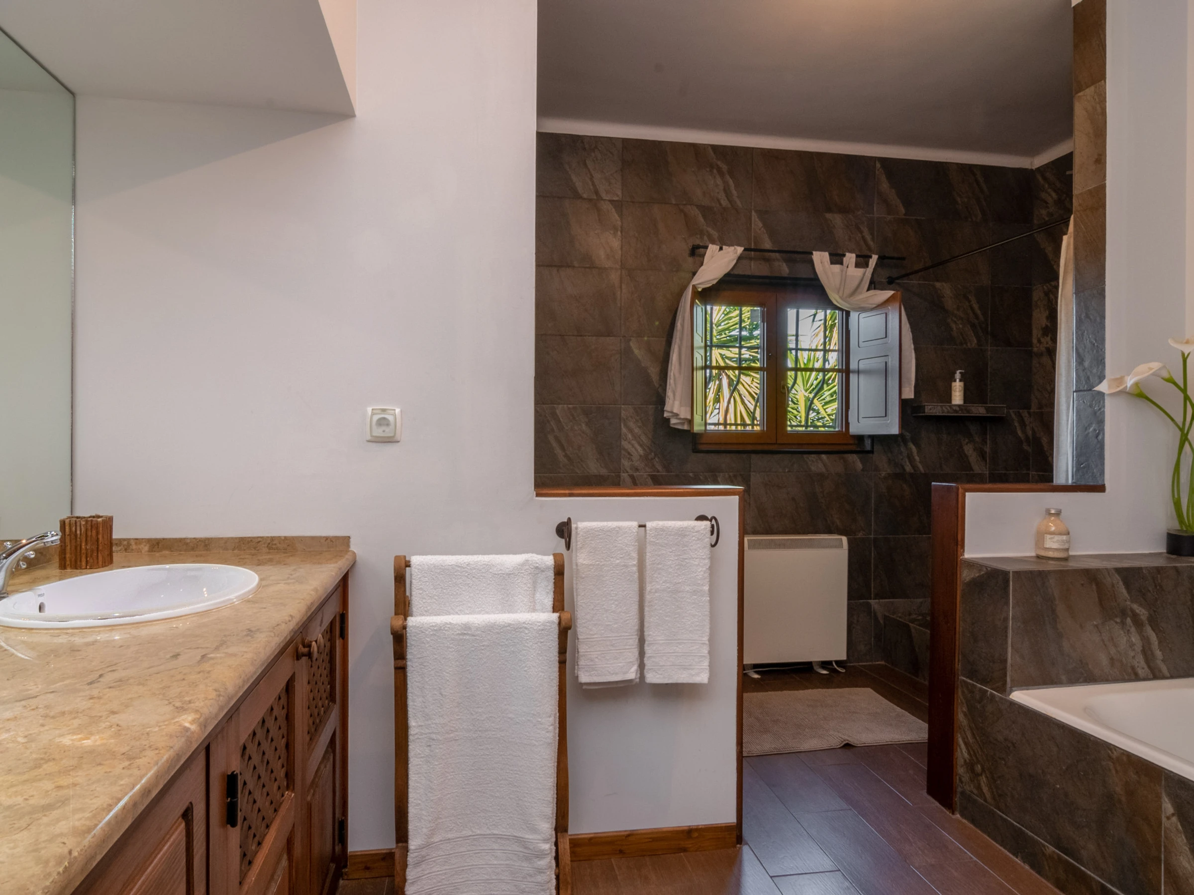 Die Unterkunft verfügt über garten, gartenmöbel, umzäuntes grundstück, terrasse, waschmaschine, grill, kamin, bügeleisen/-brett, internet (WLAN), haartrockner, kinderbereich, elektroheizung, swimming-pool privater pool, parkplatz im freien in auf dem grundstück, 2 Fernsehgeräte, DVD.