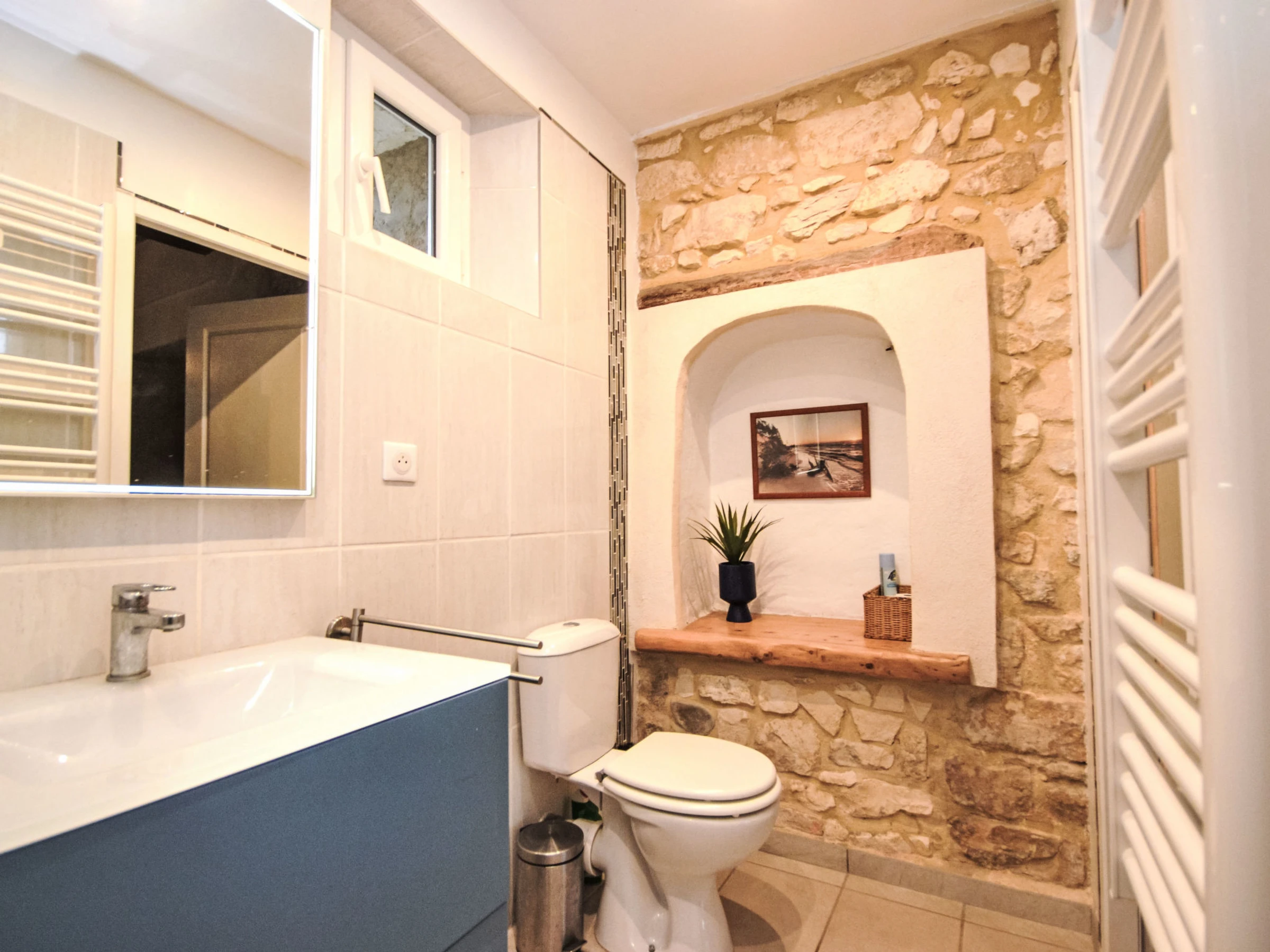 7-Zimmer-Reihenhaus 200 m2 auf 2 Stockwerken. Offenes Esszimmer 20 m2. Salon 25 m2 mit TV (Flachbildschirm). Ausgang zur Terrasse. 1 grosses Zimmer 40 m2, Fenster zum Hof mit 2 Betten (90 cm, Länge 200 cm). Küche (Backofen, Geschirrspüler, 4 Induktionskochplatten, Mikrowelle, Tiefkühler, elektrische Kaffeemaschine) mit Esstisch. Dusche/WC. Klimaanlage. Obergeschoss: 1 Zimmer mit 1 franz. Bett (160 cm, Länge 200 cm). 1 Zimmer mit 1 franz. Bett (140 cm, Länge 200 cm). 1 Zimmer mit 1 franz. Bett (140 cm). 1 Zimmer mit 1 franz. Bett (140 cm). Bad/Dusche, Bidet, sep. WC, Doppelwaschbecken. Heizung, Klimaanlage. Terrasse 25 m2, überdacht. Terrassenmöbel, Liegestühle (8). Sicht auf das Tal und den Garten. Zur Verfügung: Waschmaschine, Kinderhochstuhl, Babybett bis 2 Jahre. Internet (WLAN, gratis). Parkplatz. Bitte beachten: Maximal 1 Haustier/Hund erlaubt. Rauchmelder.