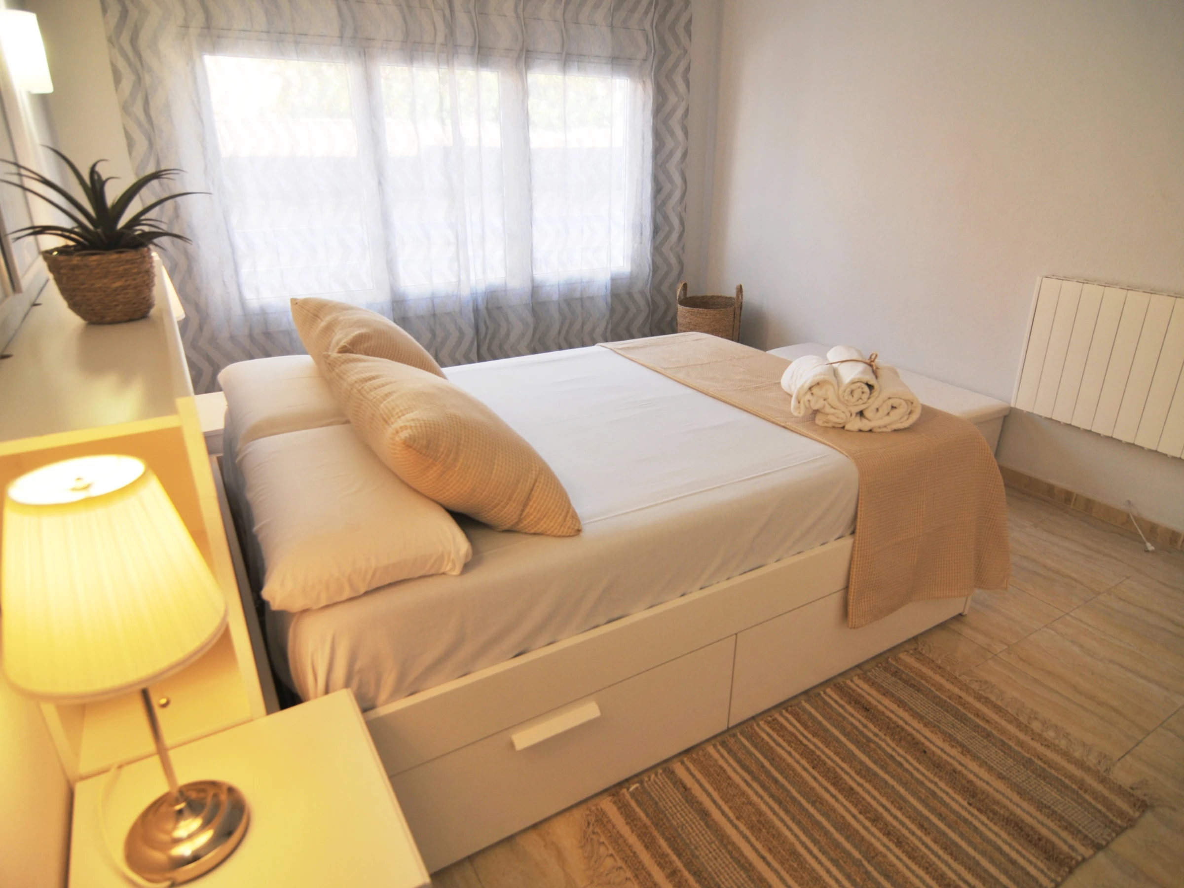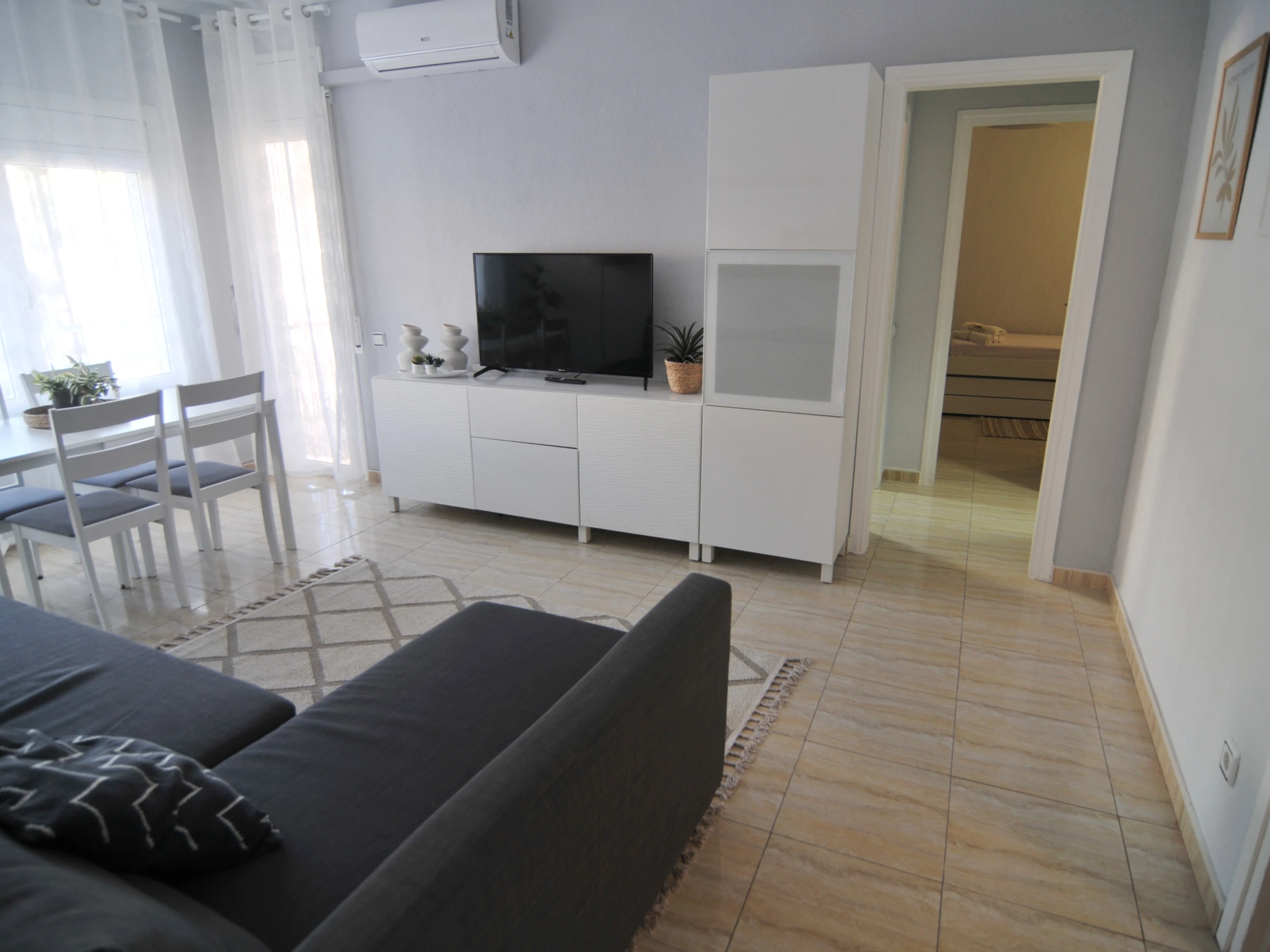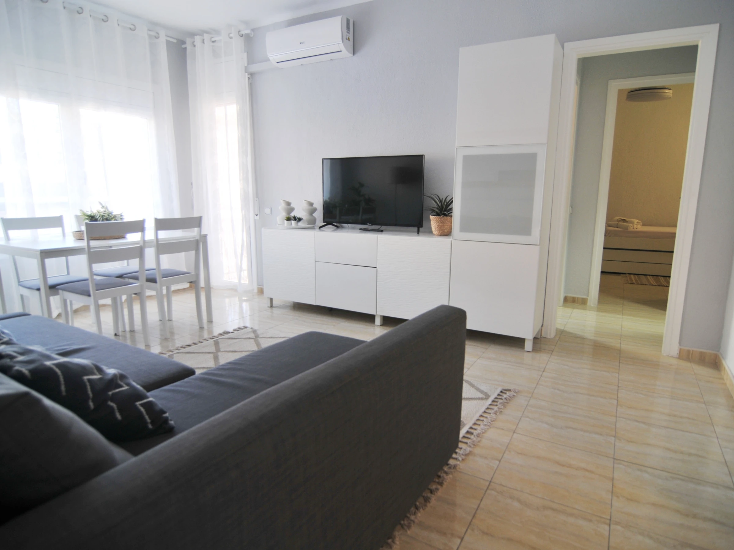 Die Unterkunft verfügt über waschmaschine, bügeleisen/-brett, internet (WLAN), balkon, elektroheizung, klimaanlage nur im esszimmer, swimming-pool gemeinschaftlicher swimming-pool, 2 ventilatoren, 1 Fernseher.
