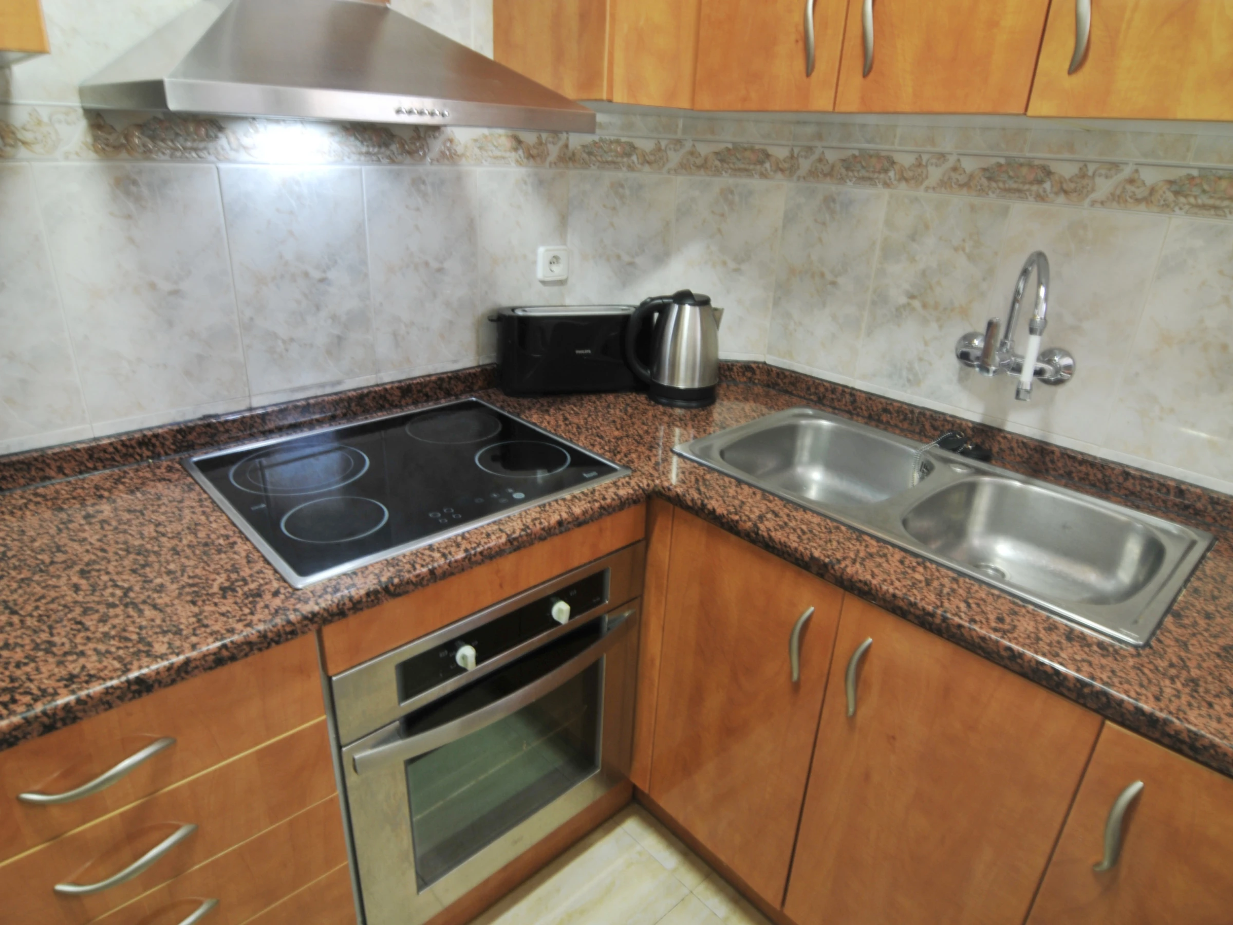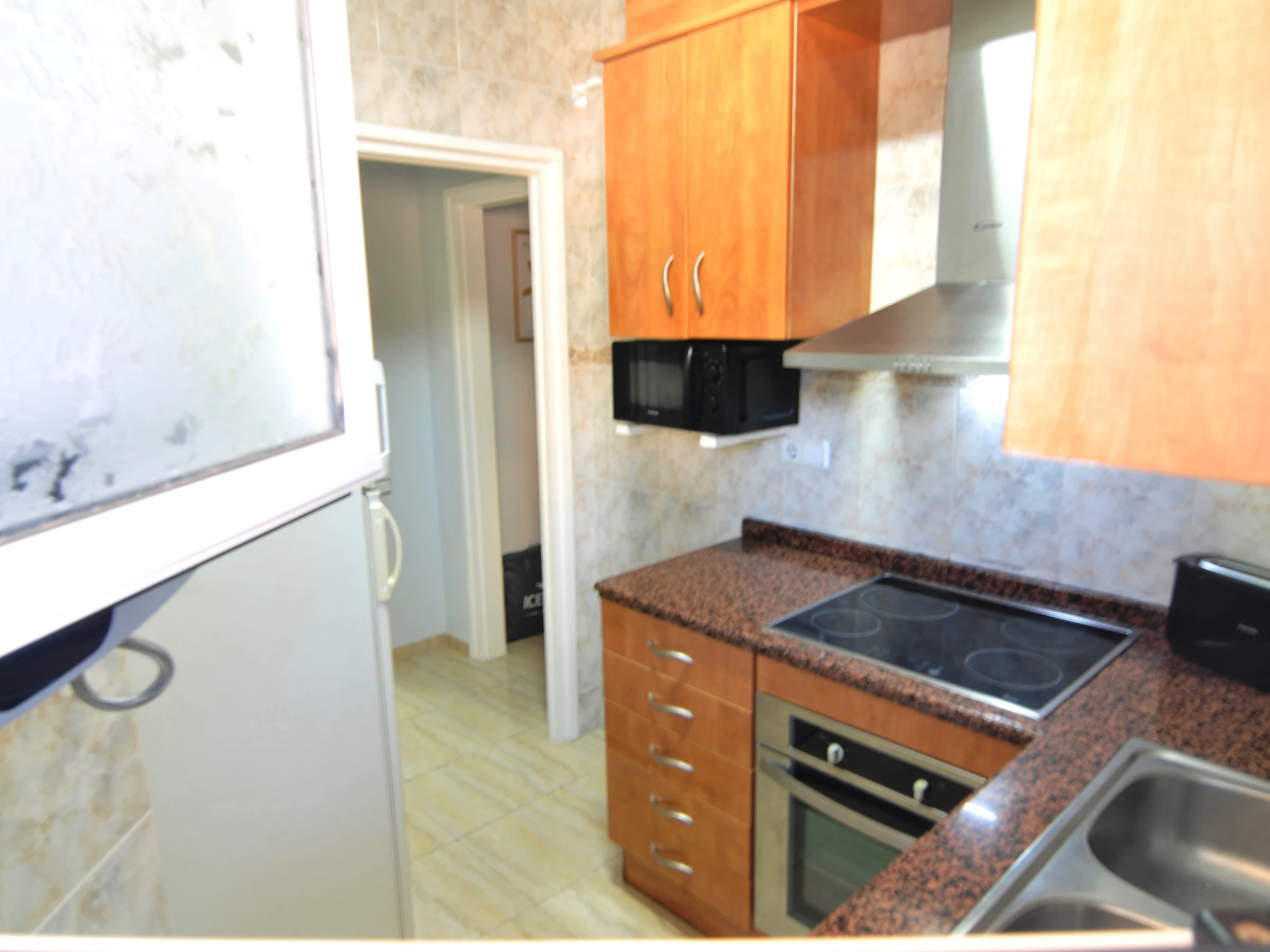 Dieses separate küche, mit ceranfeld, ist ausgestattet in kühlschrank, mikrowelle, backofen, gefrierschrank, geschirr/besteck, kochutensilien, kaffeemaschine, toaster und saftpresse.