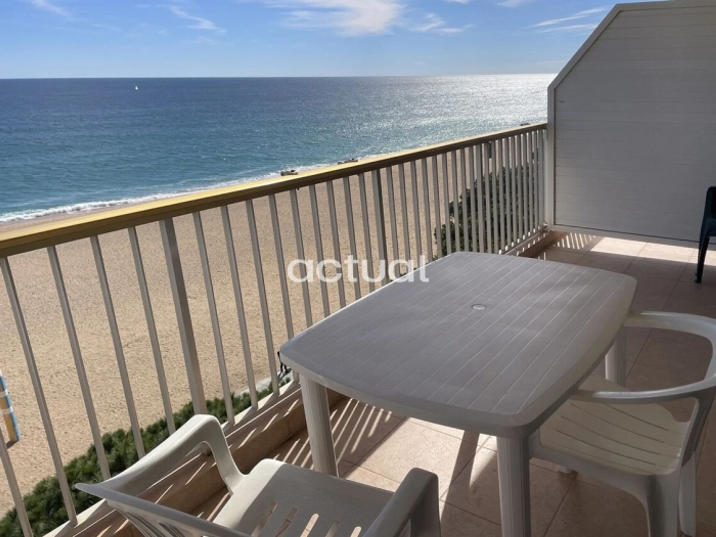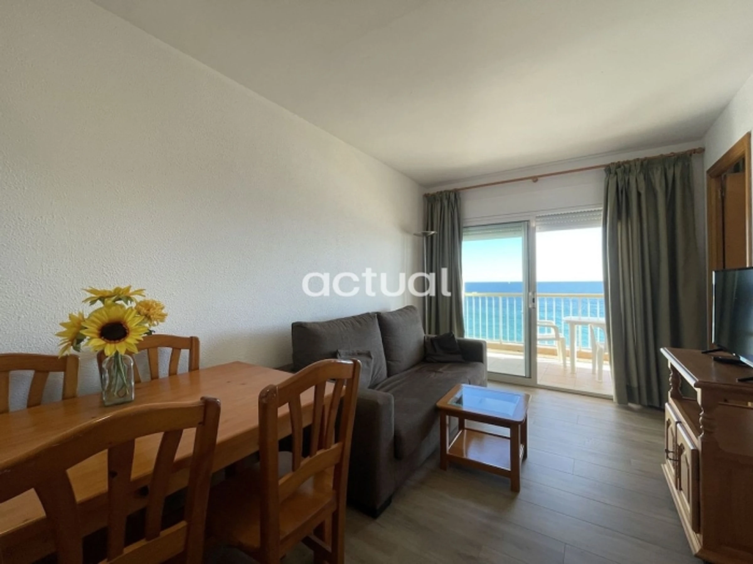 Apartment im Gebäude Catalunya. 5. Etage mit Aufzug, bestehend aus 1 komplettem Bad, ausgestatteter Küche, 1 Schlafzimmer, Wohn-Esszimmer mit Zugang zur Terrasse und direktem Meerblick. Gemeinschaftsparkplatz. WLAN zur Miete auf Anfrage verfügbar.
