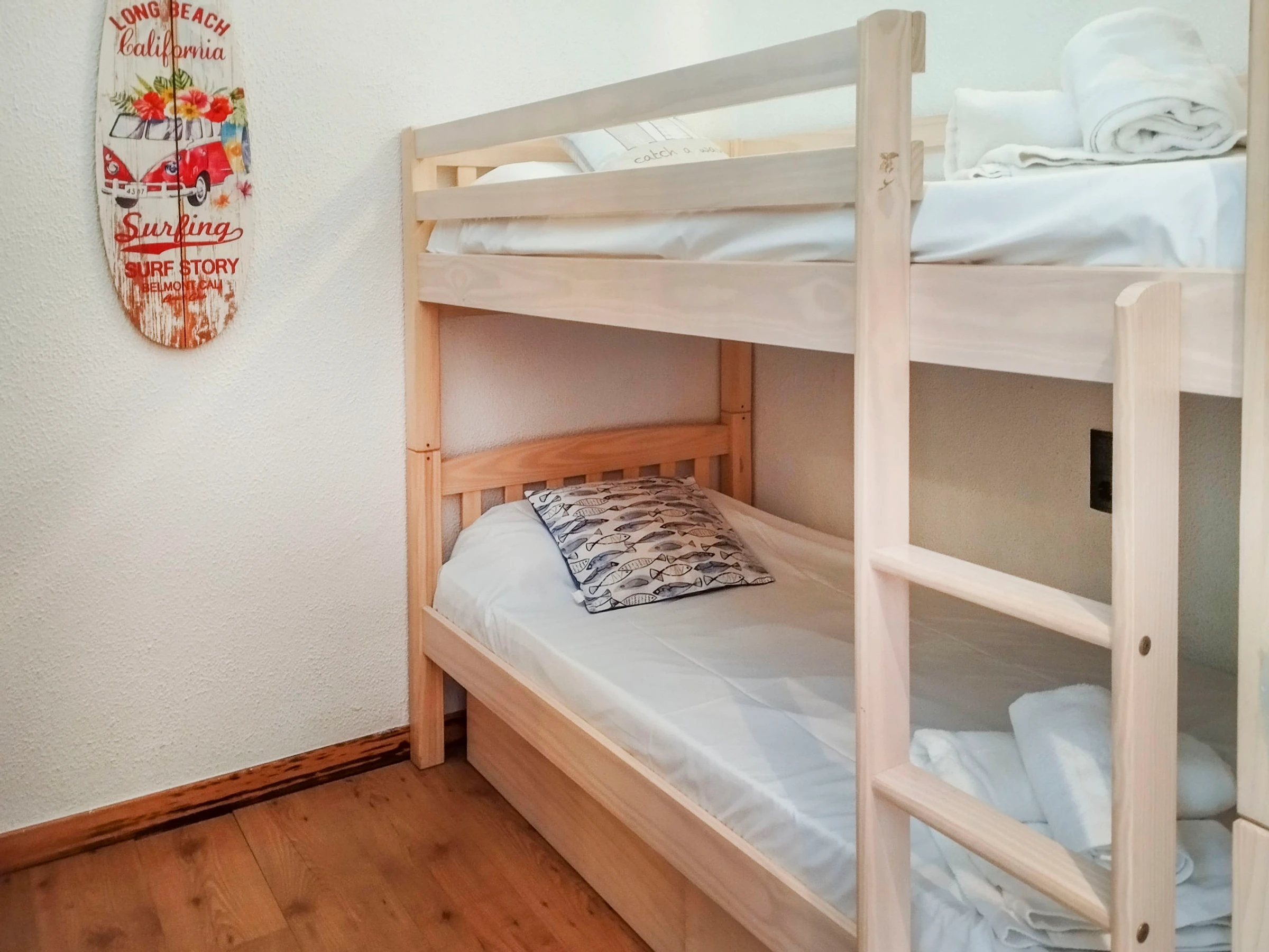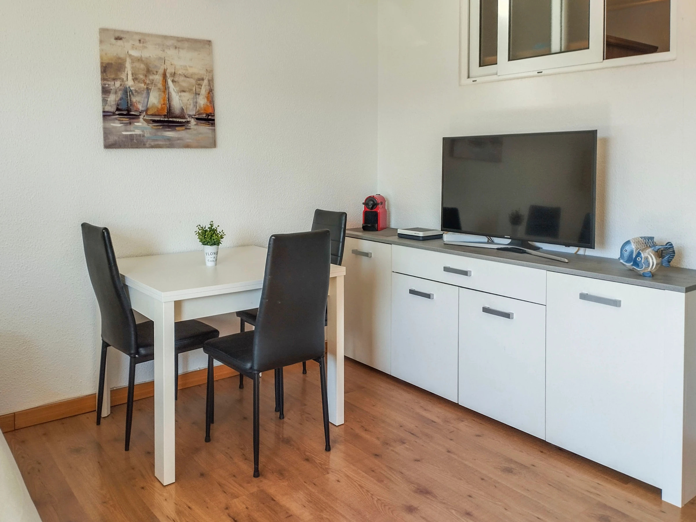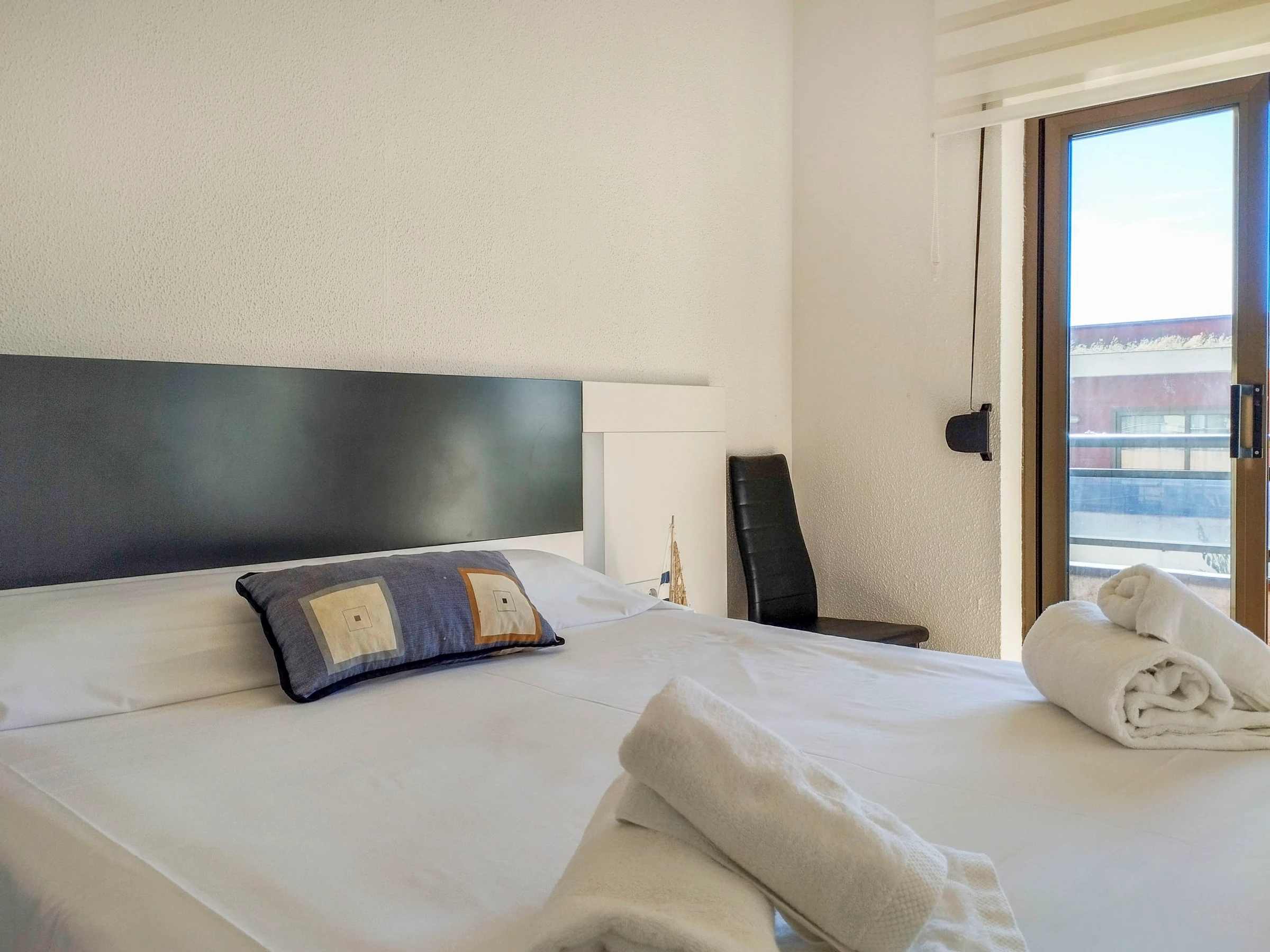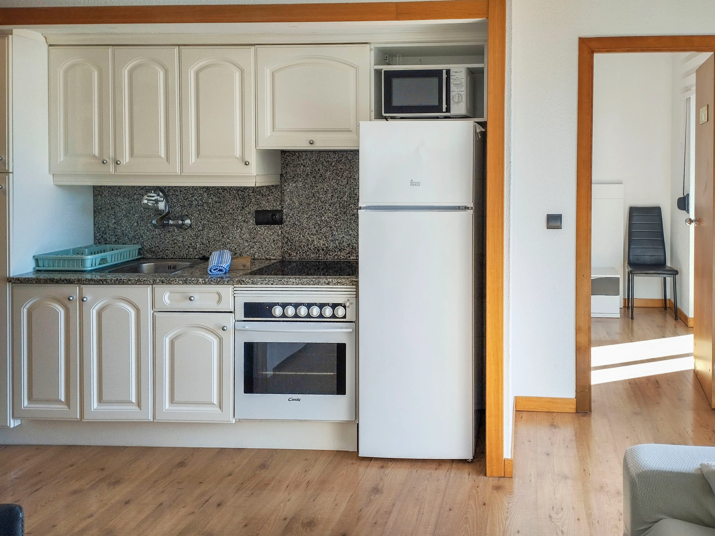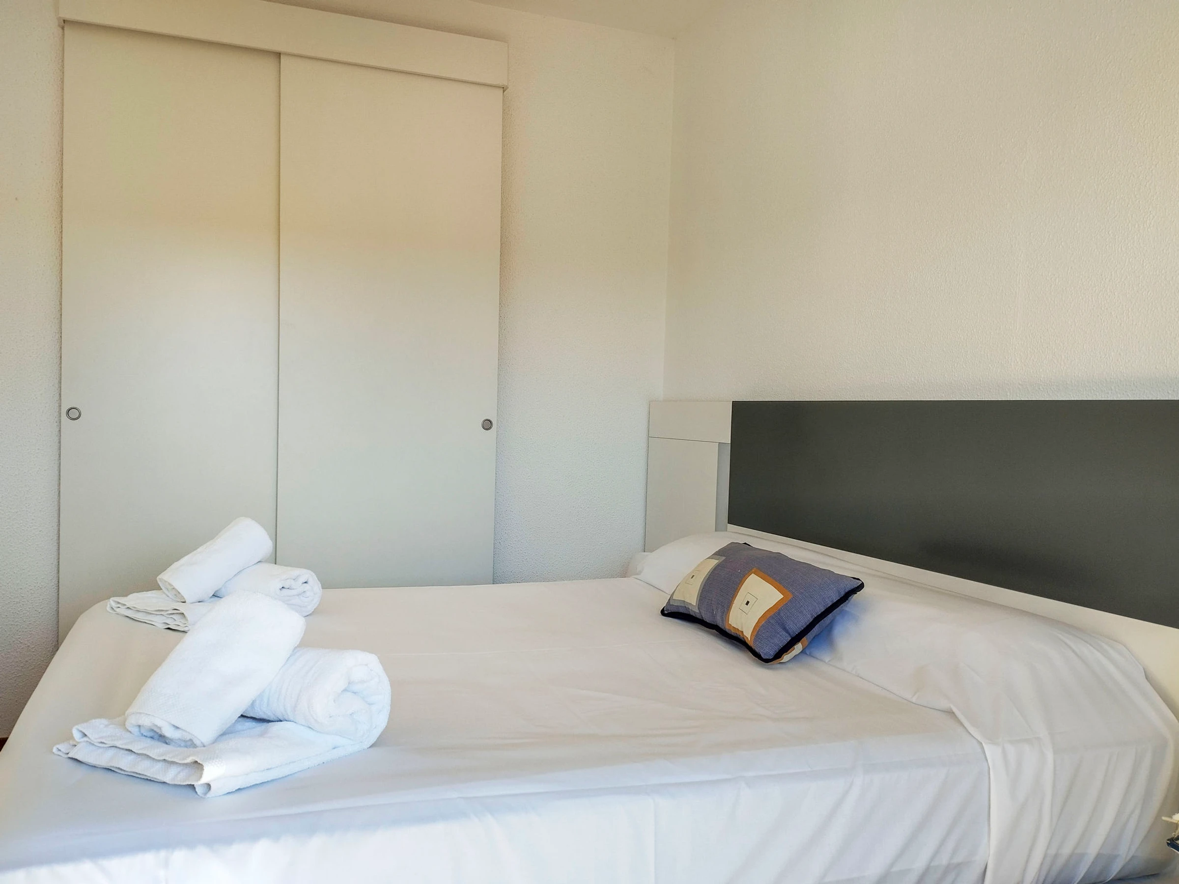 3-Zimmer-Wohnung 50 m2. Hell, gemütlich eingerichtet: Wohn-/Esszimmer mit Esstisch, Digital-TV, Klimaanlage und Warmluftheizung. Ausgang zum Balkon. 1 Zimmer mit 1 franz. Bett (160 cm, Länge 200 cm). 1 Zimmer mit 1 x 2 Etagenbetten (90 cm, Länge 190 cm). Kochnische (Backofen, 3 Glaskeramikplatten, Toaster, Wasserkocher, Mikrowelle, Tiefkühler, elektrische Kaffeemaschine). Bad/WC. Balkon. Balkonmöbel. Sicht auf die Ortschaft. Zur Verfügung: Waschmaschine, Bügeleisen, Haartrockner. Internet (WLAN, gratis). Bitte beachten: Nichtraucher-Unterkunft. [hidden] ESFCTU[hidden][hidden][hidden][hidden]