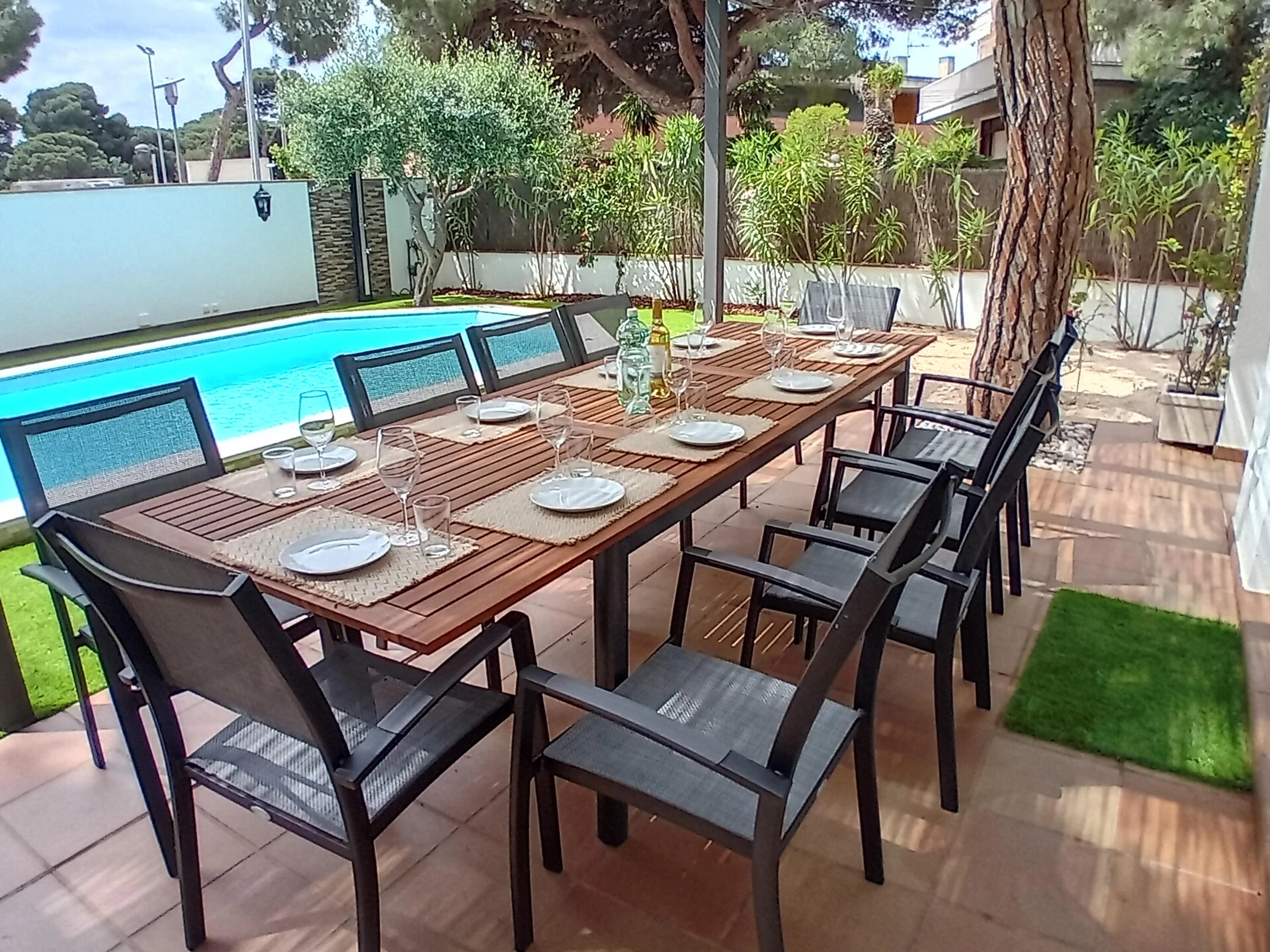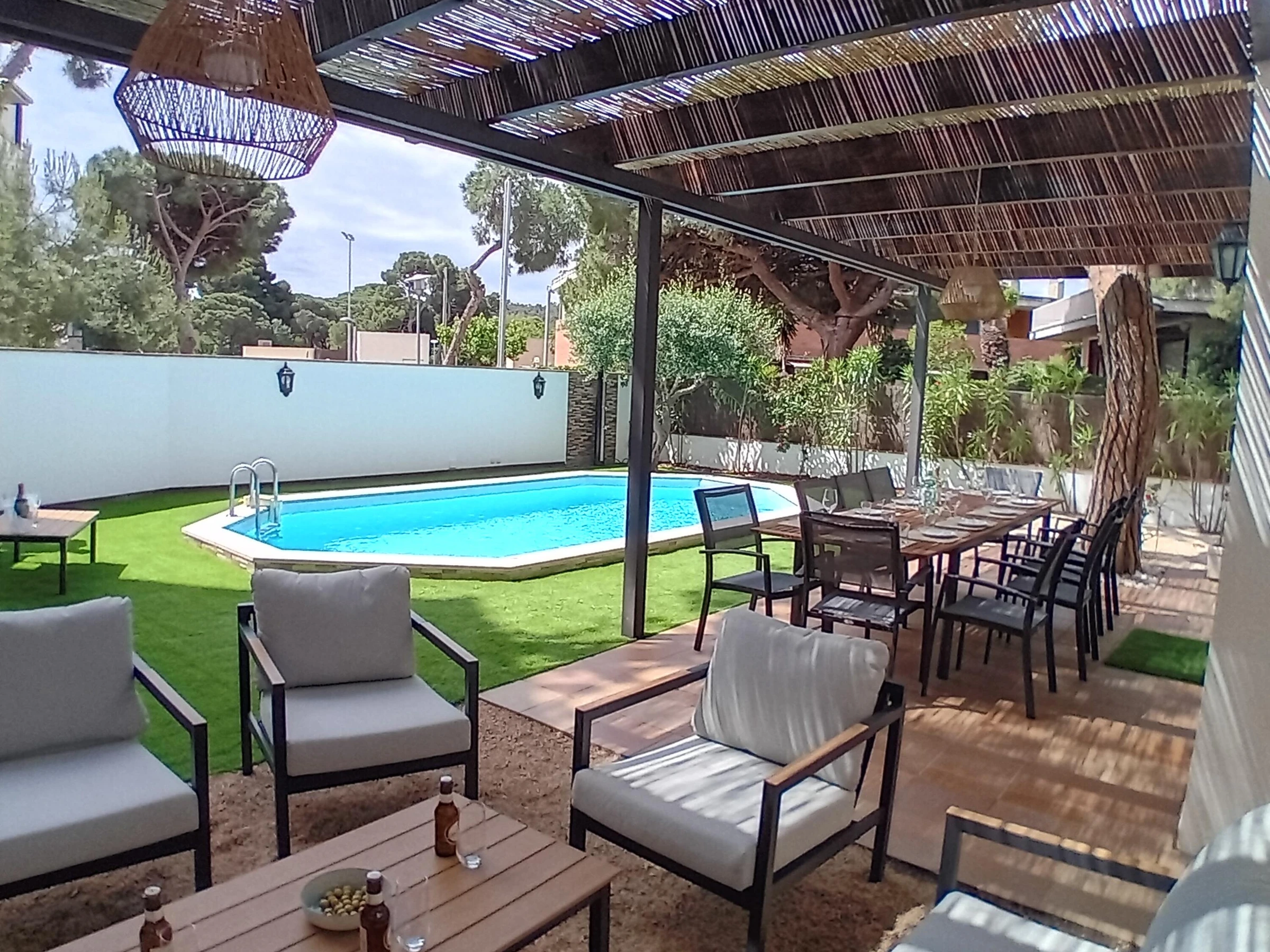 Welcome to Les Ries, a dream private villa located in one of the most exclusive areas of Platja d’Aro, just 150 meters from the sea. With 5 spacious bedrooms, a private pool, a Mediterranean garden, and a pergola-covered terrace, this accommodation is perfect for a relaxing holiday or remote work in a privileged setting. Unbeatable Location Enjoy the tranquility of the pine forest while being close to everything: 150 m from the beach, perfect for morning walks by the sea 100 m from the supermarket and bakery, offering freshly baked local specialties 10-minute walk to the center of Platja d’Aro, with exclusive shops, restaurants, and nightlife 9 minutes from the bus station, with easy access to Girona and Barcelona A Villa Designed for Comfort With 274 m² of living space on a 500 m² plot, this two-story house combines style, comfort, and functionality, accommodating up to10 guests with total privacy. 5 spacious bedrooms with high-quality bedding Air conditioning in summer and heating in winter Free fiber-optic Wi-Fi throughout the villa 3 modern bathrooms with spacious showers On the ground floor, you'll find: * Fully equipped kitchen (oven, microwave, induction cooktop, dishwasher, Nespresso coffee machine) * Living room with Smart TV and direct access to the garden * Dining area with access to the outdoor terrace * Laundry room with washing machine and dryer * 1 bedroom with a 140 cm bed and 1 bathroom with shower On the upper floor: 4 bedrooms, including a master suite with a 180 cm bed 2 full bathrooms with showers Outdoor Space: Your Private Paradise * Relax in the garden with outdoor furniture * Enjoy the private 7m x 3.5m pool, perfectly oriented for sunlight * Dine outdoors on the terrace with a pergola and table for 10 guests * Weber barbecue for the best grilling experience * Private garage and additional parking space More Than Just a Stay, a Unique Experience Platja d’Aro is one of the most desirable destinations on the Costa Brava, offering something for everyone: * Water sports and spectacular beaches * Two prestigious golf courses * Amusement park and water park for kids * Hiking and cycling routes in nature * Culture and art: visit the Dalí Museum in Figueres or the medieval charm of Pals and Begur Whether for an unforgettable vacation or a work retreat with all comforts, Les Ries offers everything you need for an exceptional stay.