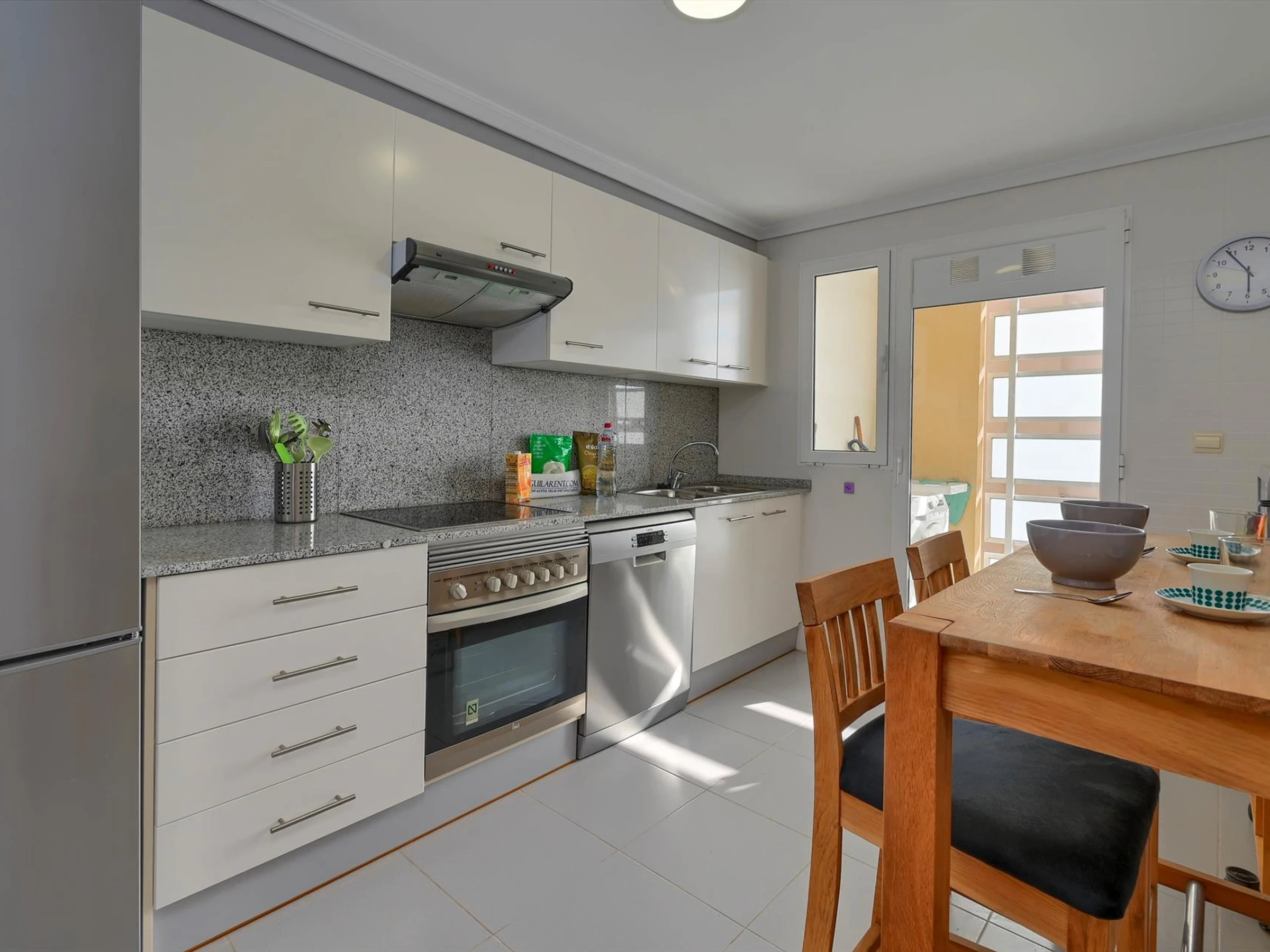 Dieses küche, ist ausgestattet in mikrowelle, backofen, gefrierschrank, spülmaschine, kaffeemaschine und toaster.