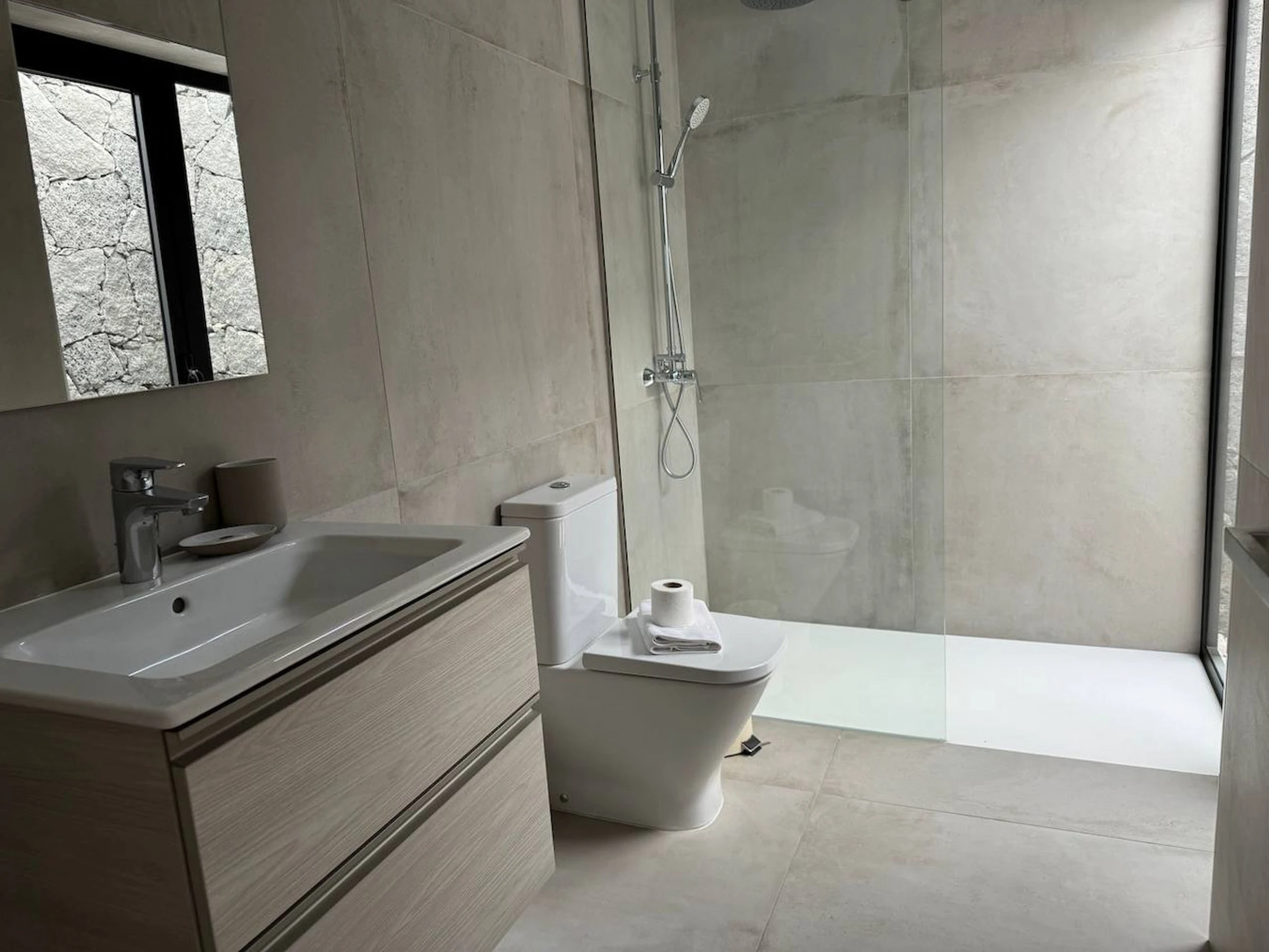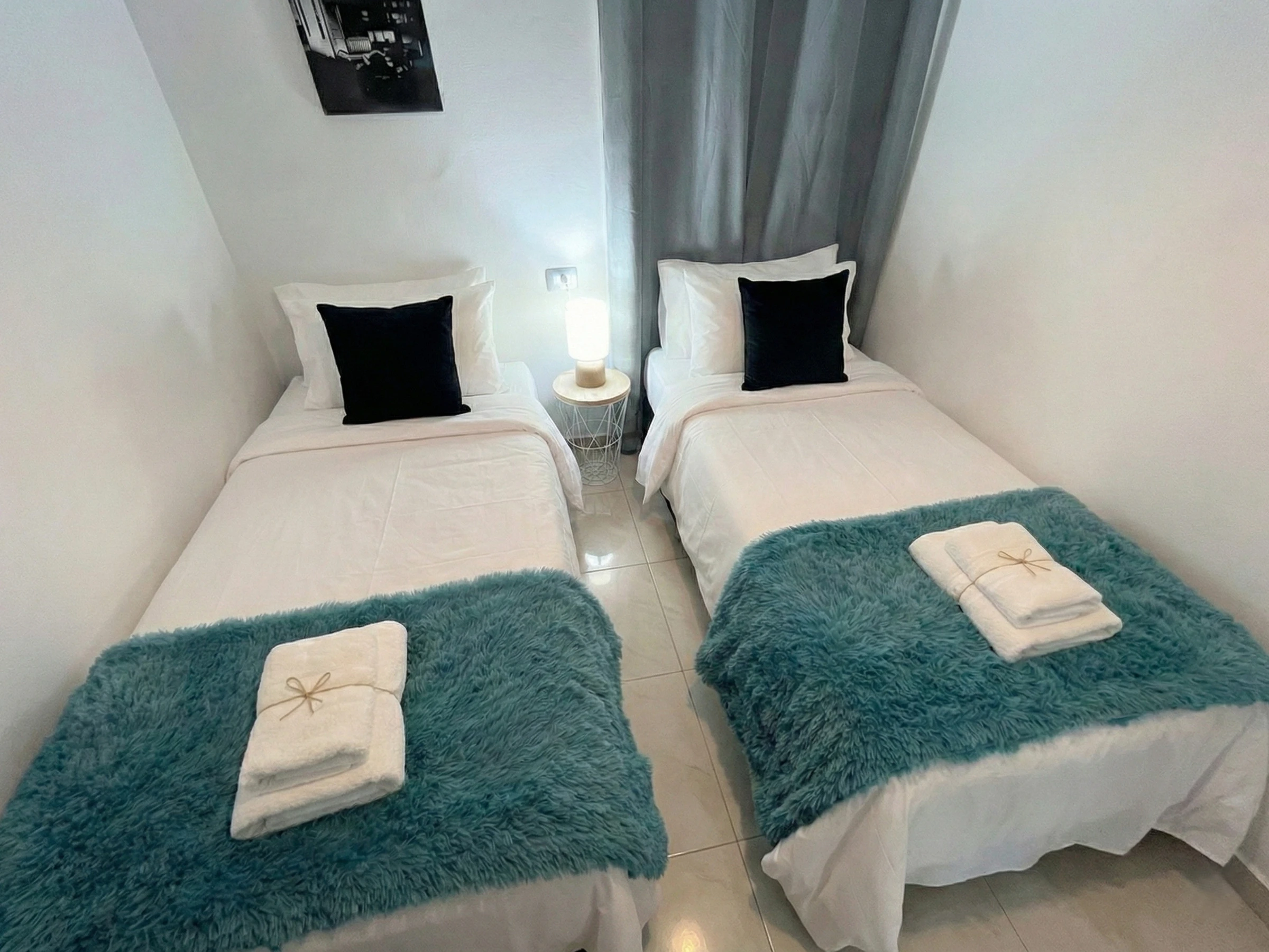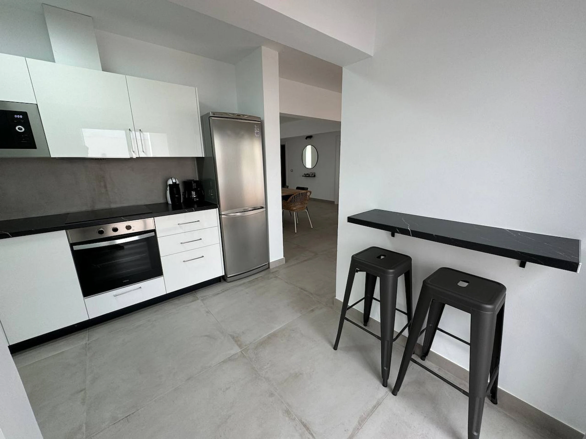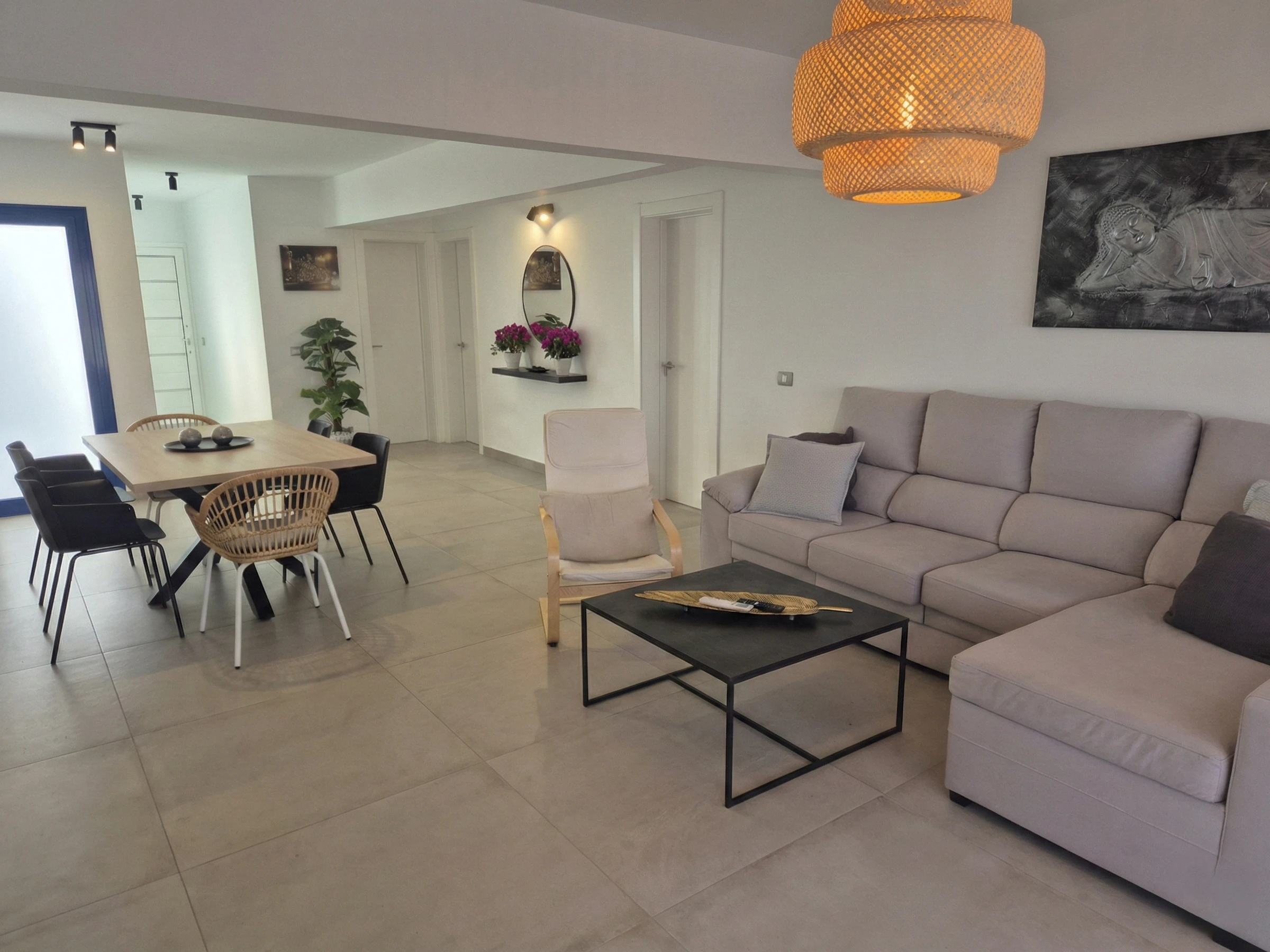 It has 3 cosy bedrooms and 2 bathrooms (both with shower tray); the master bedroom with double bed of 1.50 x 1.90 and en suite bathroom and a second bedroom with double bed and a third bedroom with 2 single beds. Living-dining room very luminous thanks to the large windows and with direct access to the outside area. Fully equipped kitchen with dishwasher so you have everything you need to enjoy with your family and friends.