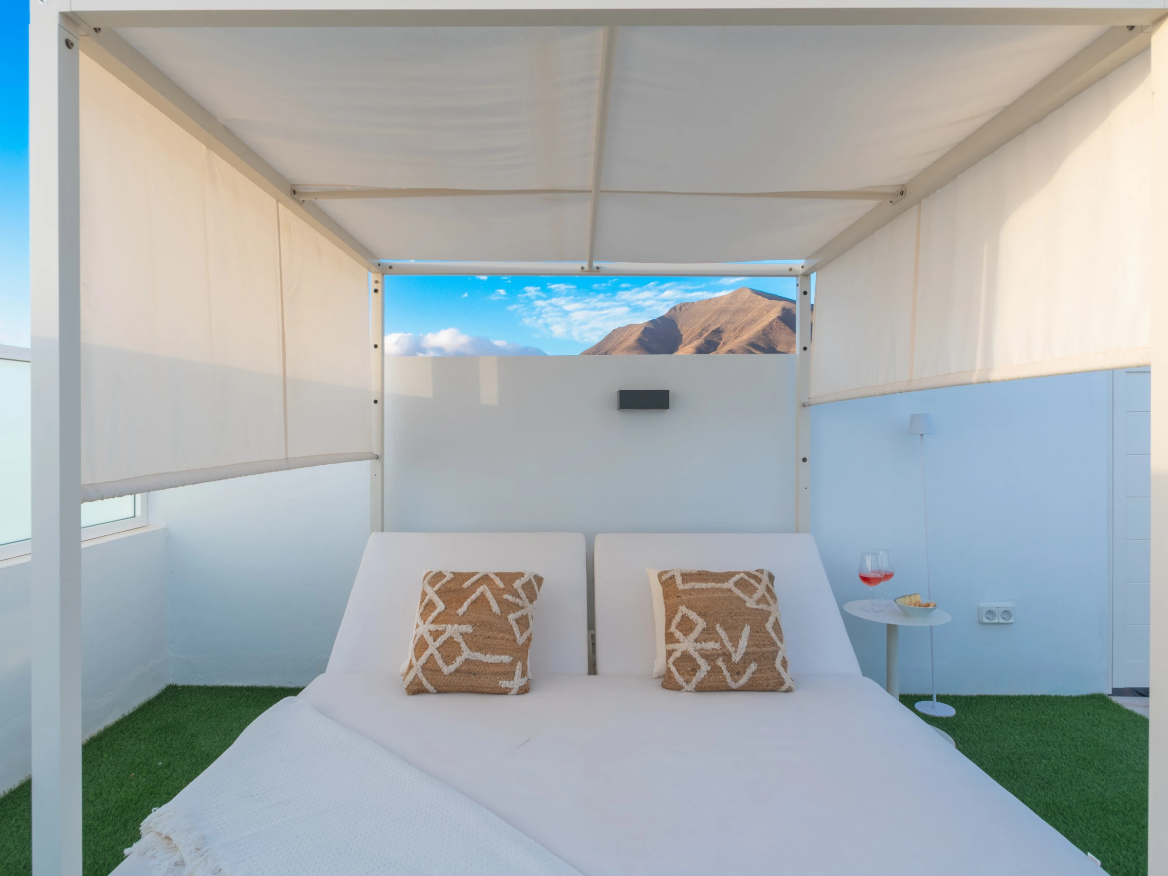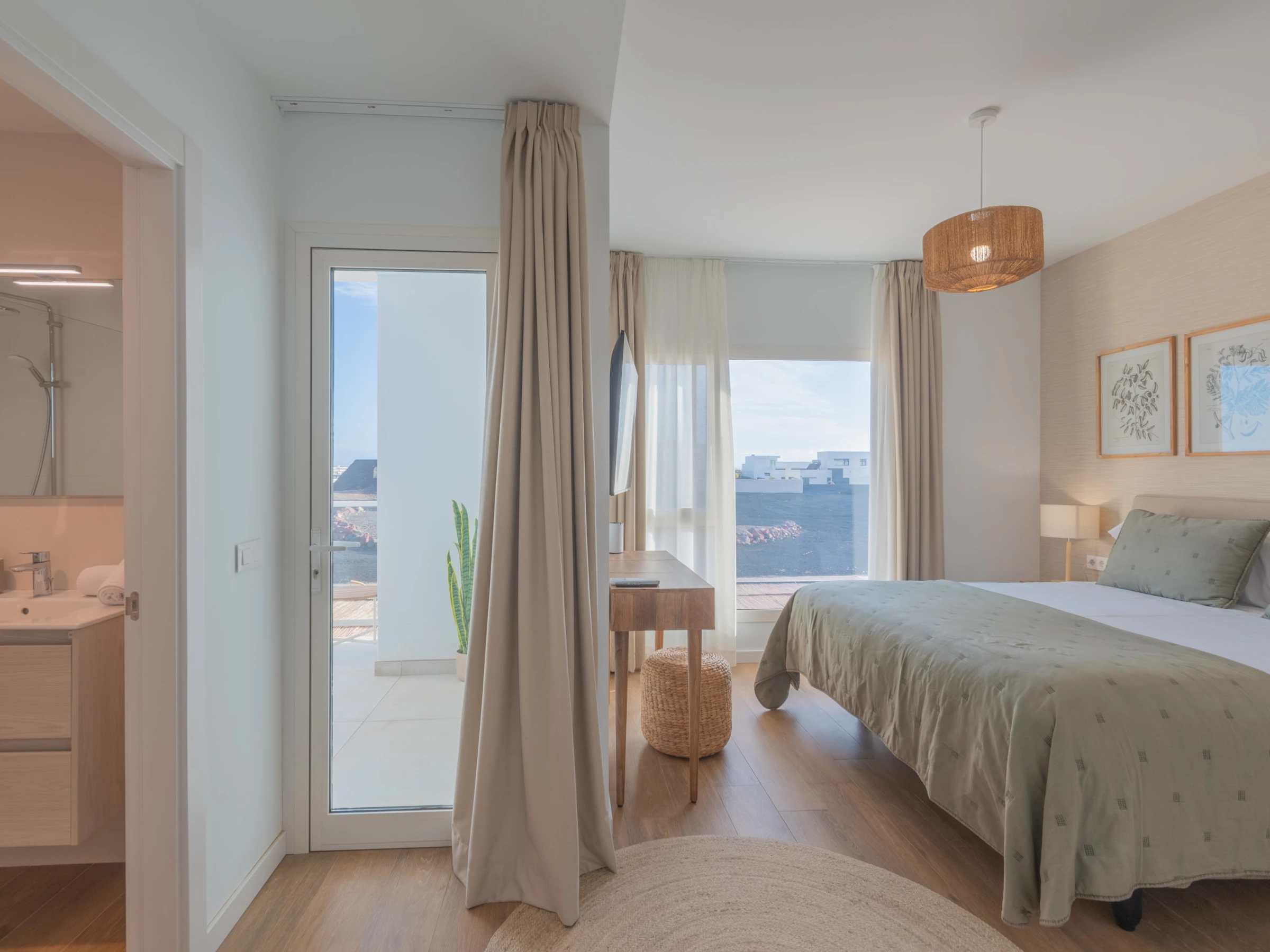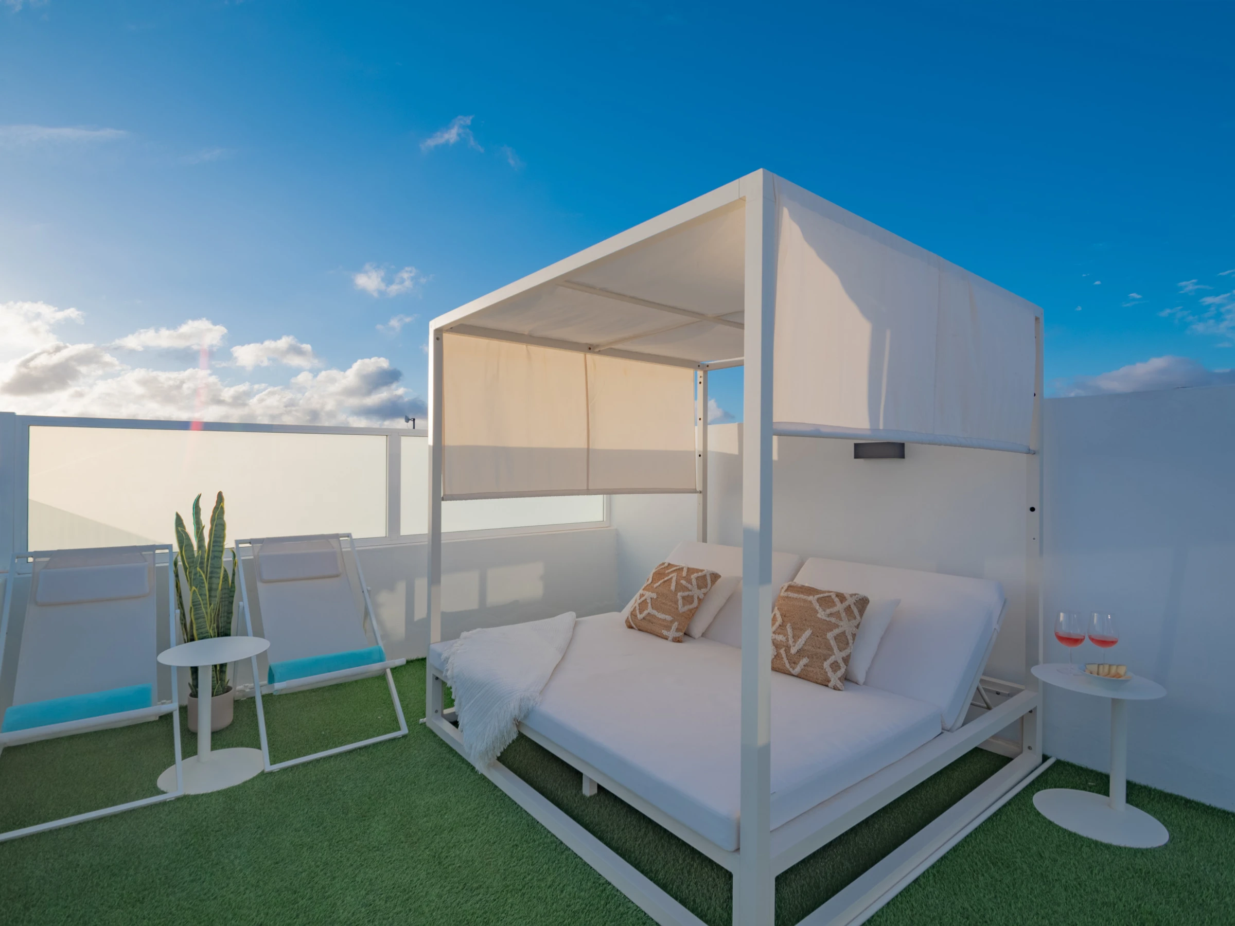 Im ersten Stock finden Sie drei komfortable Schlafzimmer: zwei mit Doppelbett, ein anderes mit zwei Einzelbetten. Seine elegante Hauptsuite umfasst ein vollständiges Badezimmer und direkten Zugang zu einem privaten Balkon und einer exklusiven Dachterrasse, ausgestattet mit einem luxuriösen Bali-Bett, ideal zum Entspannen unter dem Sternenhimmel oder zum Genießen eines Frühstücks mit Aussicht.